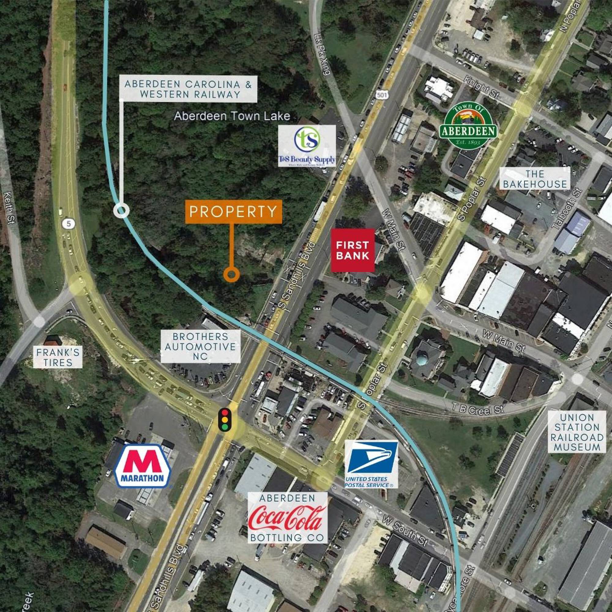 This 1.128 +/- acre parcel of commercial land is located in Downtown Aberdeen, near the intersection of US Highway 1 and North Carolina Highway 5. The property offers high visibility, capturing the attention of over 29,500 drivers on average per day. The property is located directly across from First Bank Aberdeen. The property is located within a flood zone.