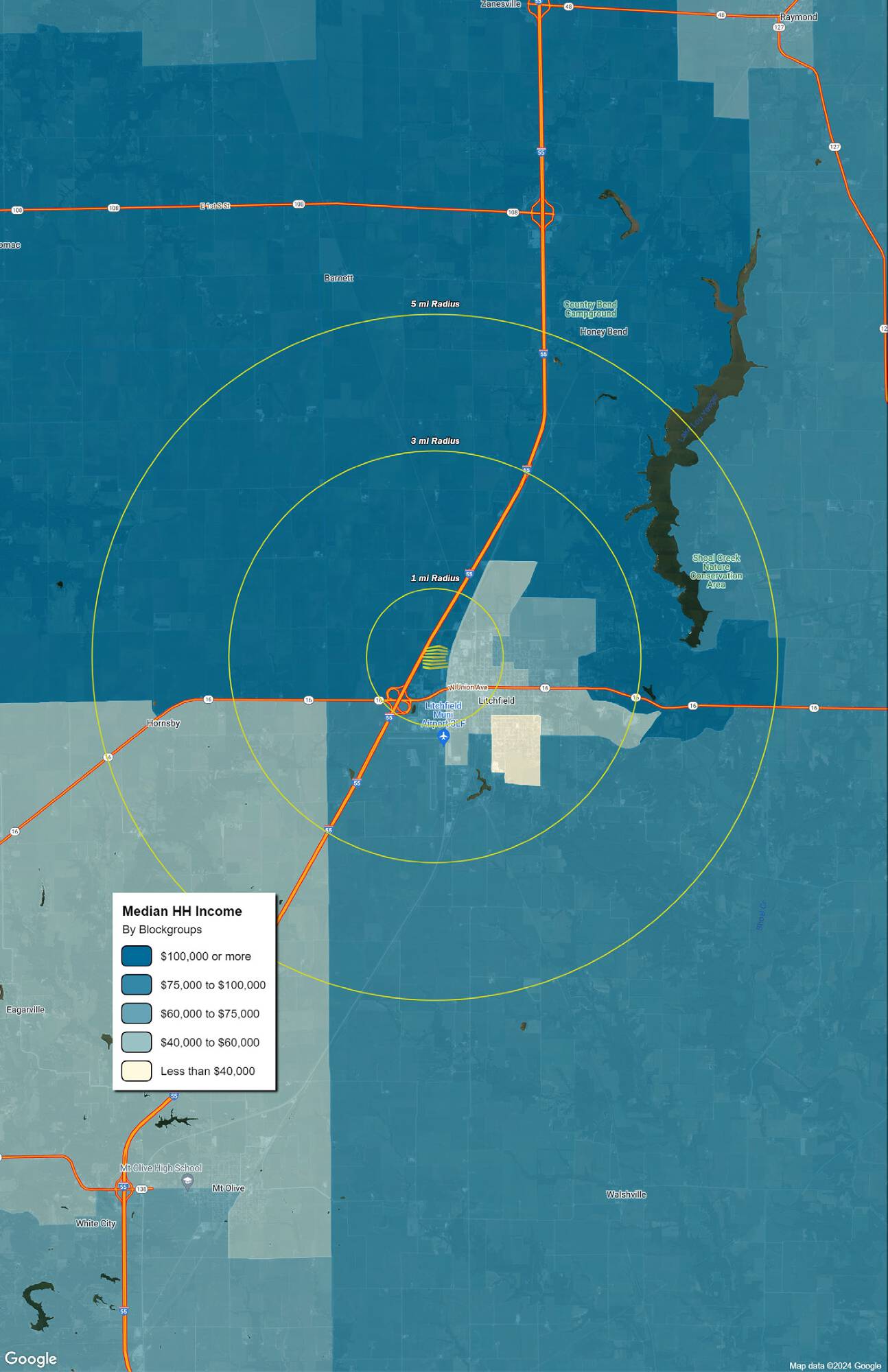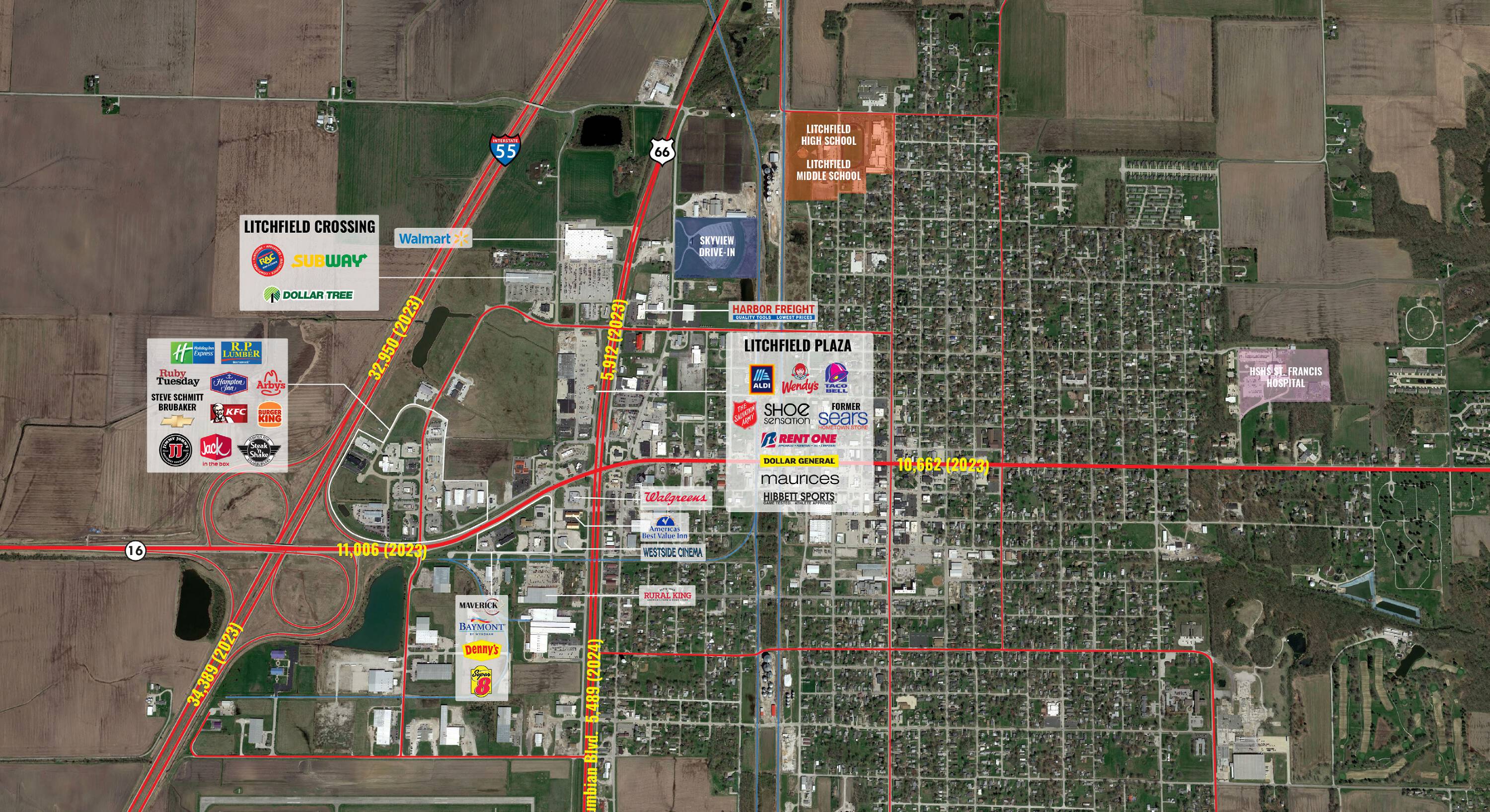 Retail space available for lease in Litchfield, Illinois.
