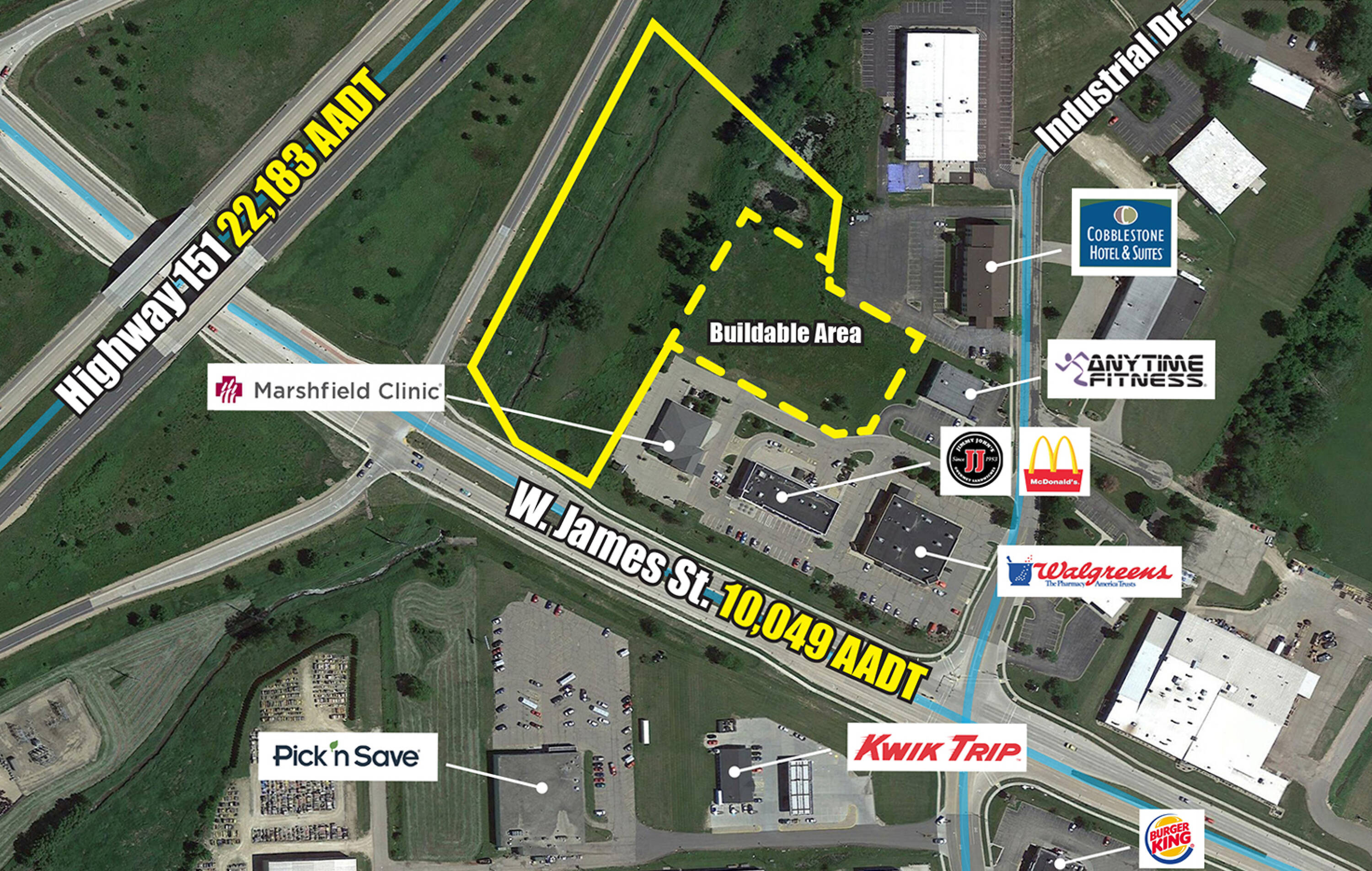 2.5 acres of buildable commercial land with highway visibility.