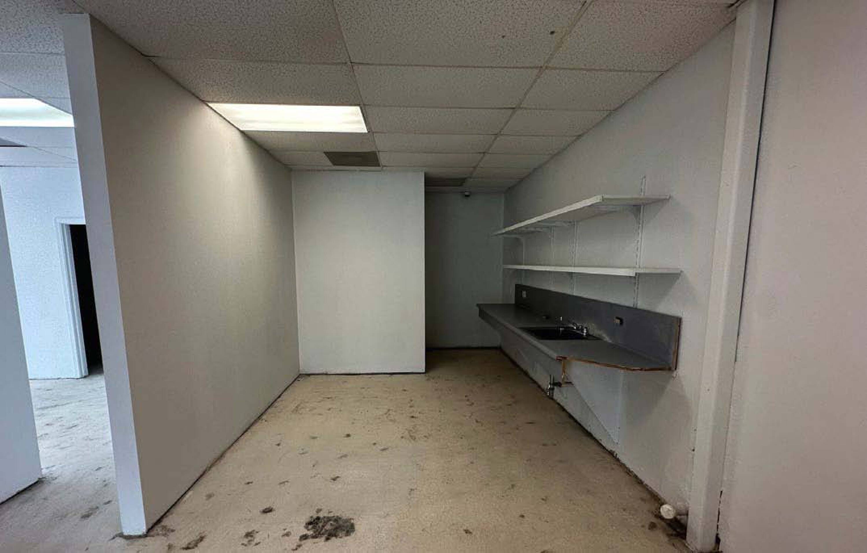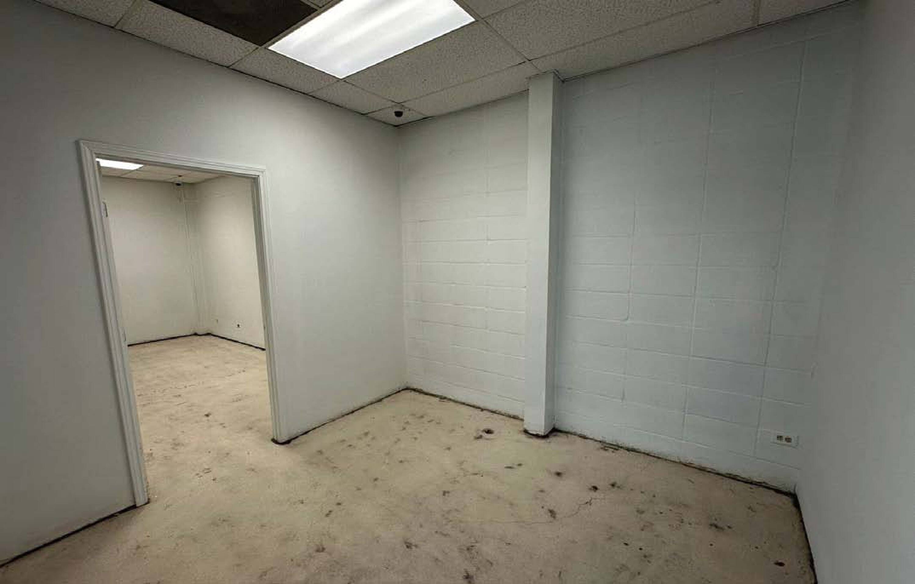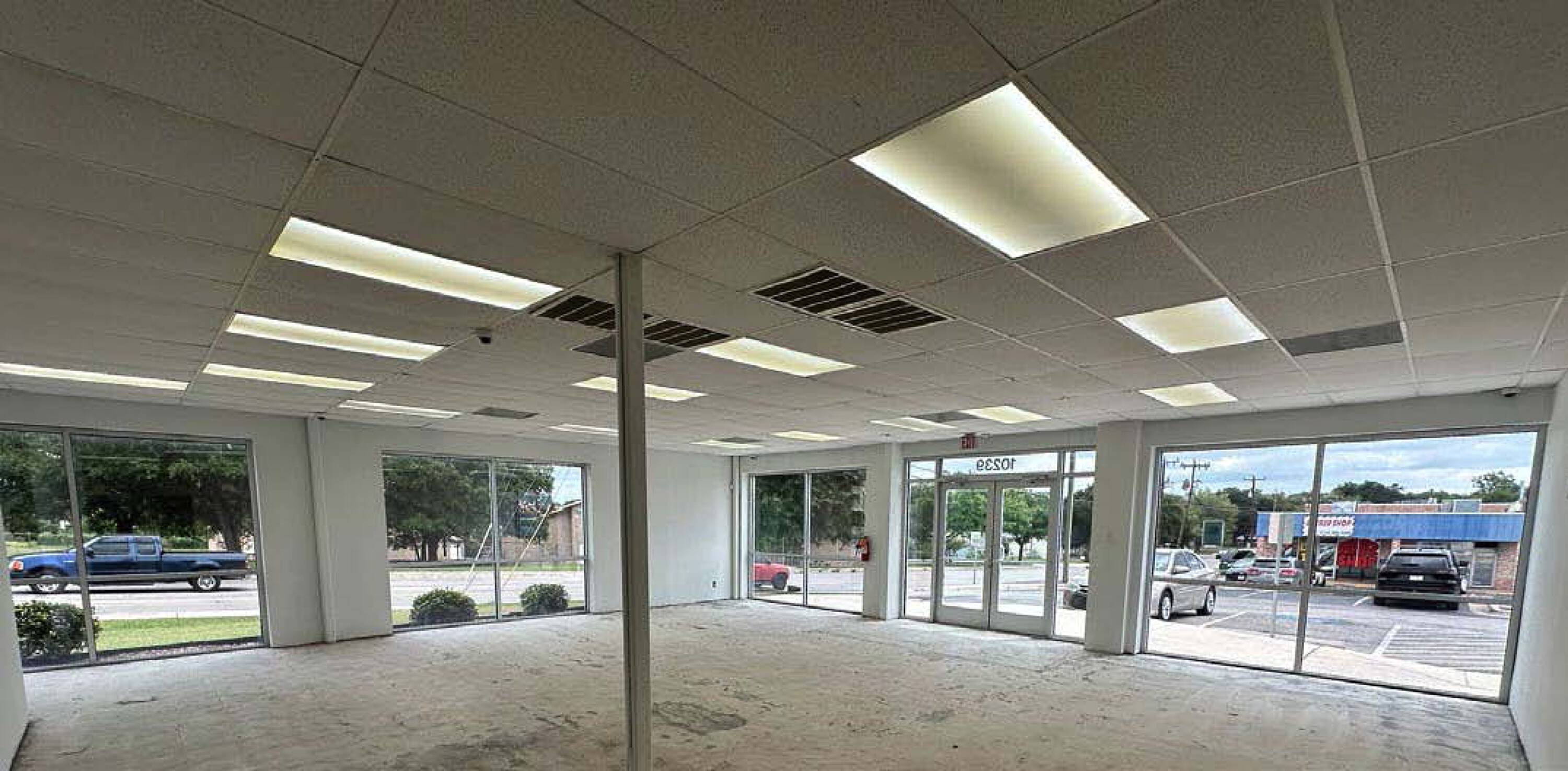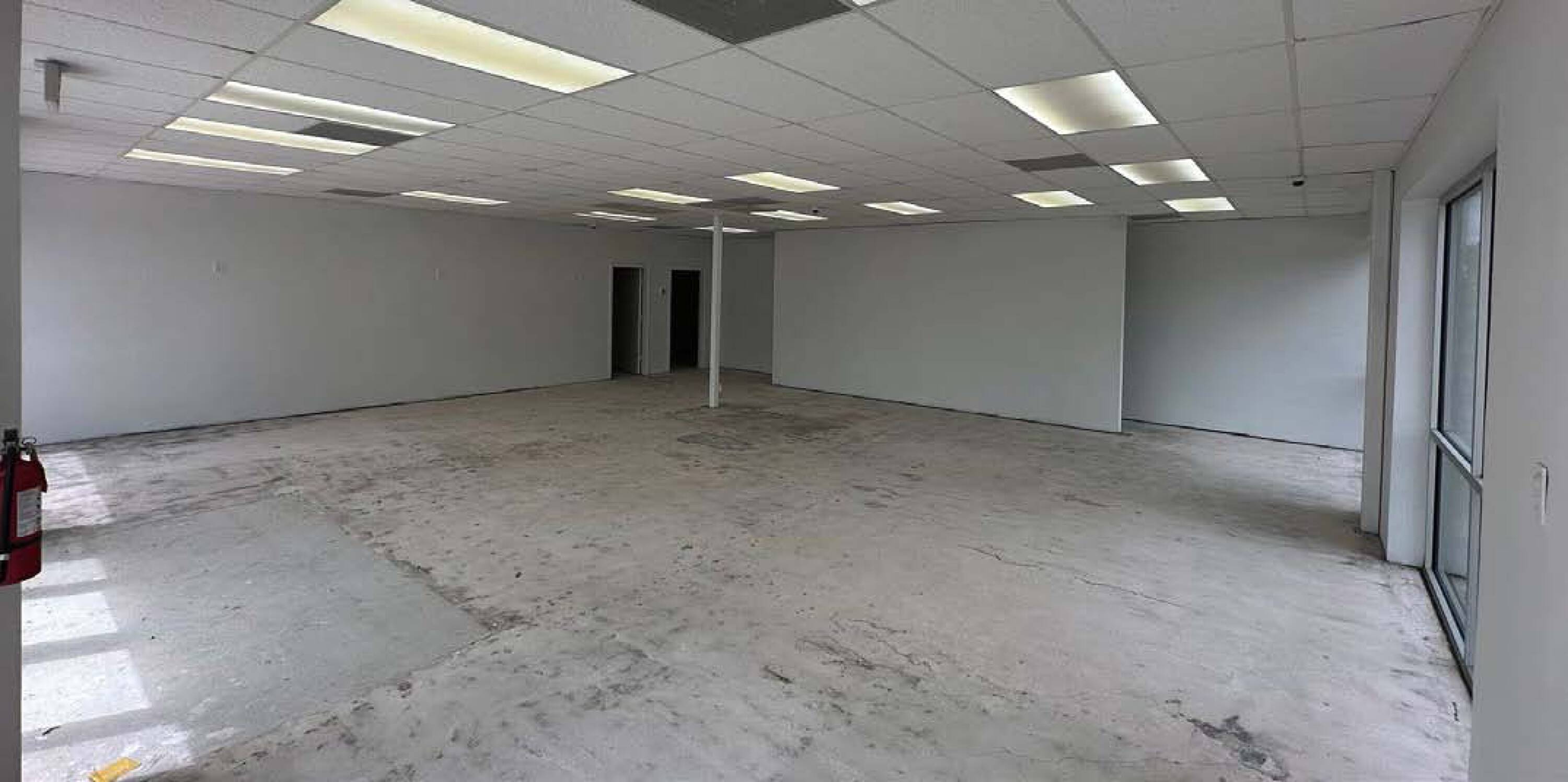 Corner retail location with open space and private offices.