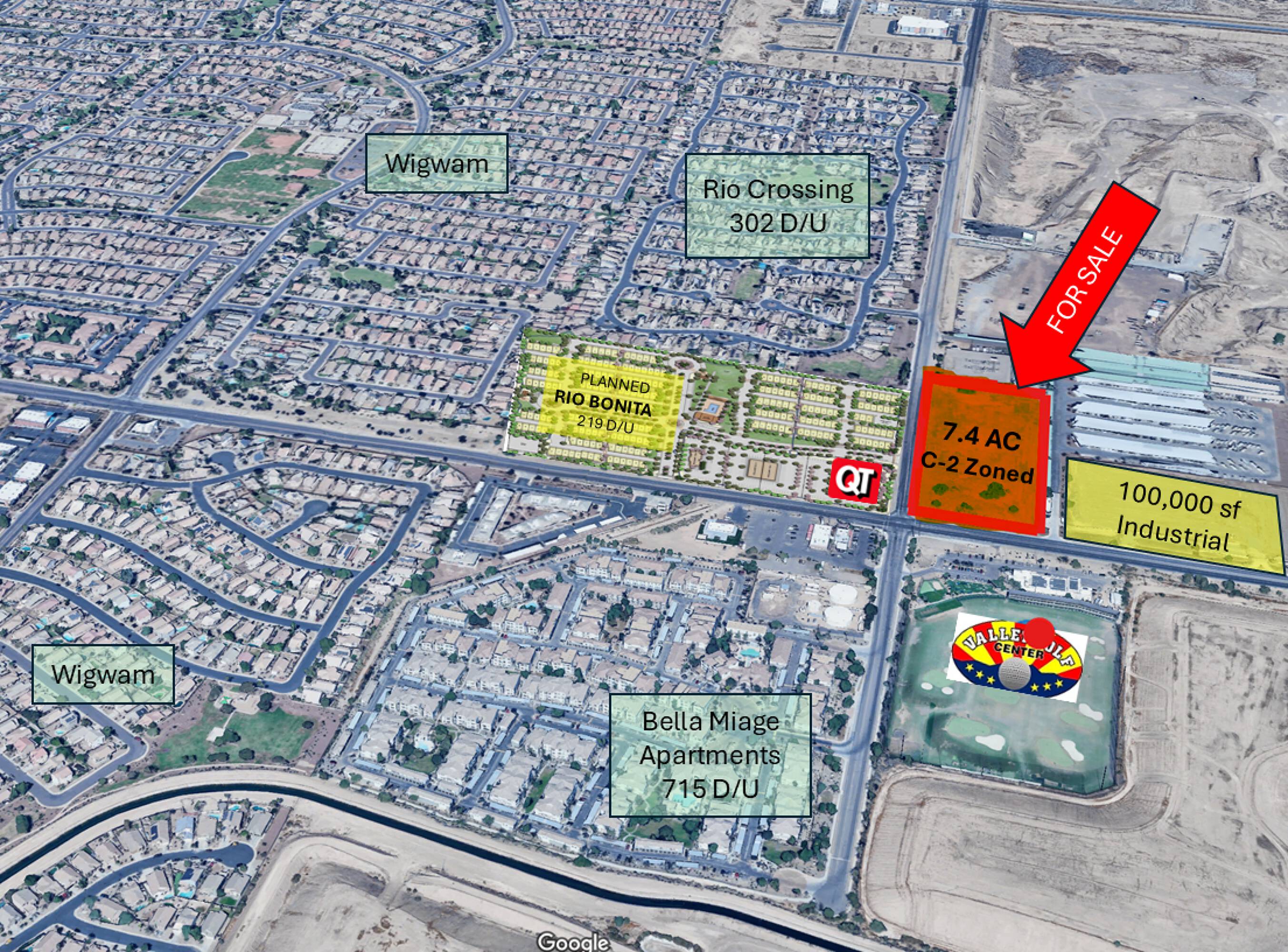 Located on the northeast corner of Indian School and El Mirage, this property consists of approximately 7.4 acres of C-2 zoned land within the city of Avondale. The site is suitable for various uses, including drive-thru retail, larger retail developments, and medical office complexes. The city is open to re-zoning to A-1 (light industrial). Several residential developments are planned for the surrounding area.