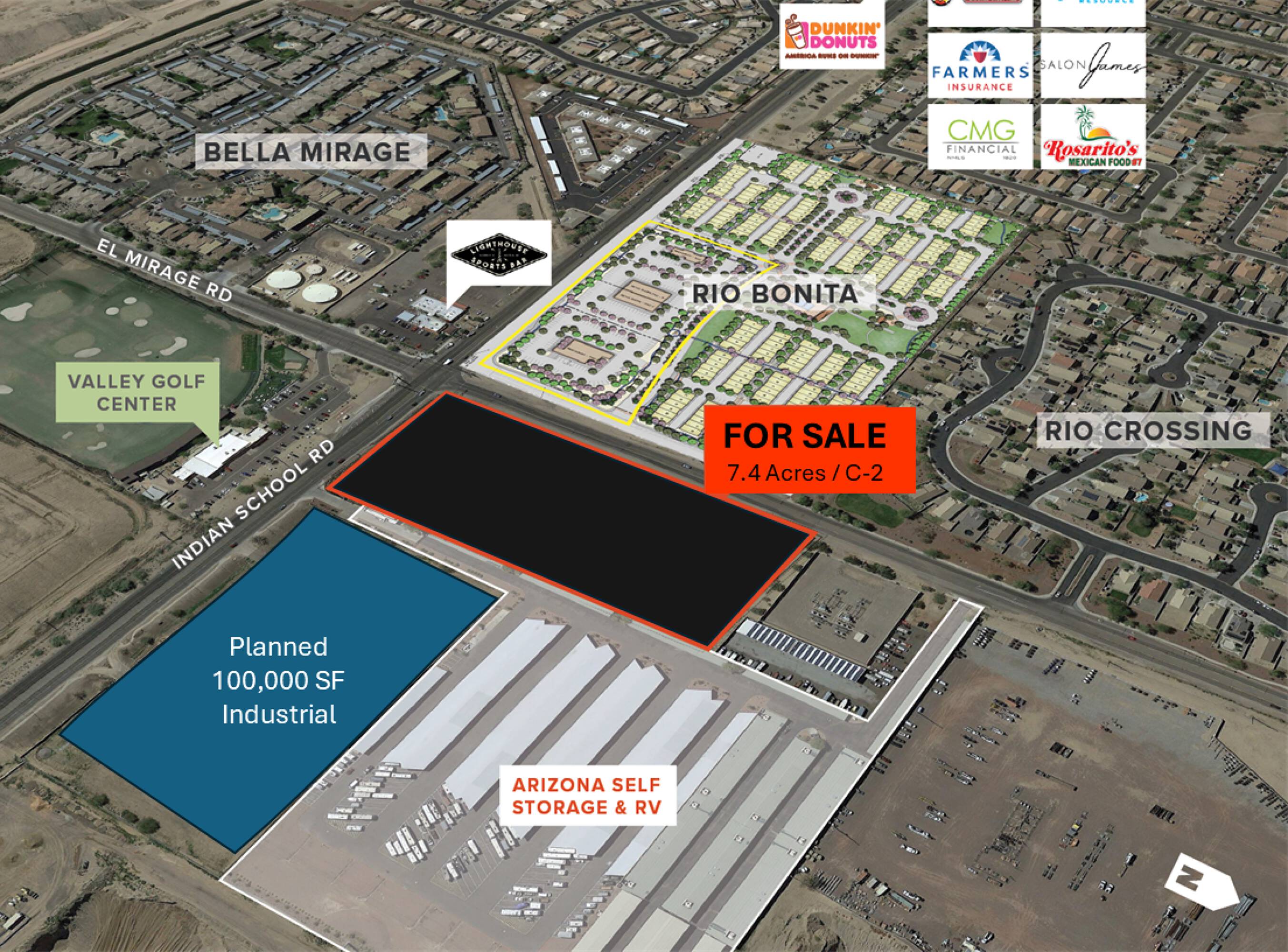 This property features: +/-7.4 Acres of C‑2 Land on a High‑Traffic Corner (Indian School and El Mirage); Located in Avondale, AZ, an area with planned residential developments; Suitable for Drive‑Thru Retail, Larger Retail Development, or Medical Office Complex