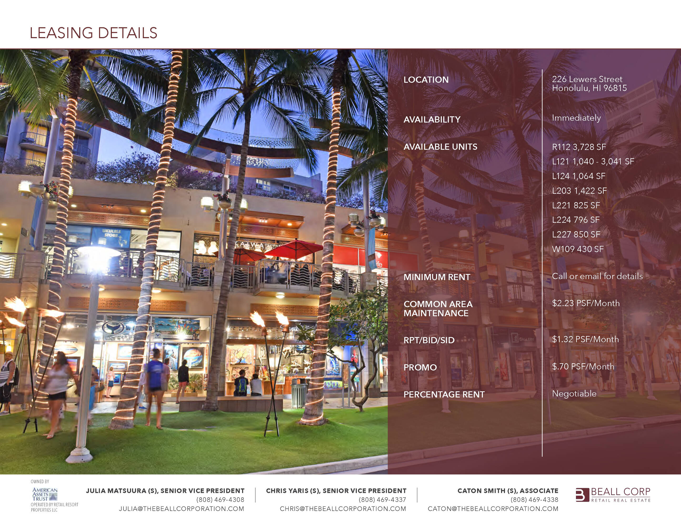 Retail and restaurant spaces in a high-traffic Waikiki location.
