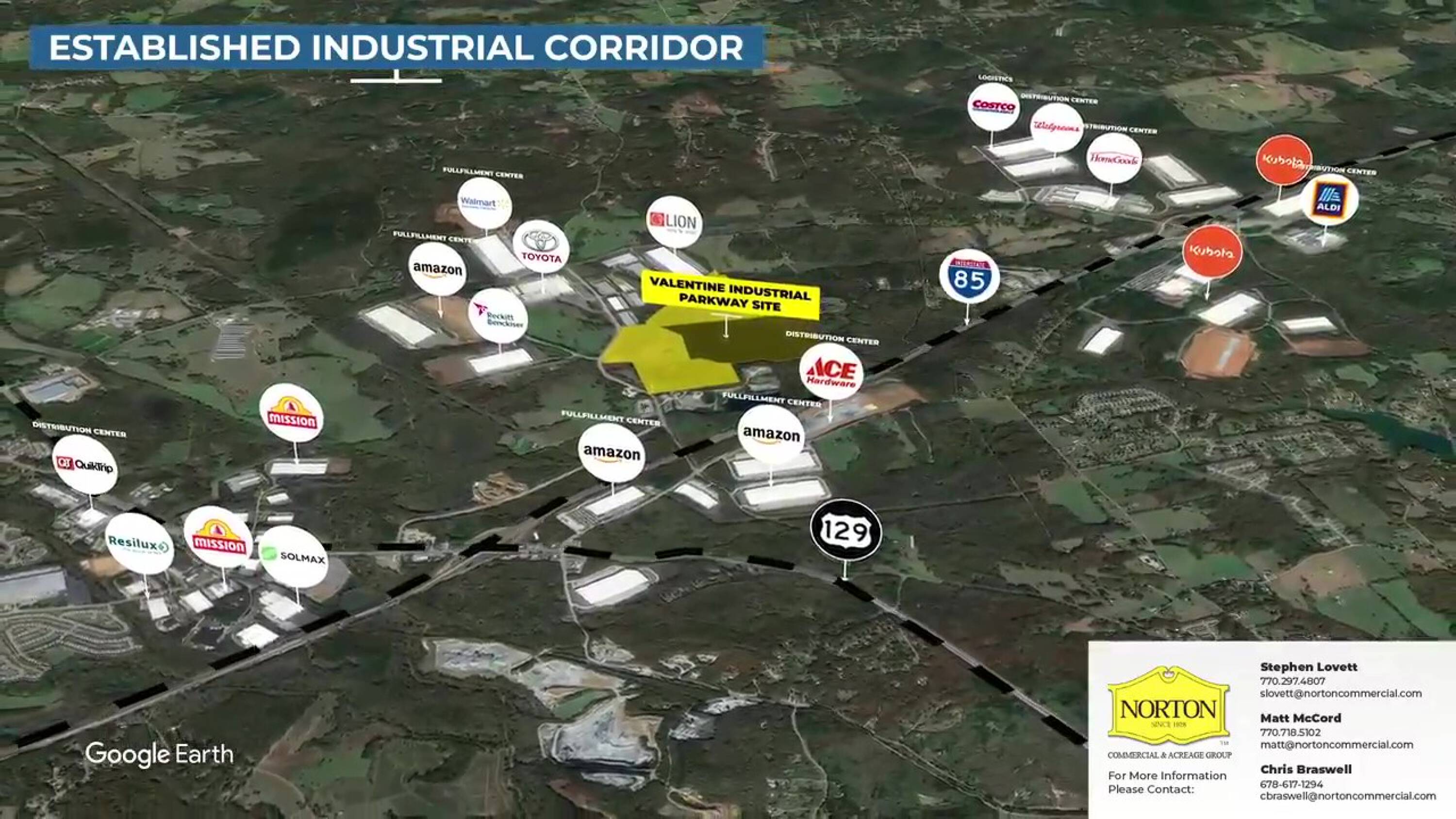 222 acres of industrially zoned land along I-85.