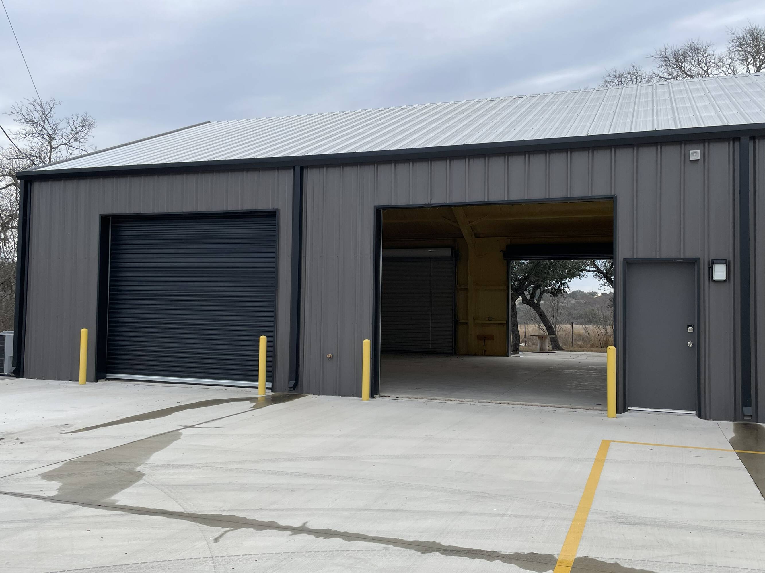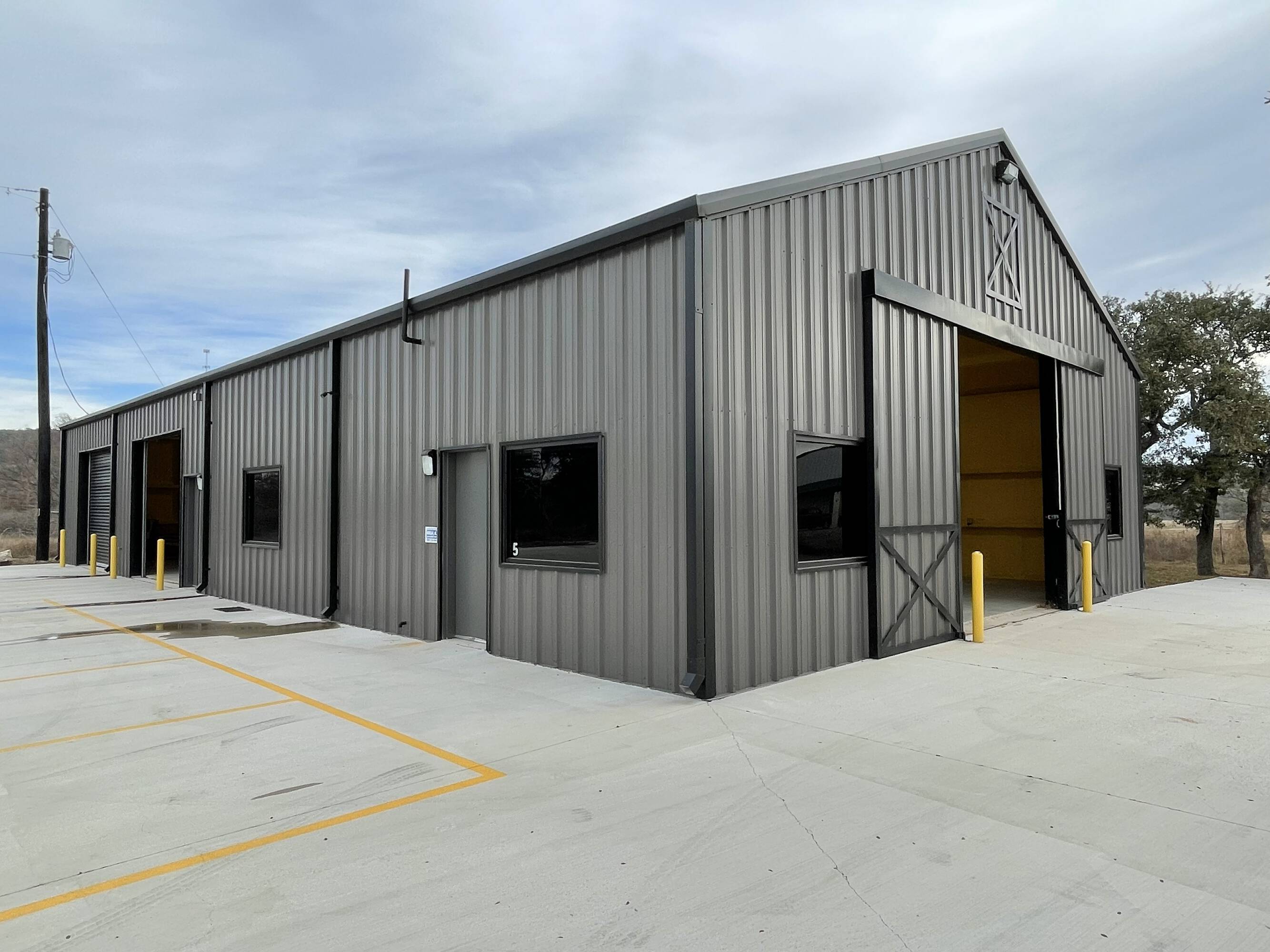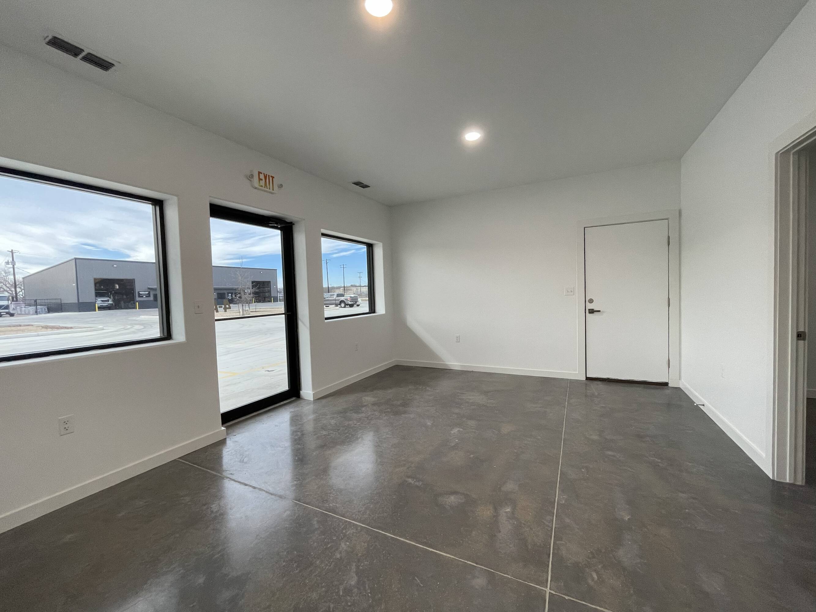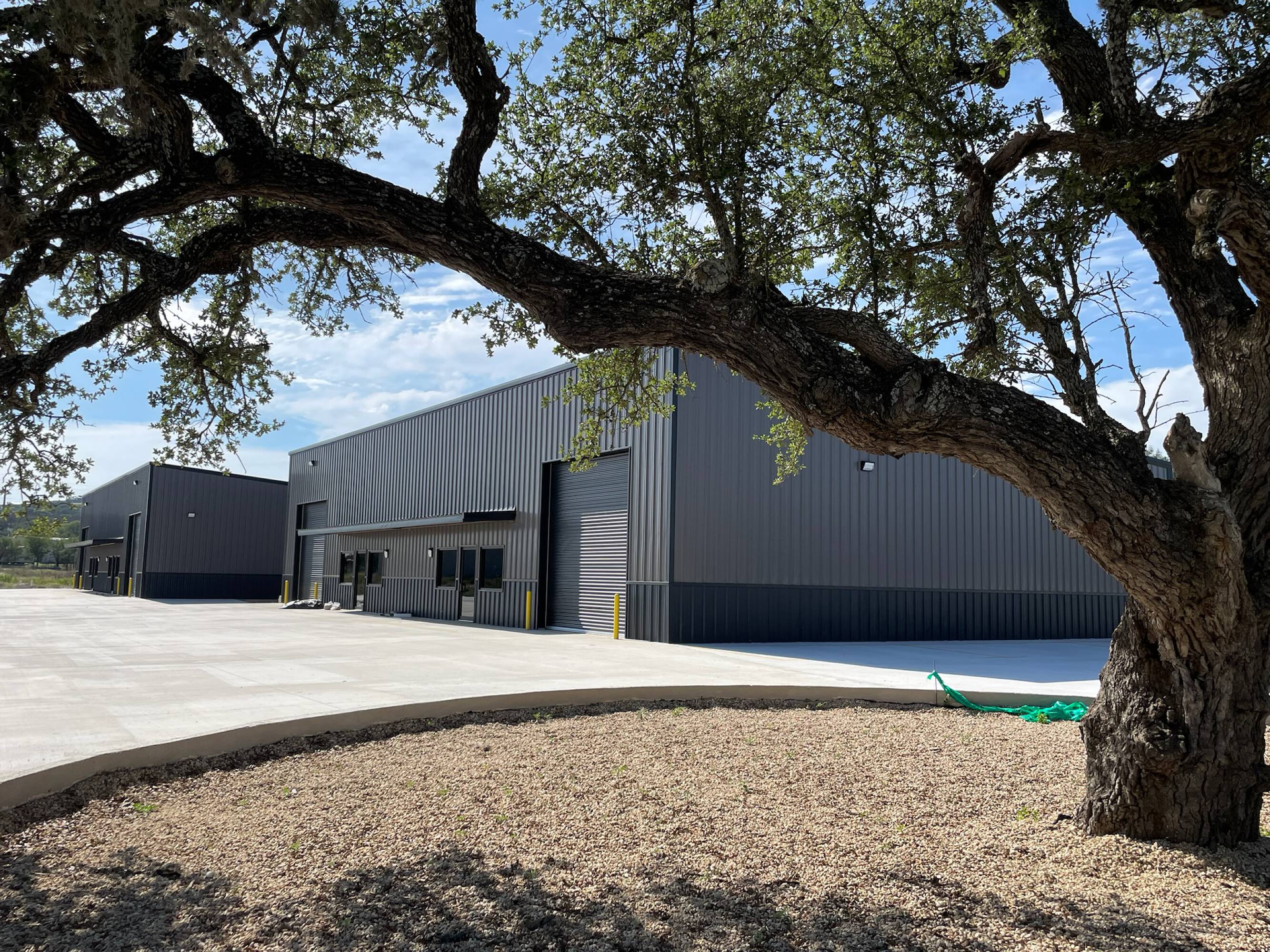 Warehouse buildings for lease with concrete parking and yard space.