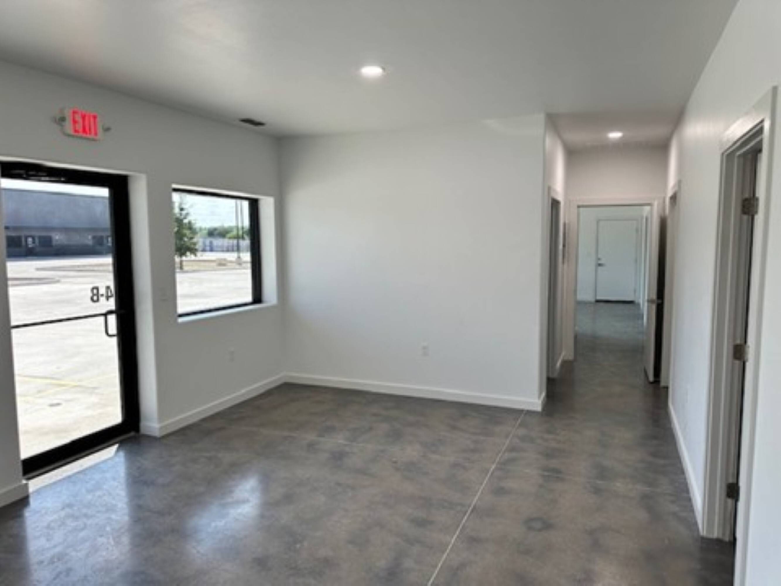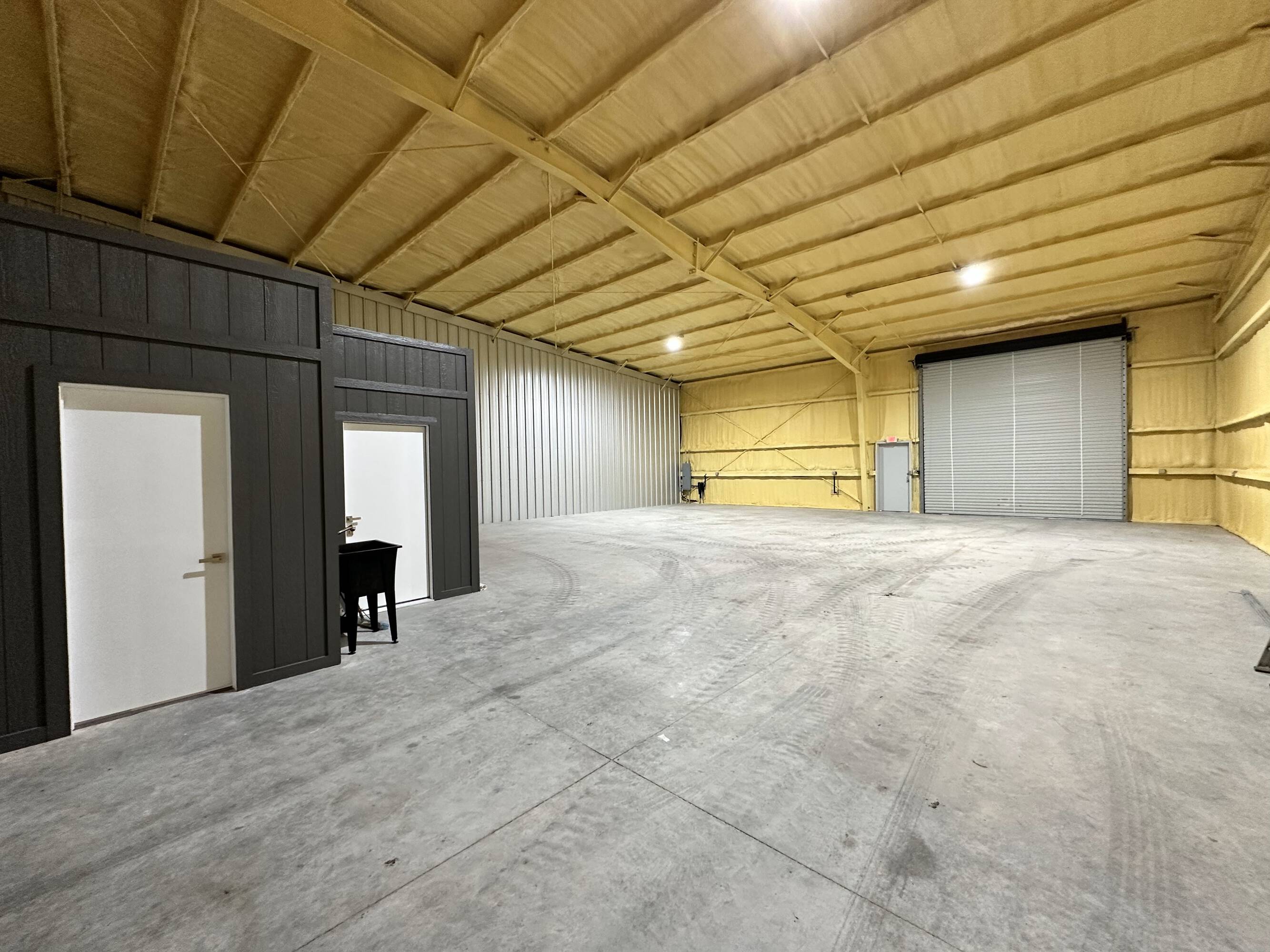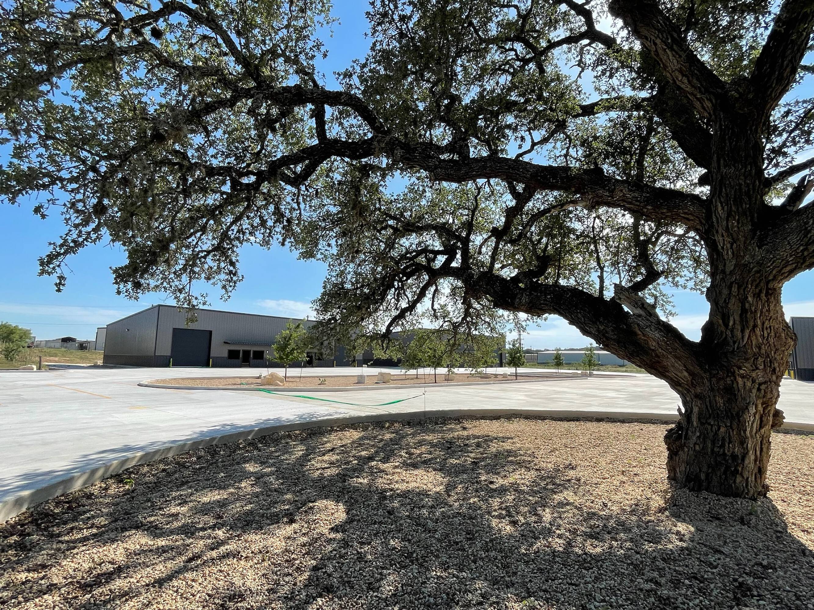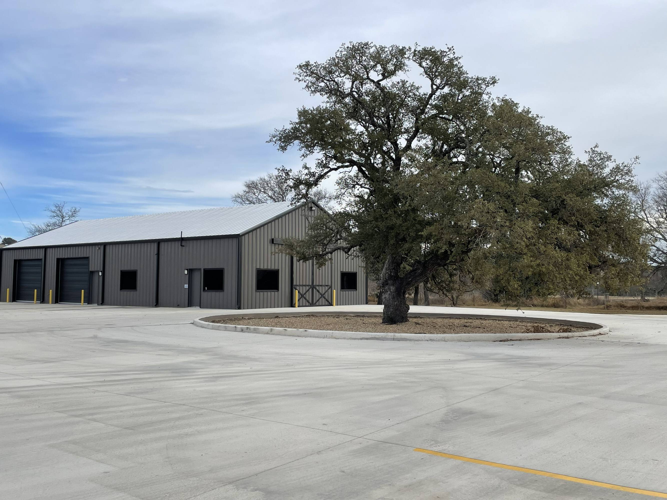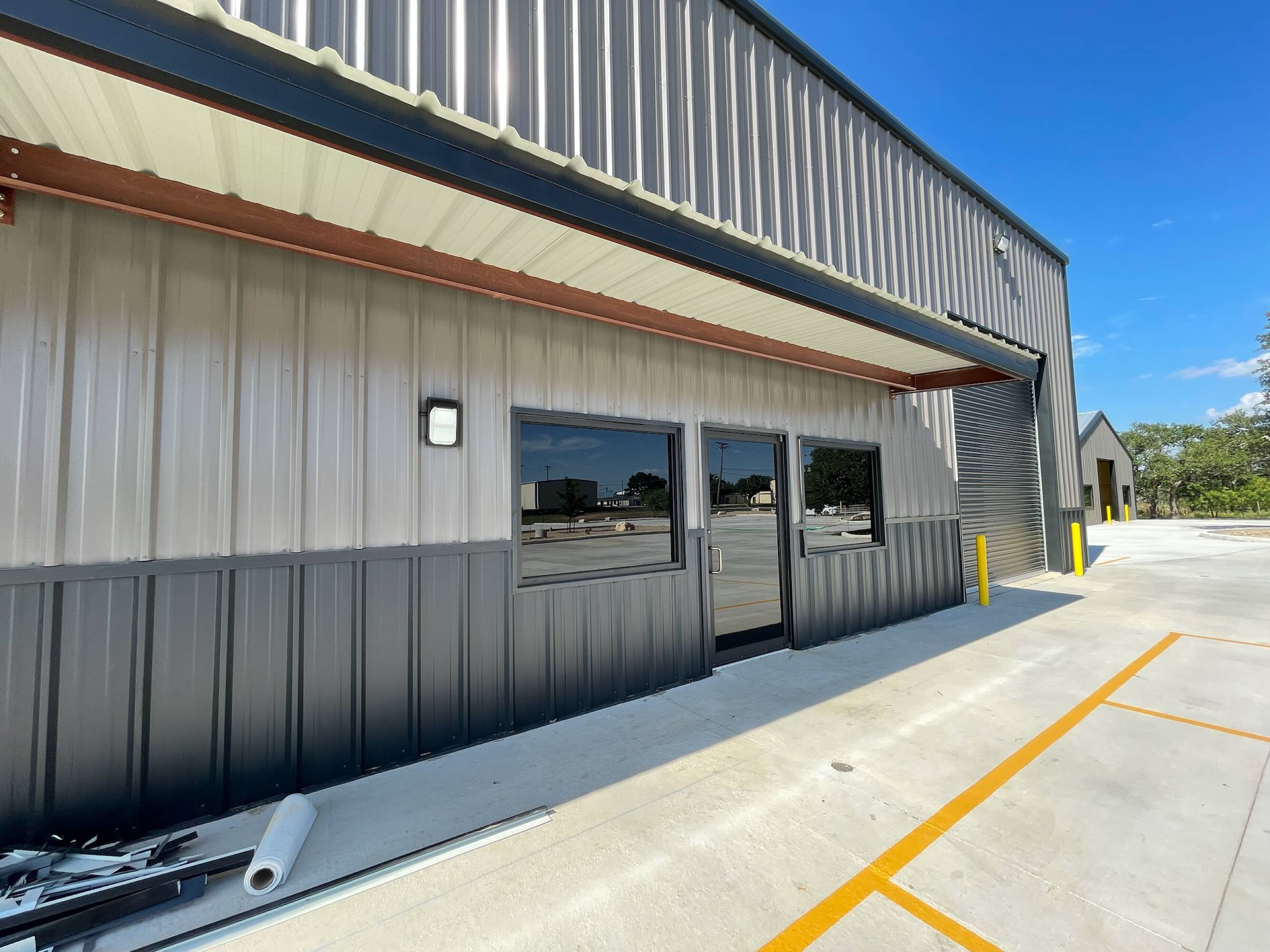 Warehouse buildings for lease with concrete parking and yard space.