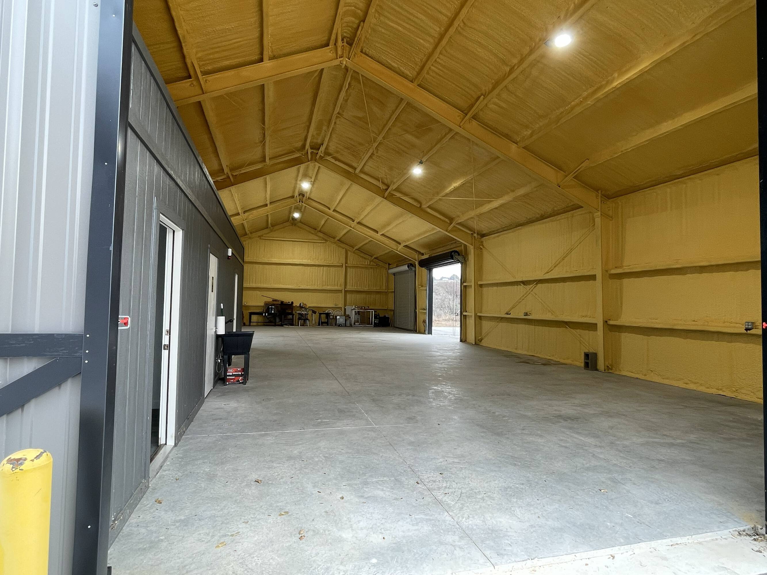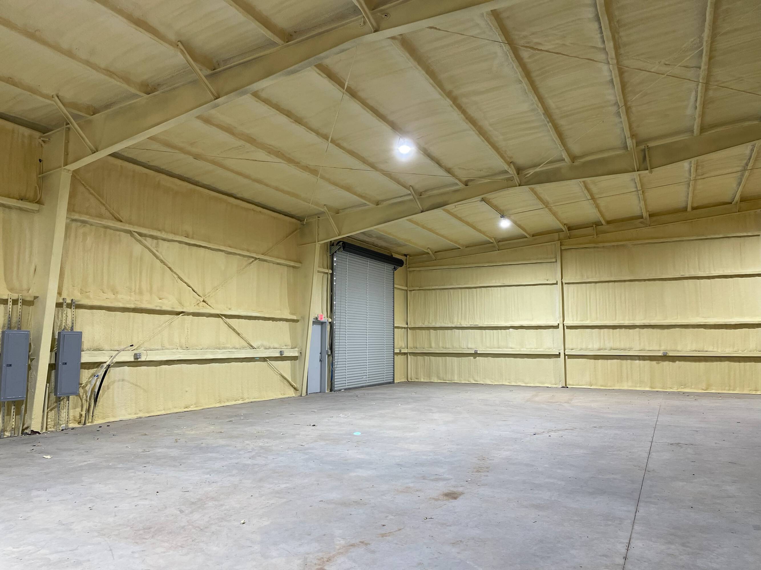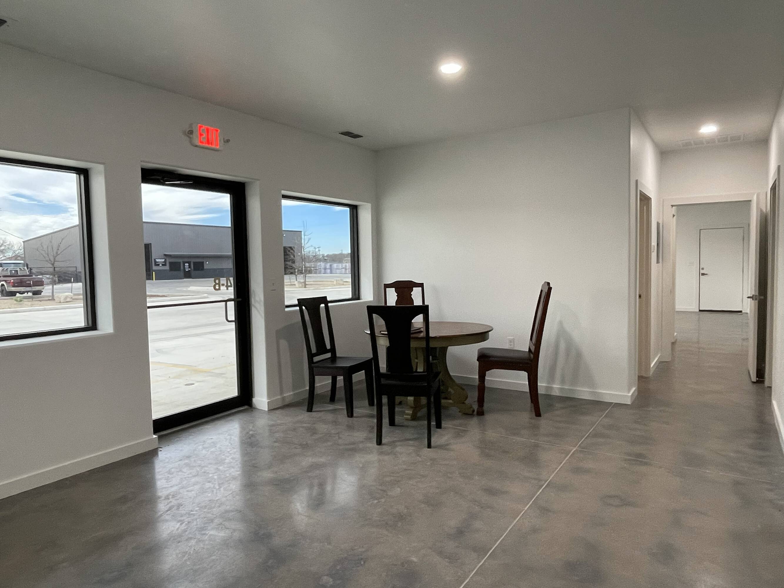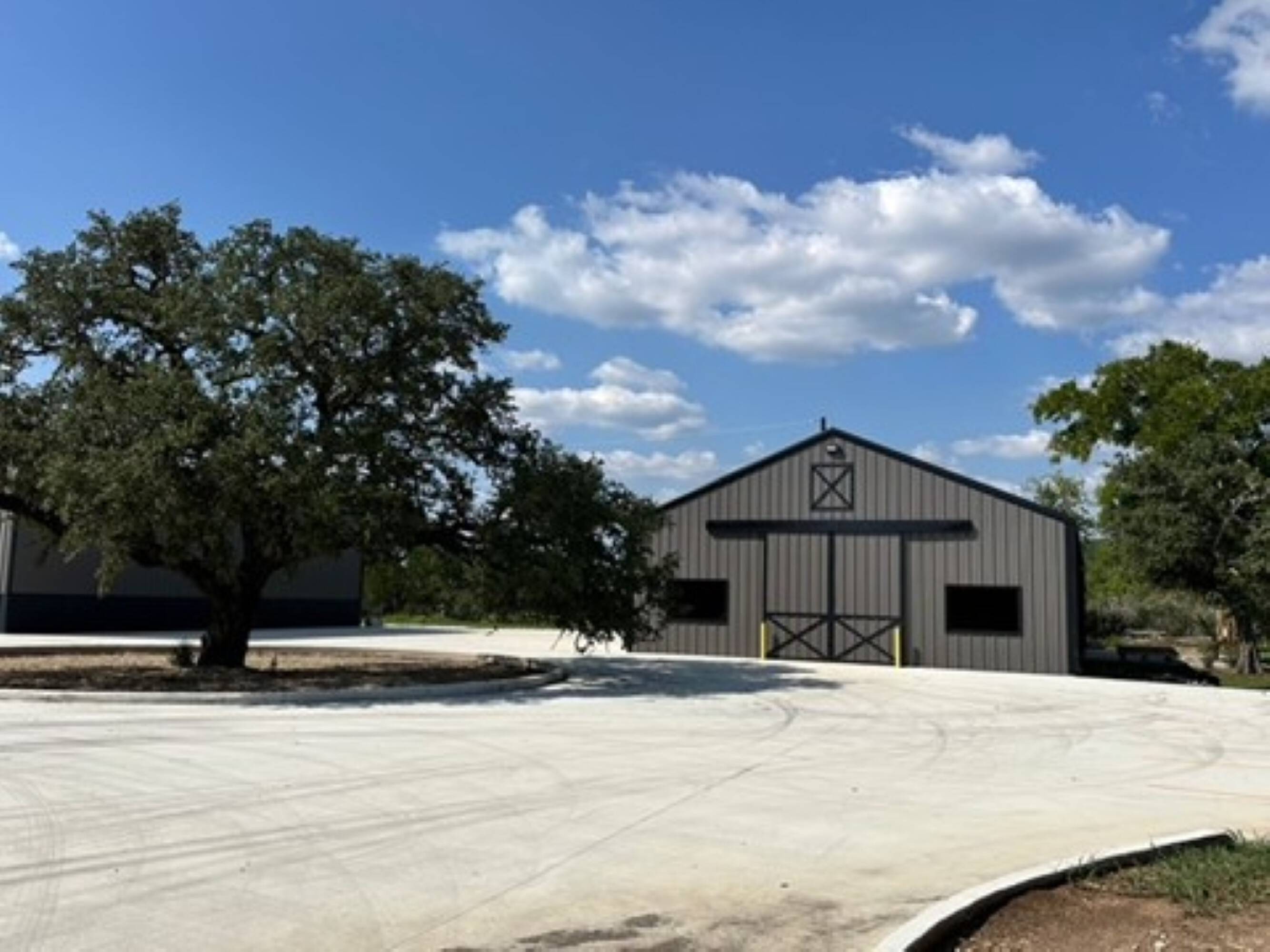 Warehouse buildings for lease with concrete parking and yard space.