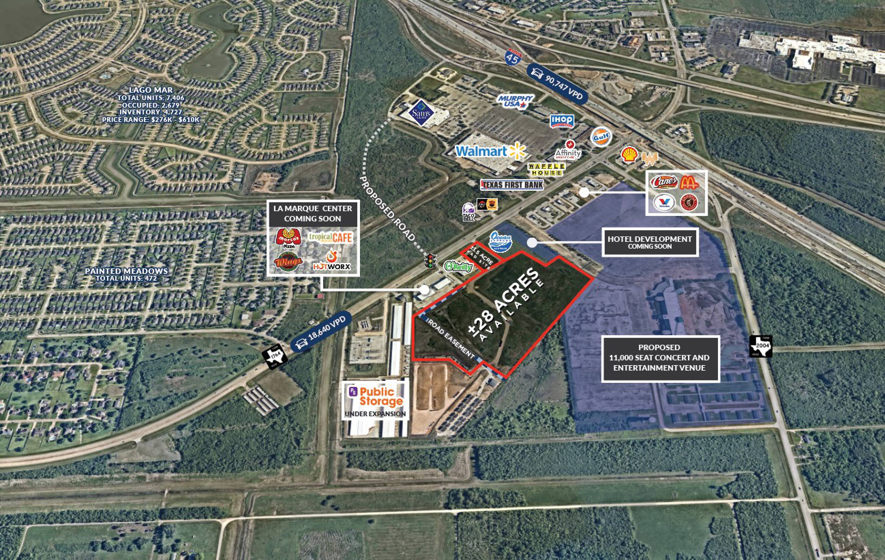 This property features: Excellent development opportunity in La Marque, TX, with a pro‑business city government.; Ideal site for grocery‑anchored development with excellent frontage‑to‑depth ratios.; Close proximity to Sam's Club, Walmart, and Tanger Outlet (5 million+ annual visitors).