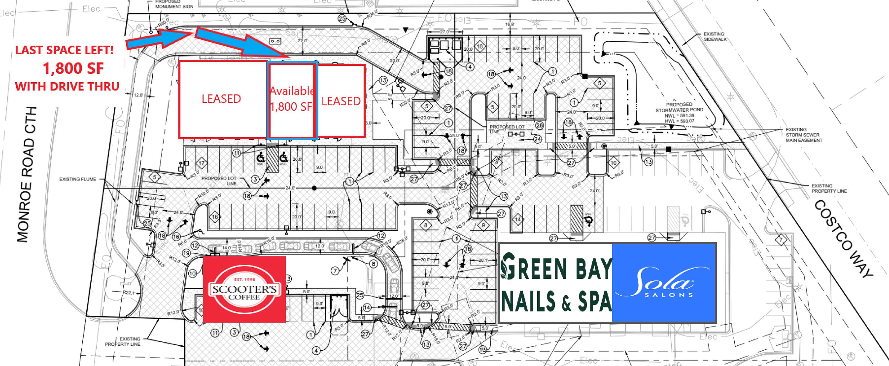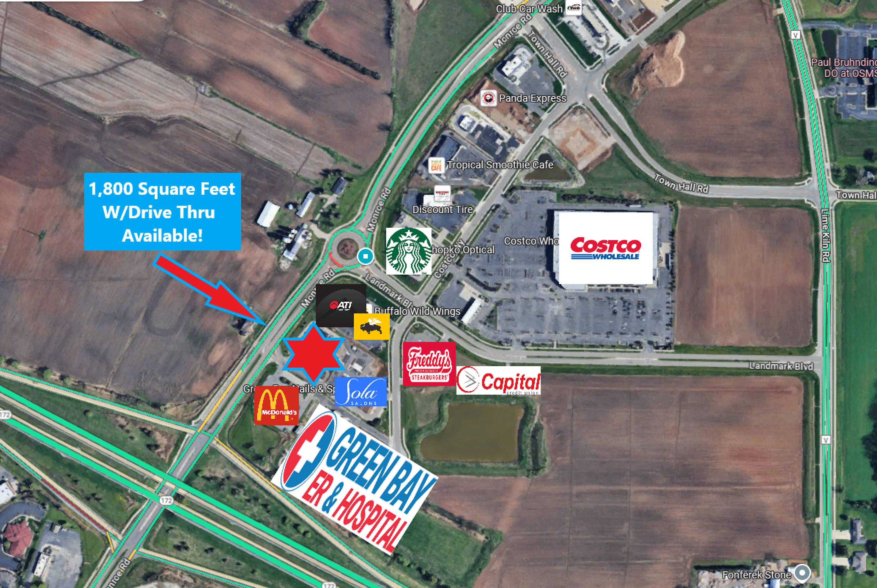 Retail space available with potential drive-thru in De Pere.