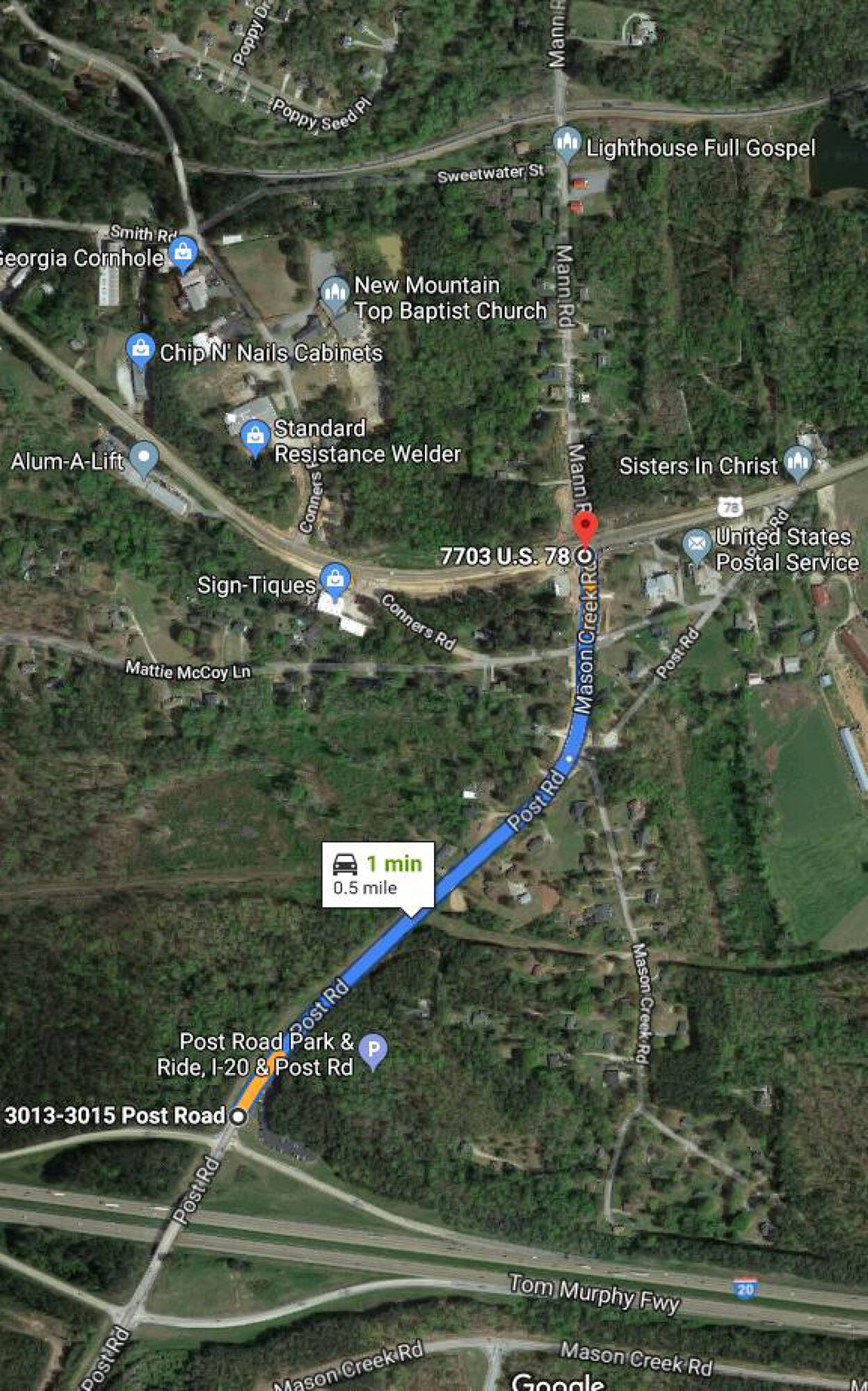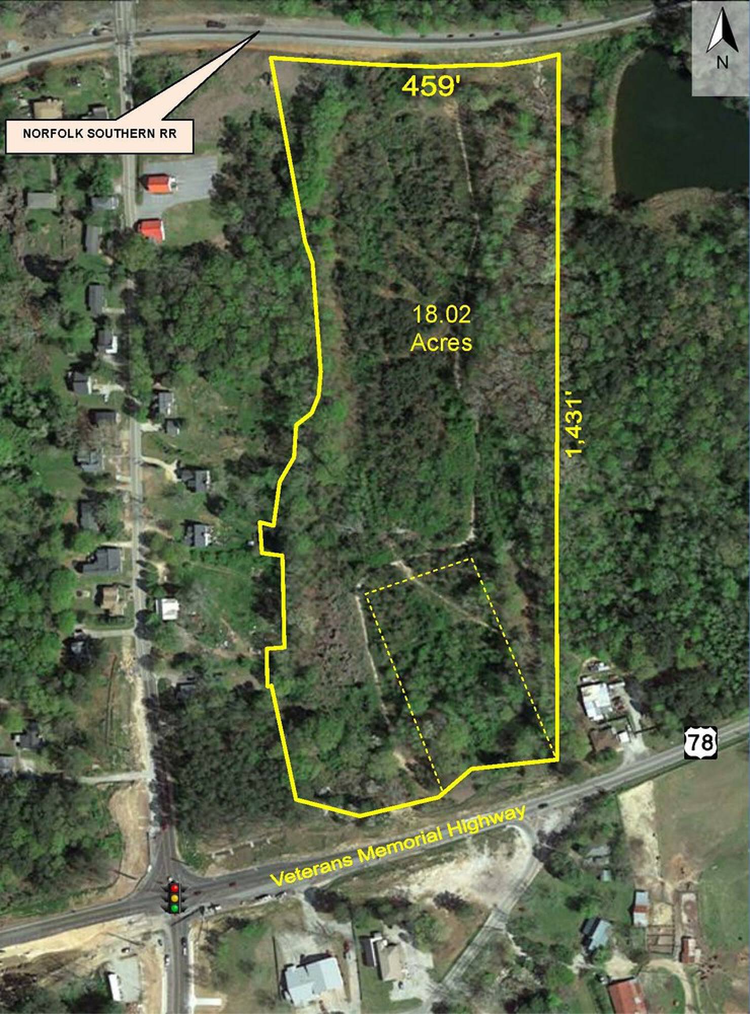 This property features 18 acres of land. It is located approximately 0.5 miles from I-20 on Veterans Memorial Highway.