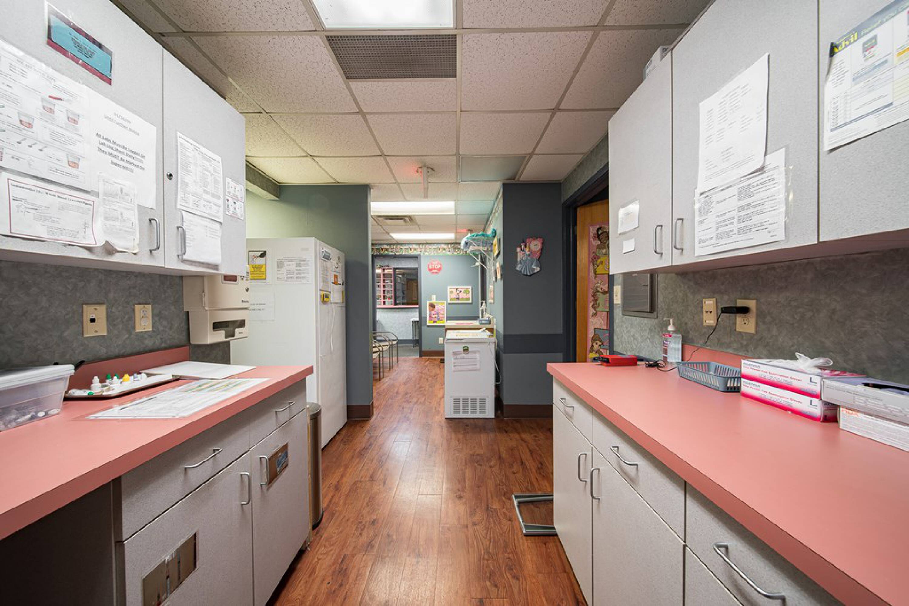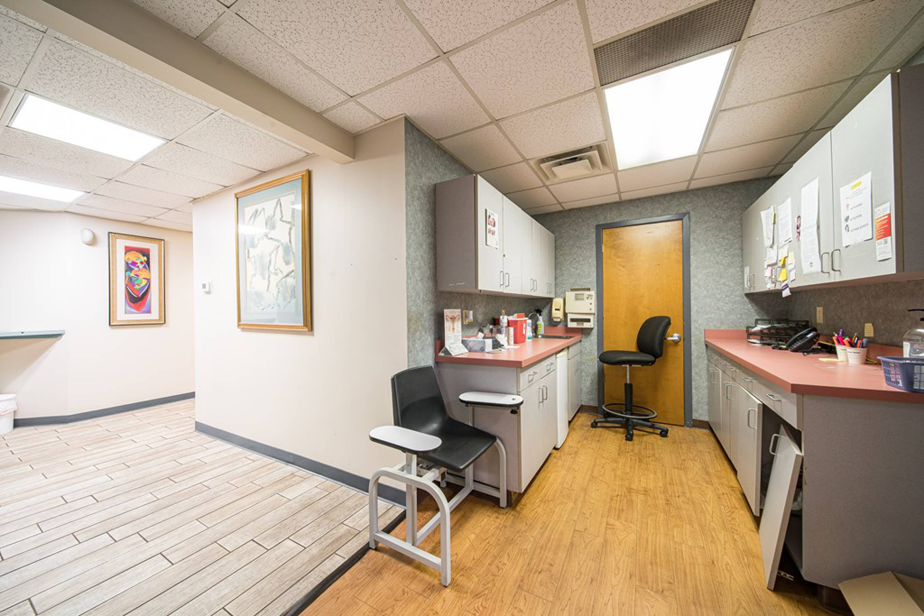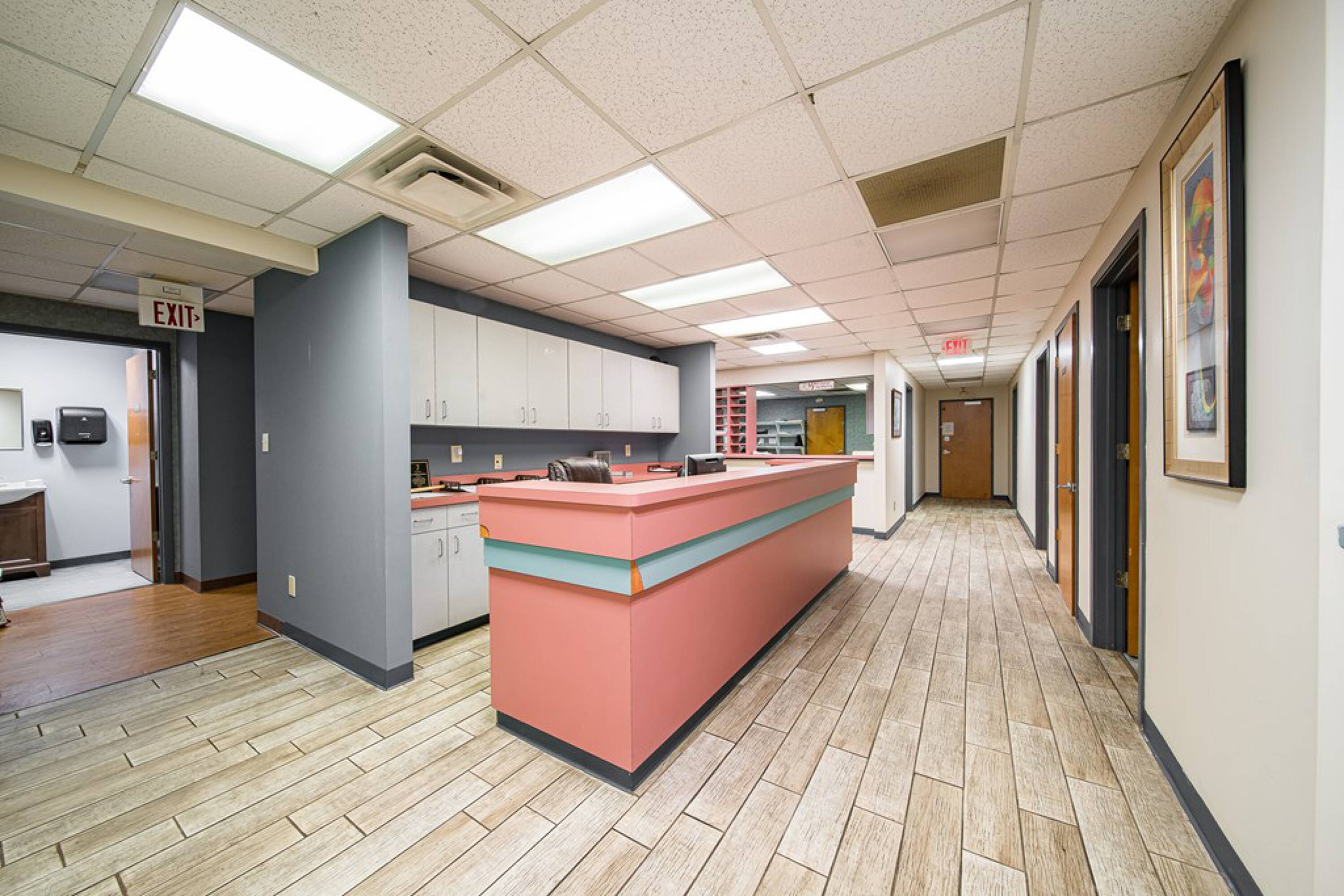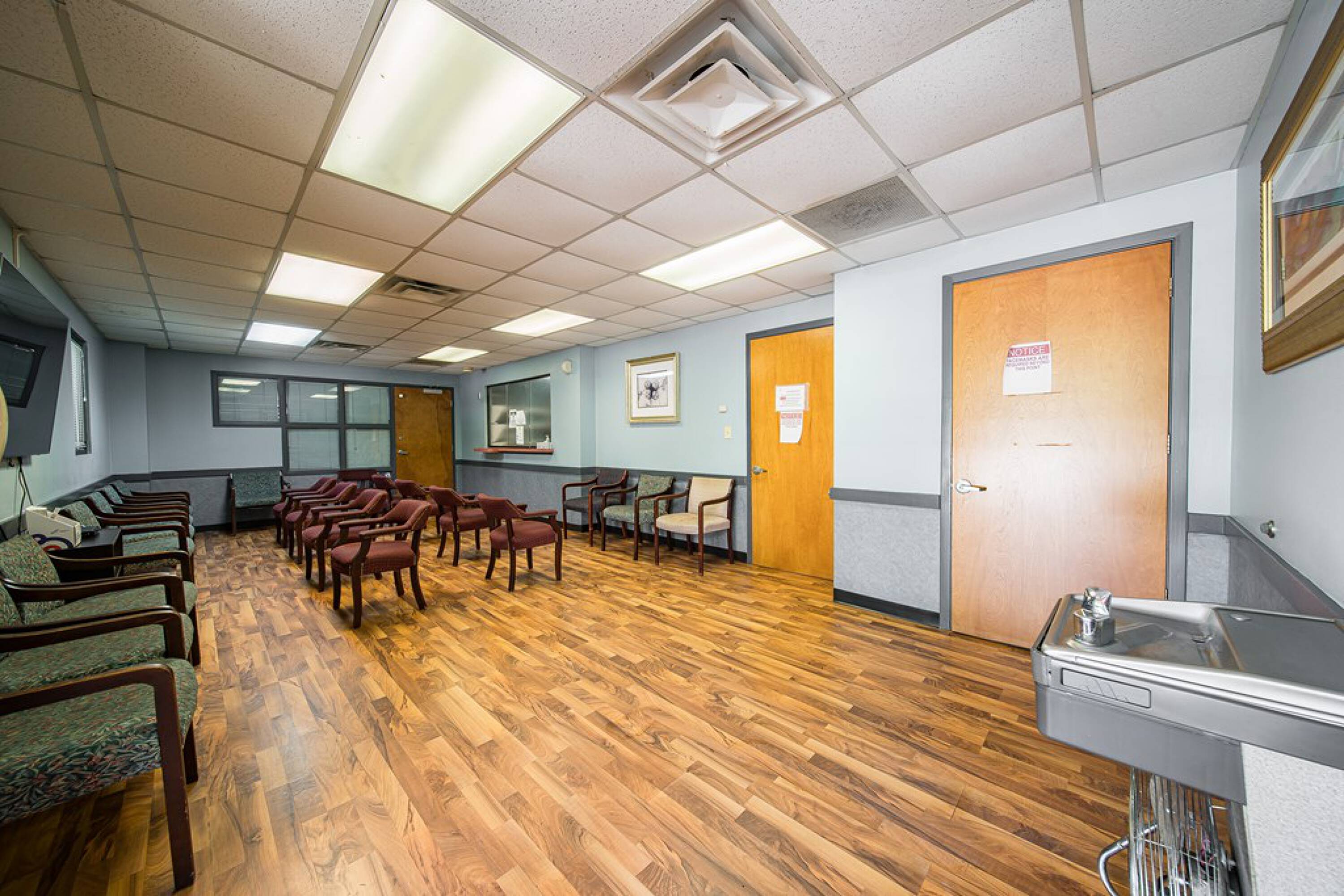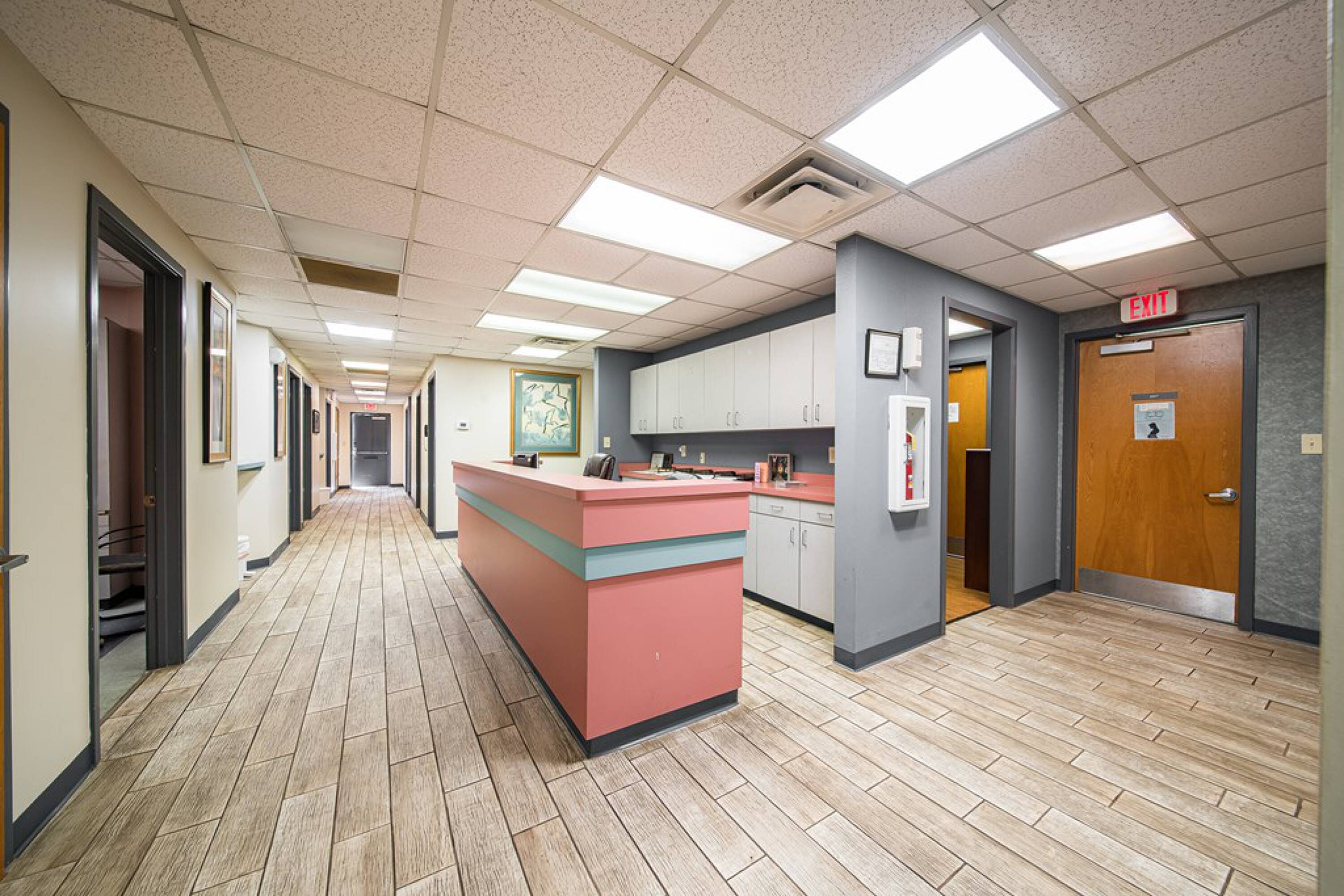 This property features: Two separate medical office spaces with separate entrances.; Ample parking for employees and patients.; Ideal for medical office use with existing exam rooms, bathrooms, lobby/reception, waiting rooms, nurses station, private offices, and break room.