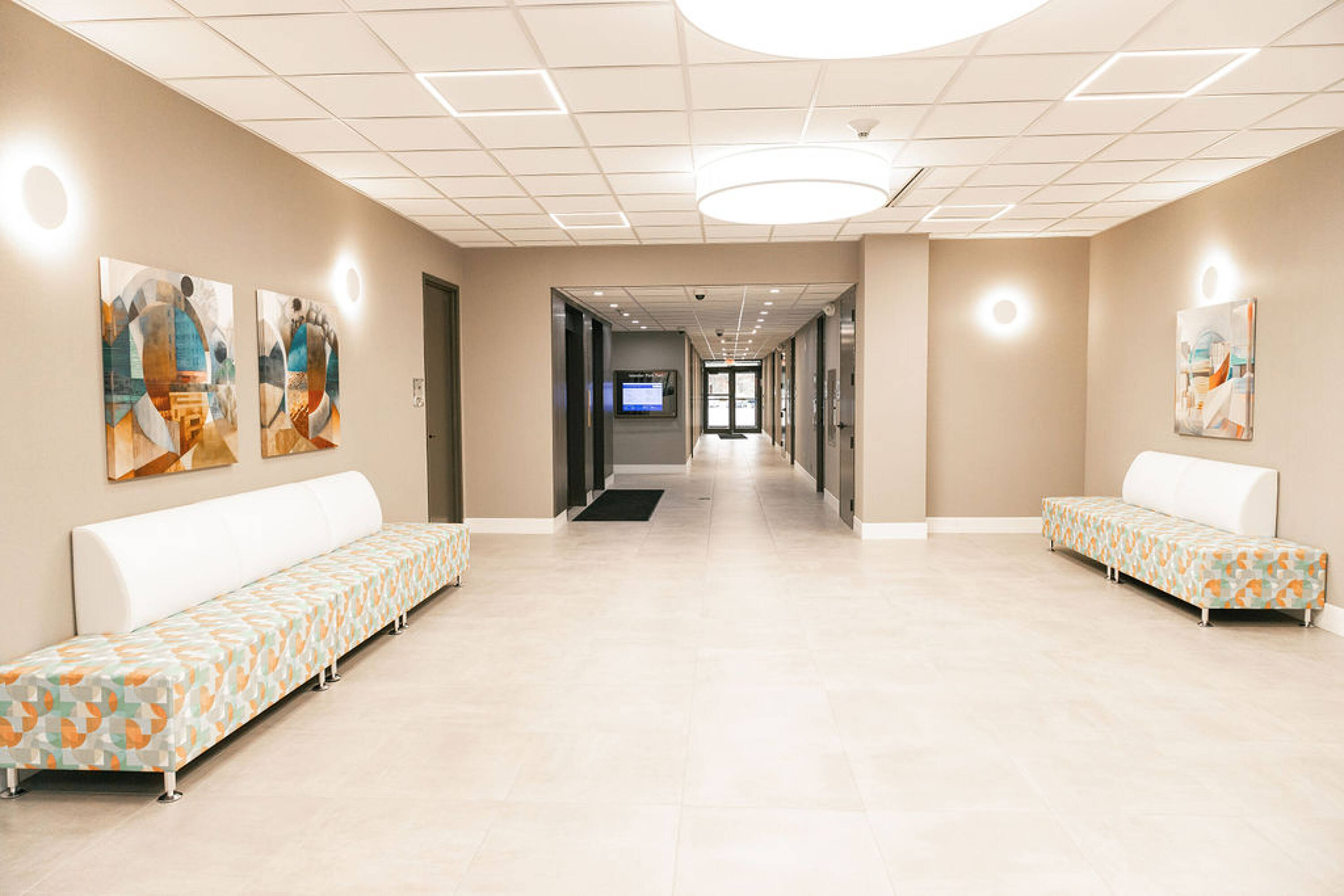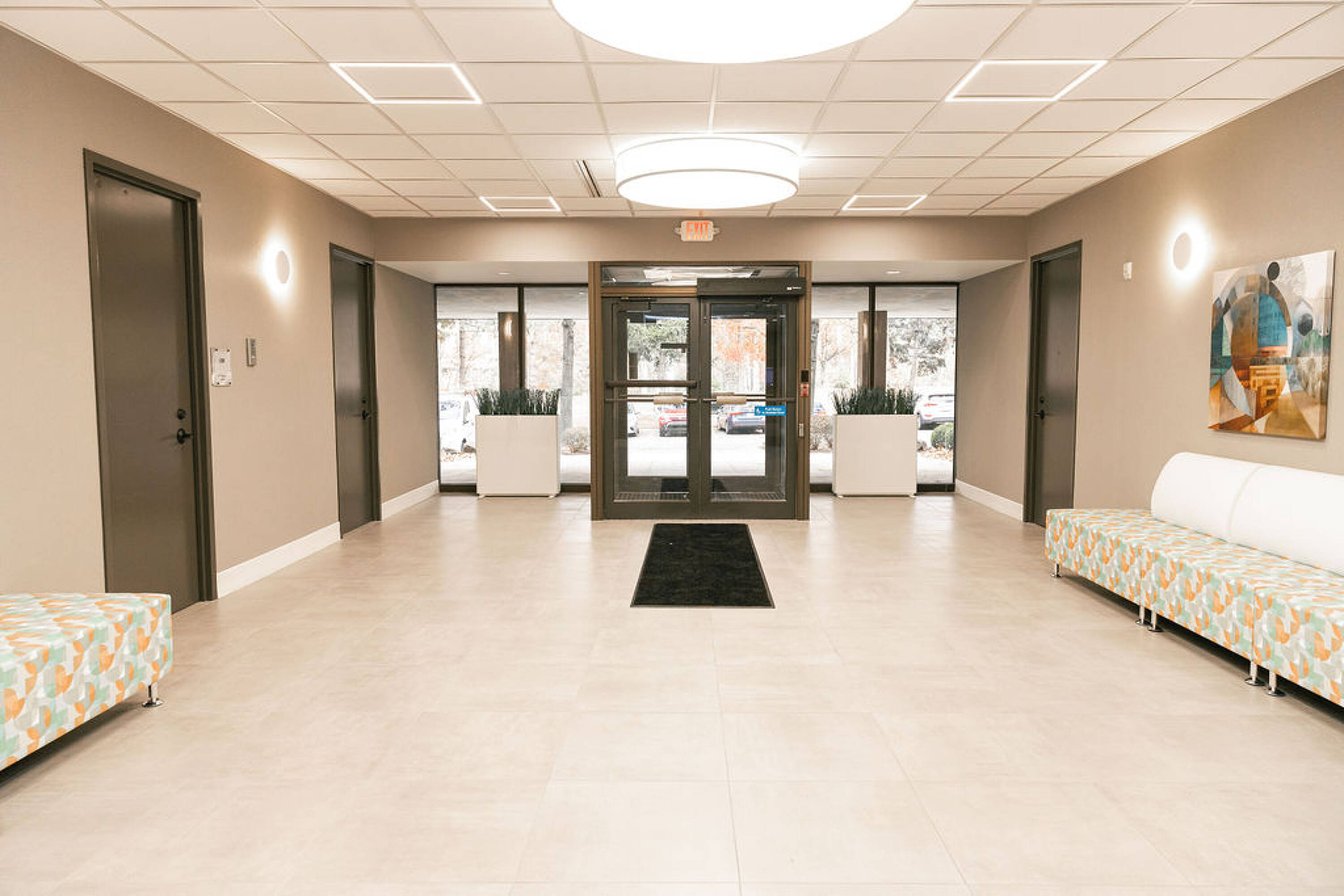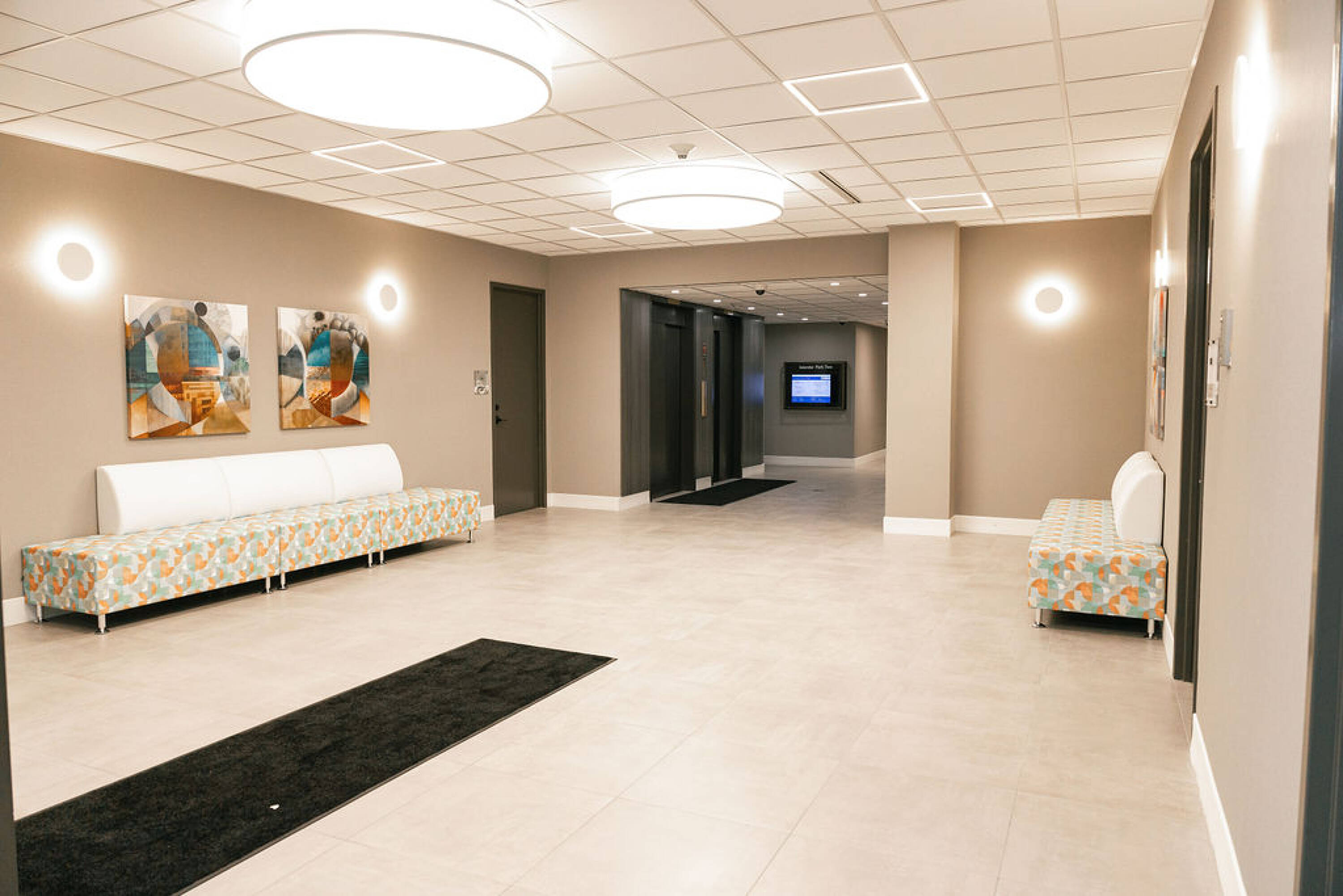 Recently renovated office building with fitness center, pool, and more.