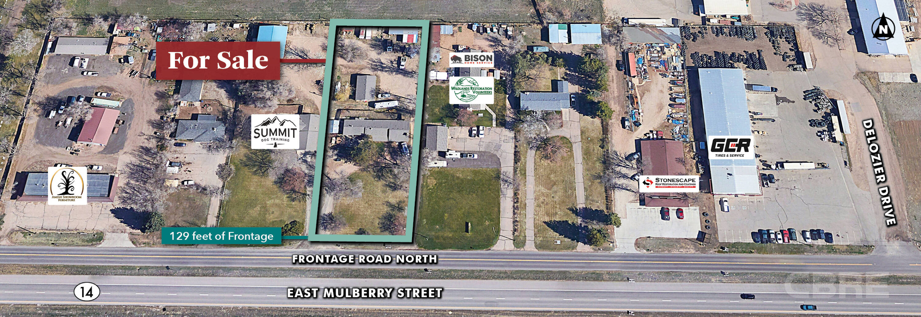 The property at 2920 East Mulberry Street is a 1.08-acre commercially zoned (C-D Commercial Destination) site. It includes a residential home, which could be converted into an office, and a 960 square foot freestanding flex building. The flex building features three overhead doors and a separate office space in the rear. The current residential tenant can vacate with 30 days’ notice. The property offers a balance of outdoor yard space, office or warehouse space, visibility, and convenient I-25 access, making it suitable for various businesses.