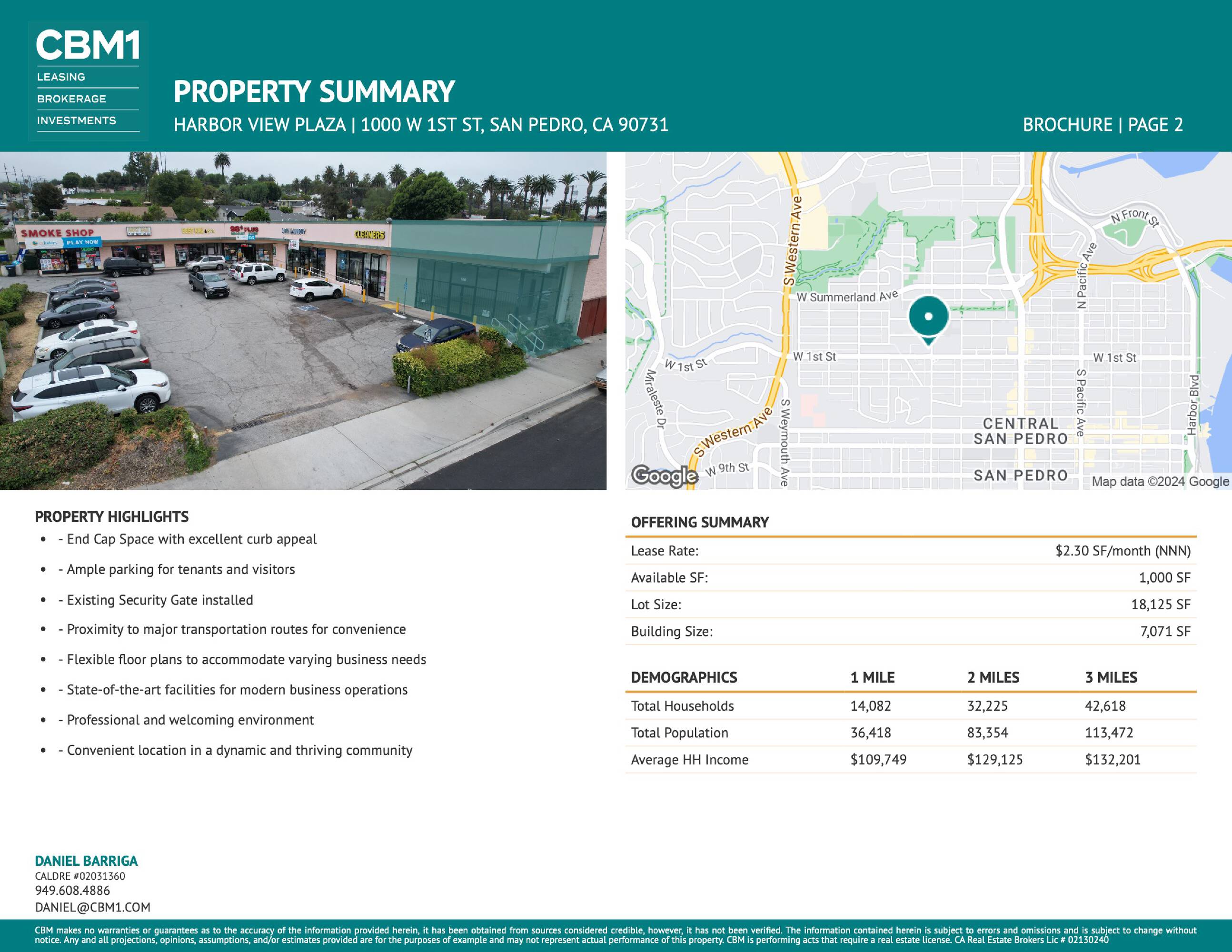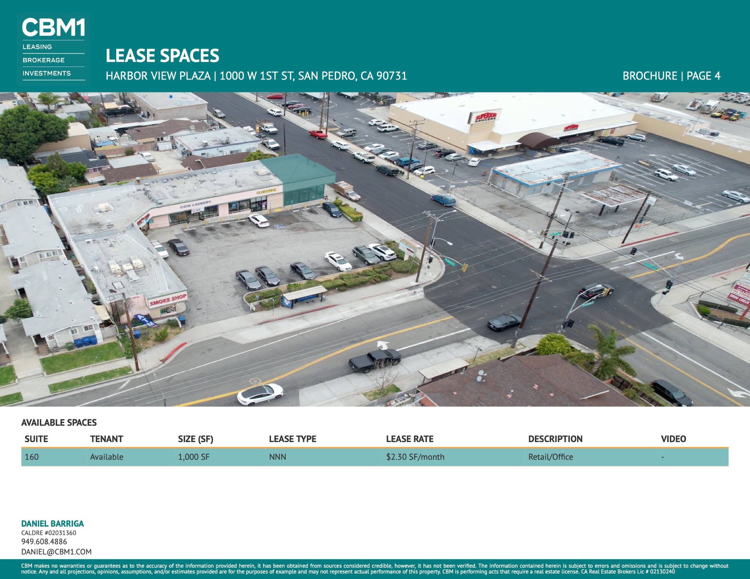 Highly visible San Pedro strip center near major thoroughfares.