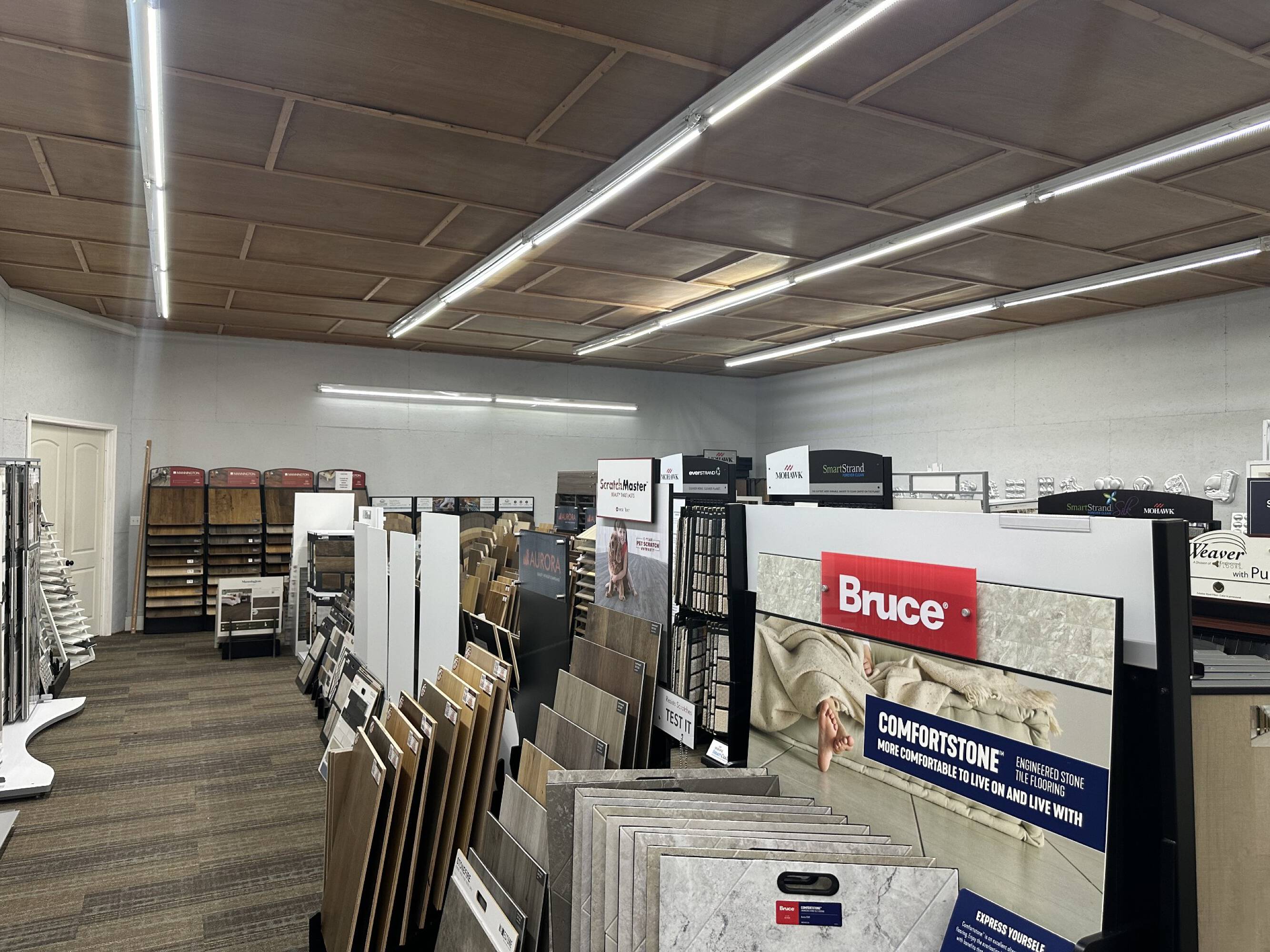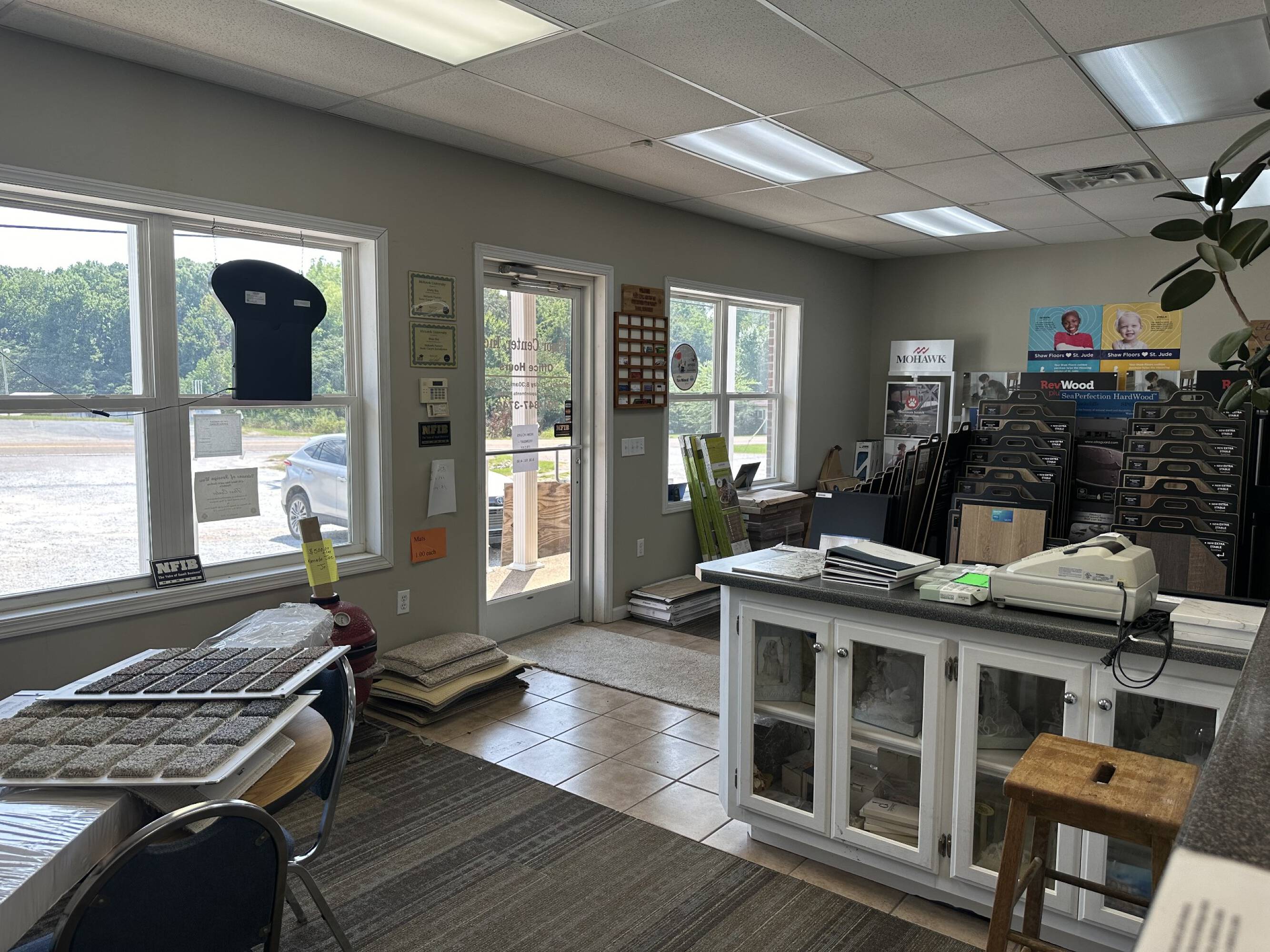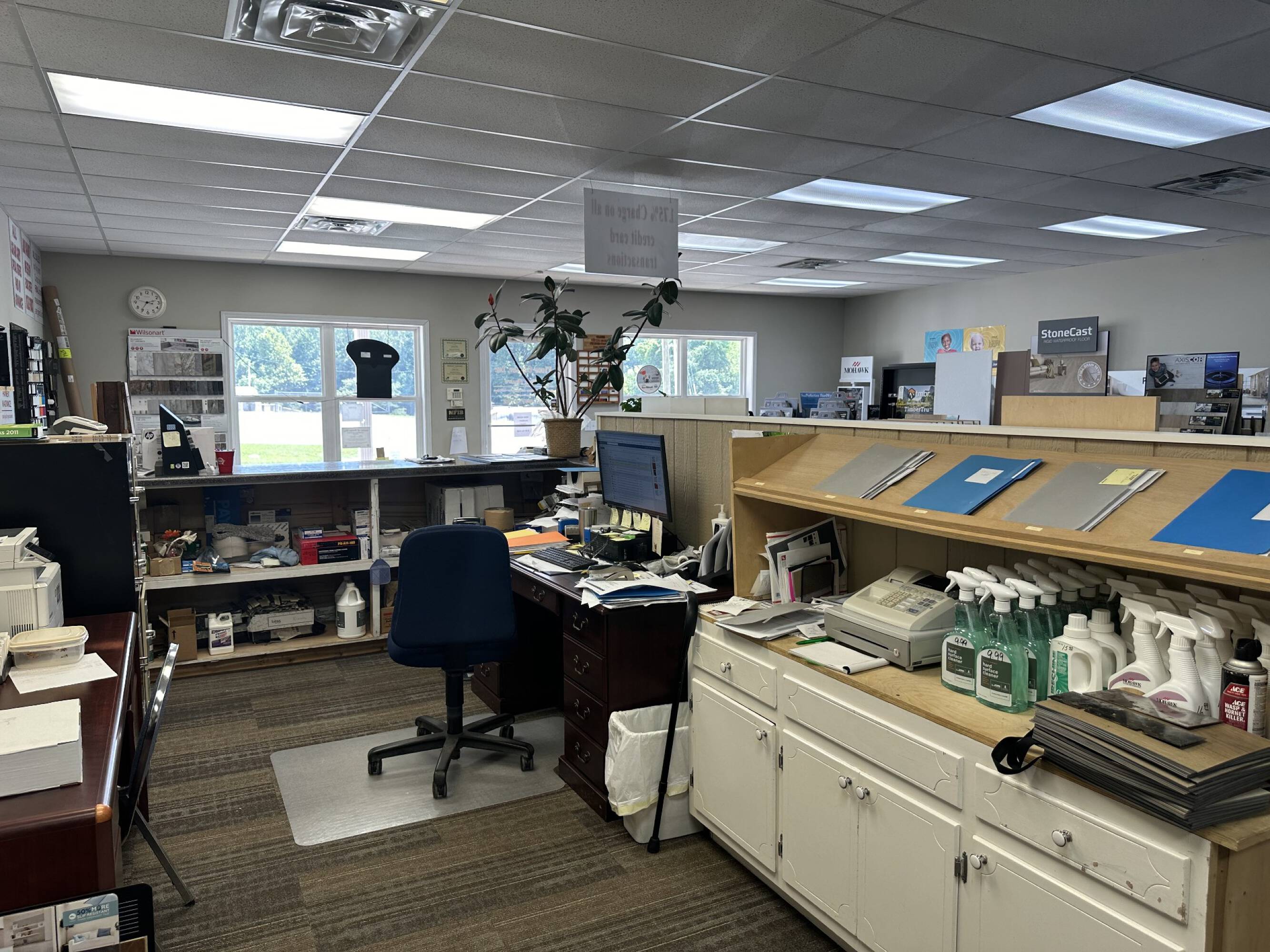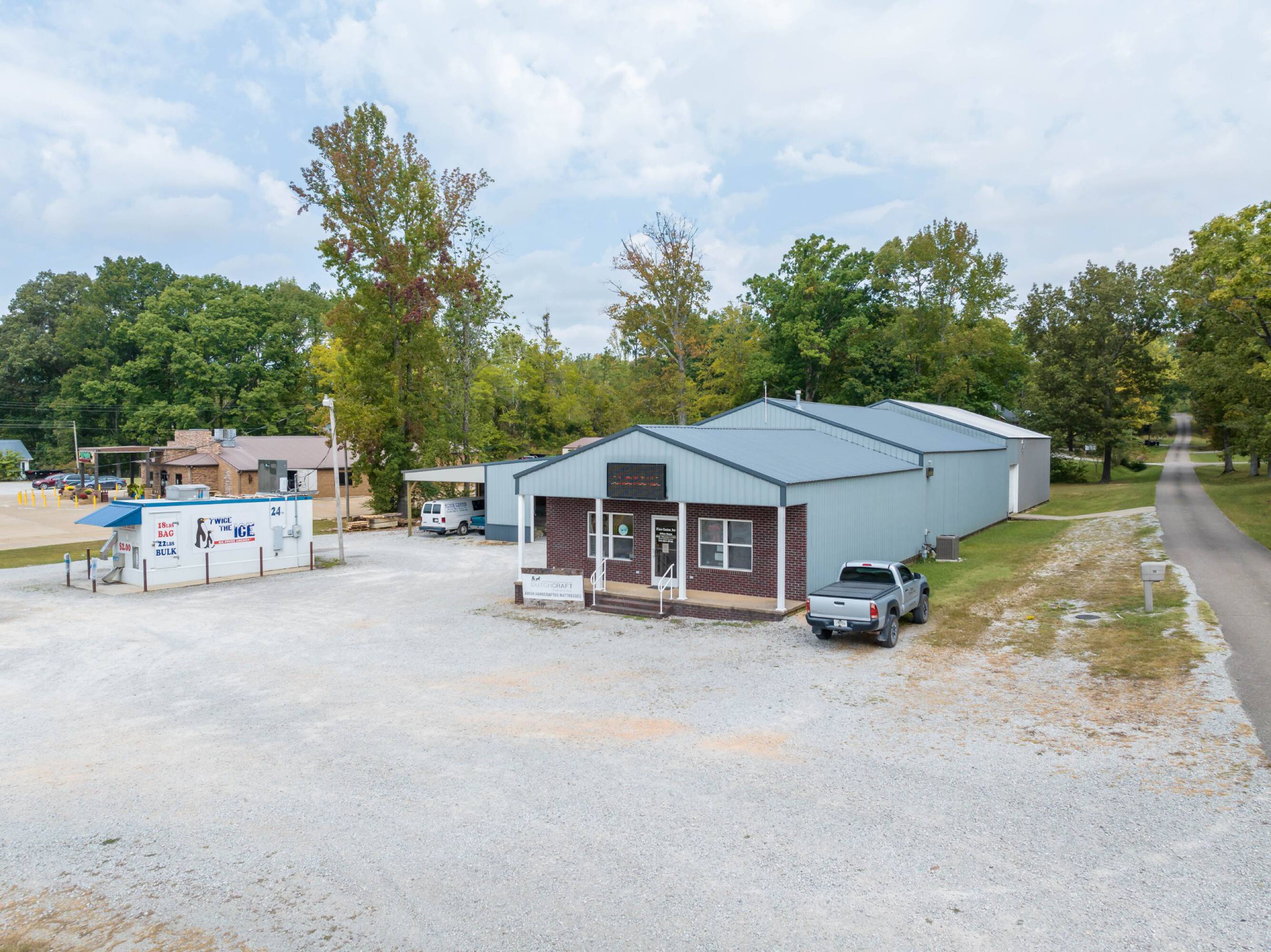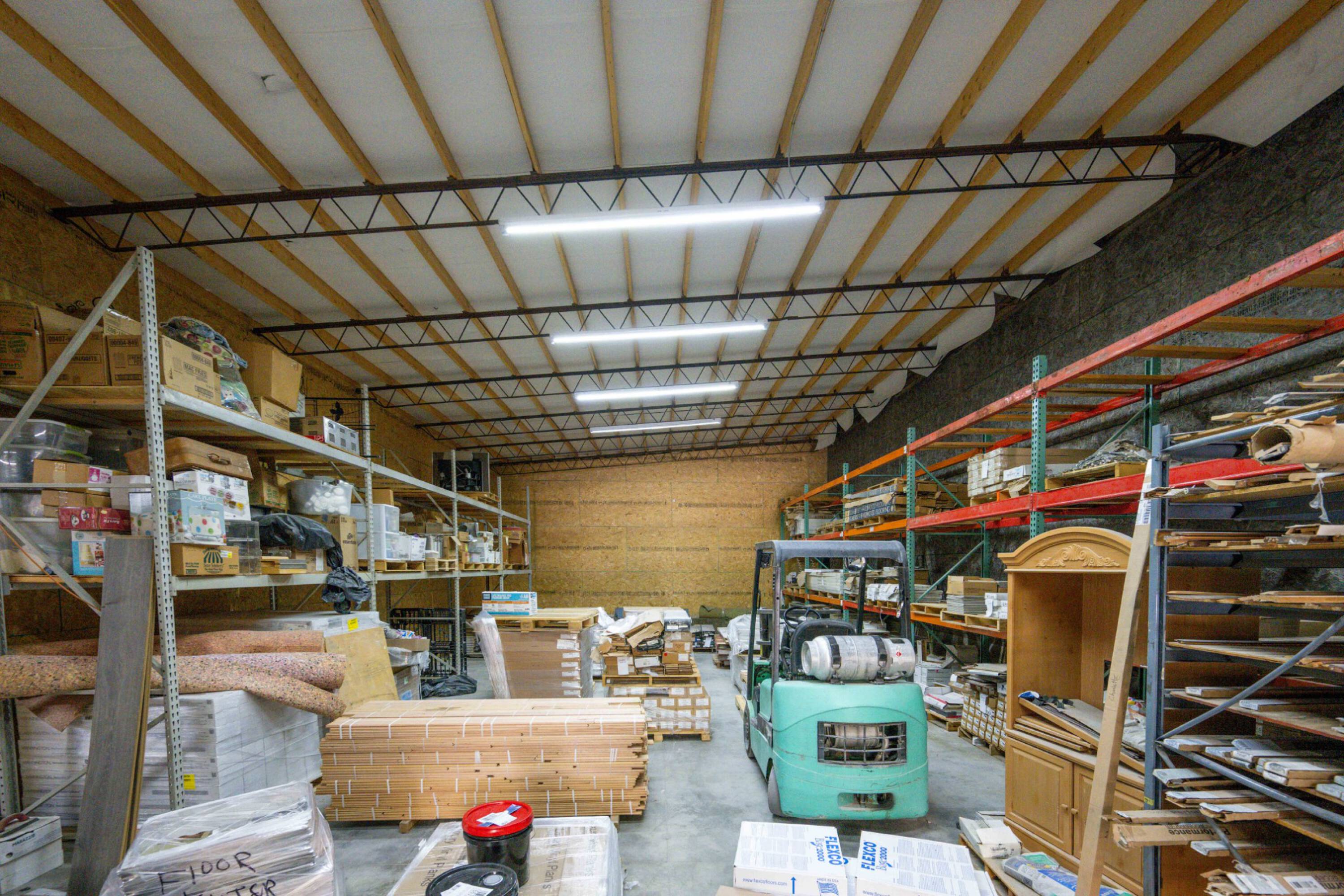 Spacious commercial building with retail and warehouse space available.