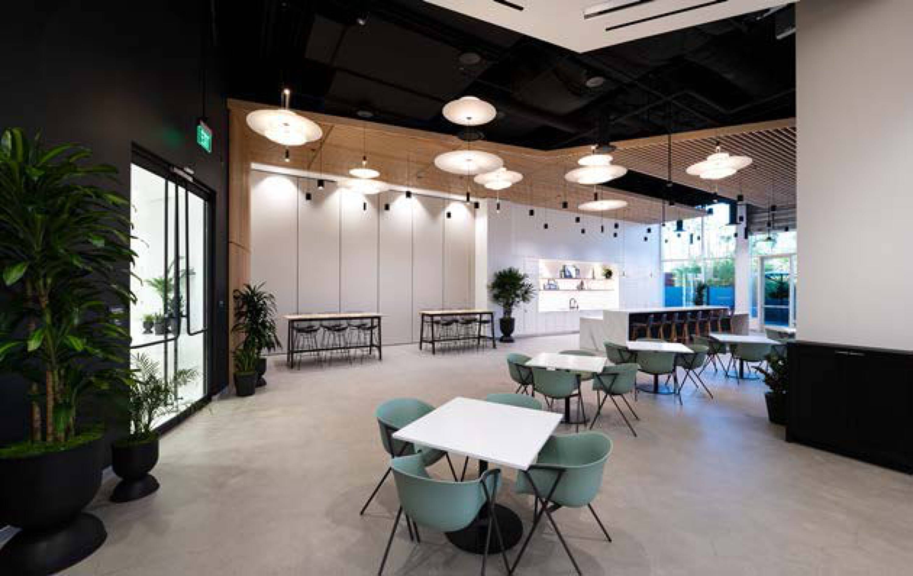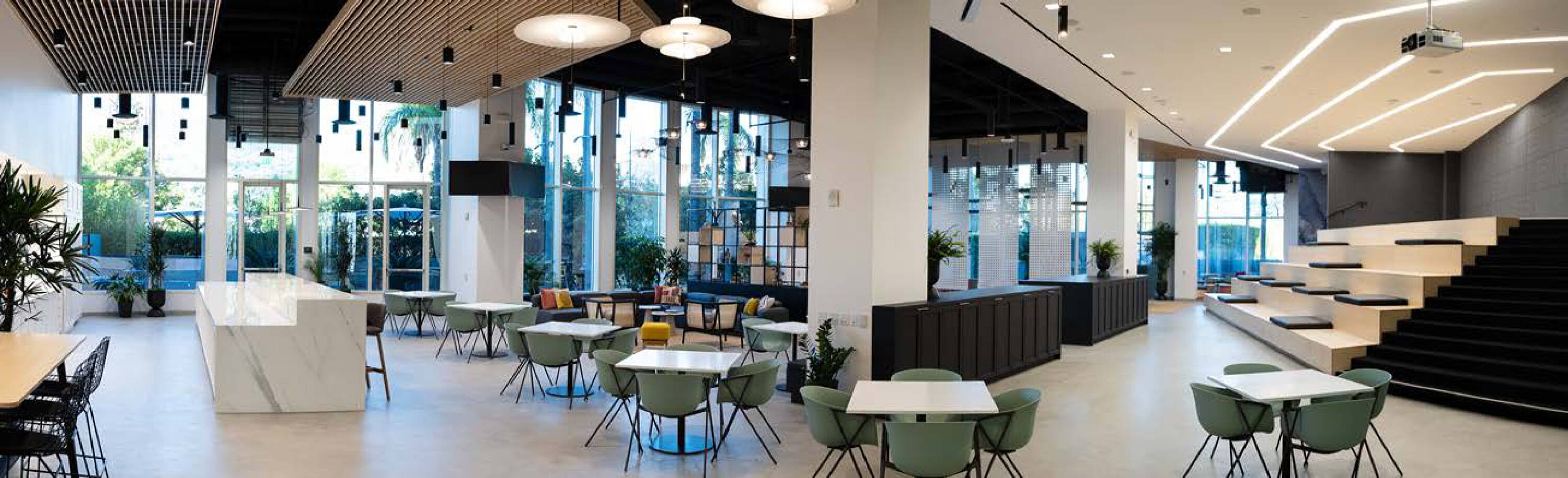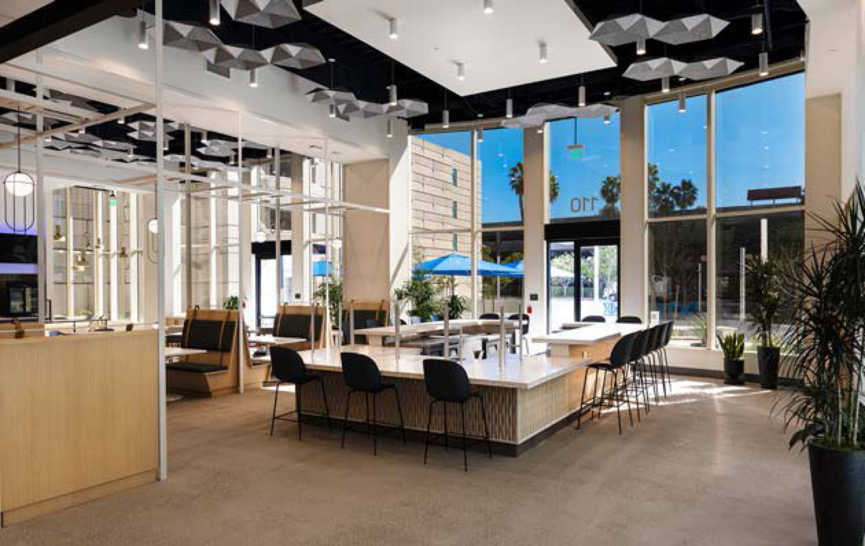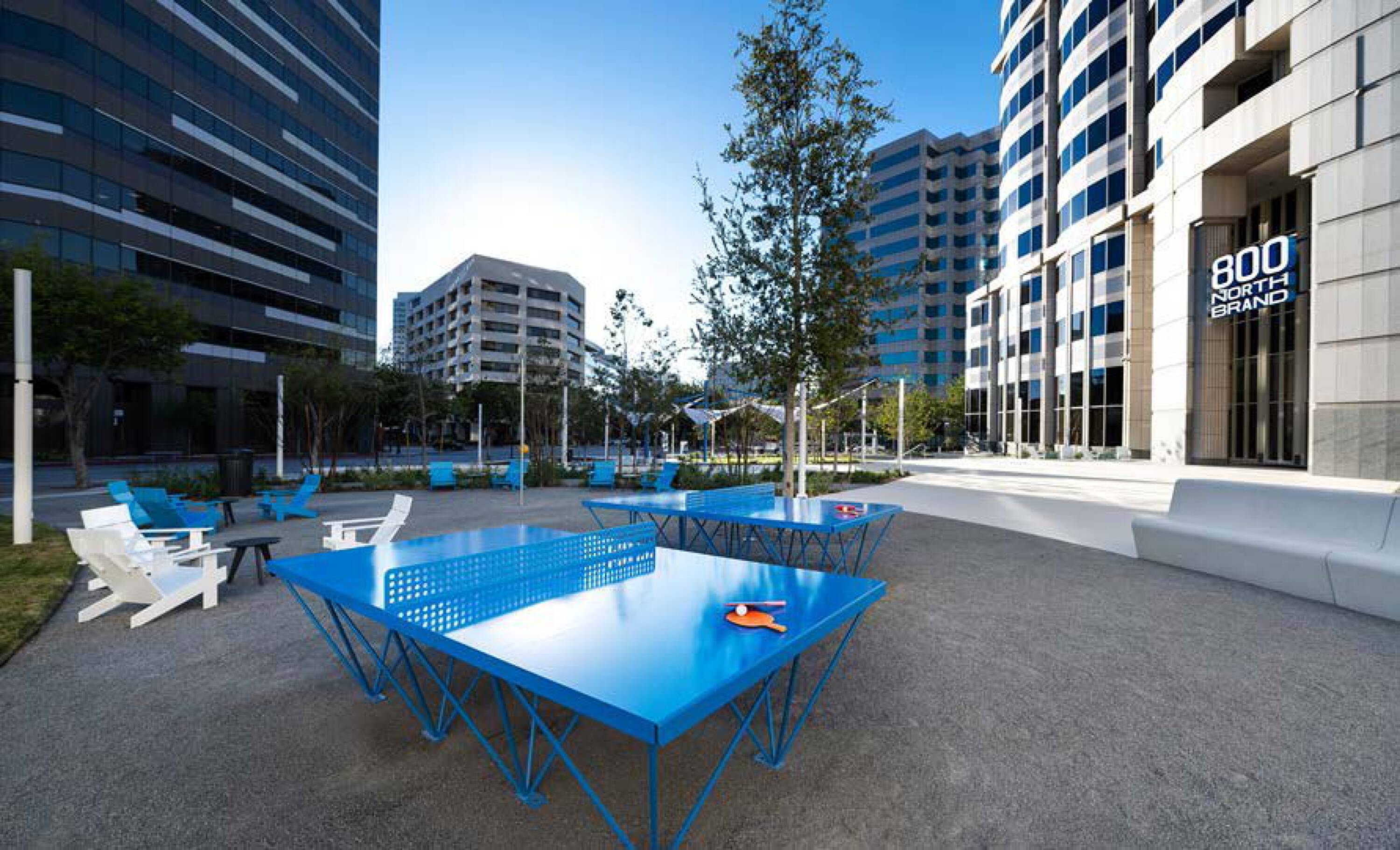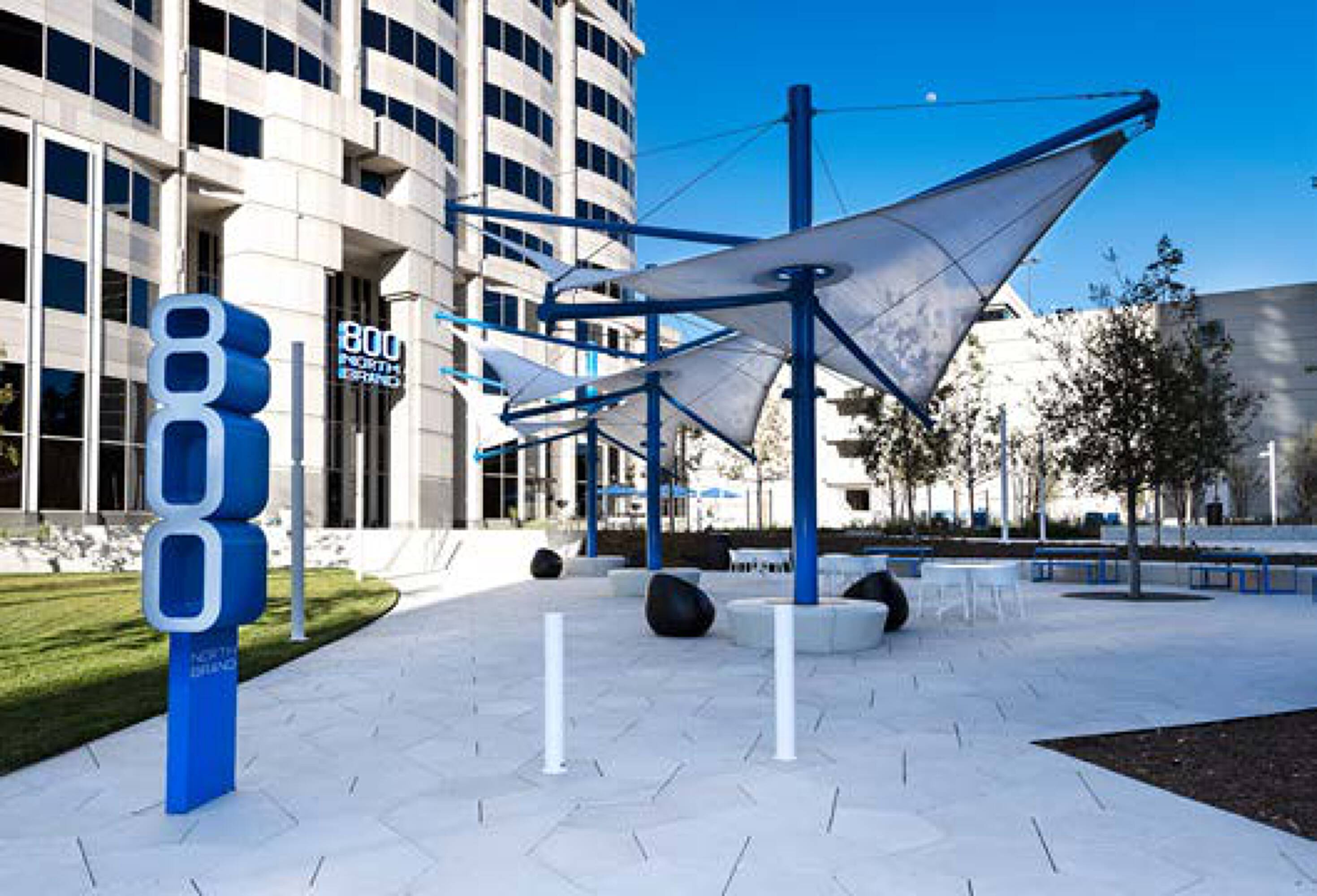 Newly renovated office building with modern amenities and outdoor spaces.