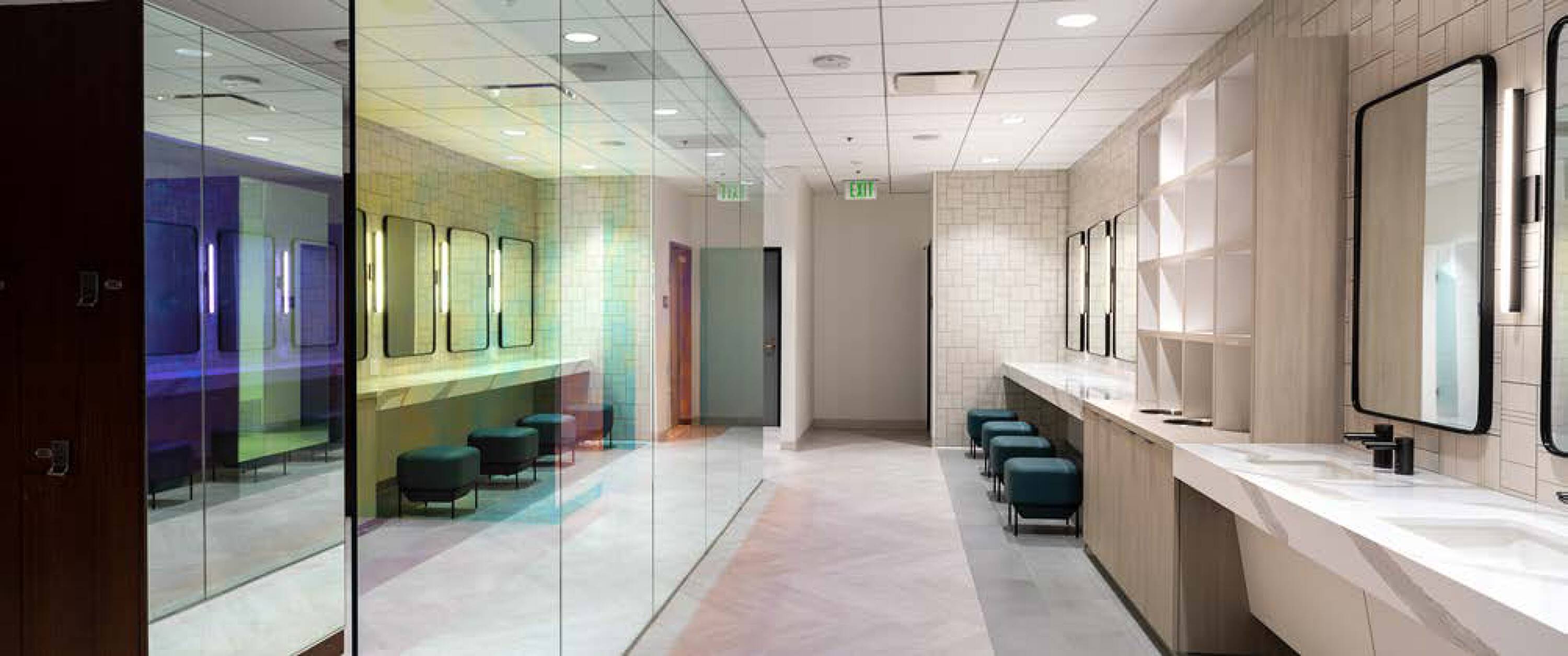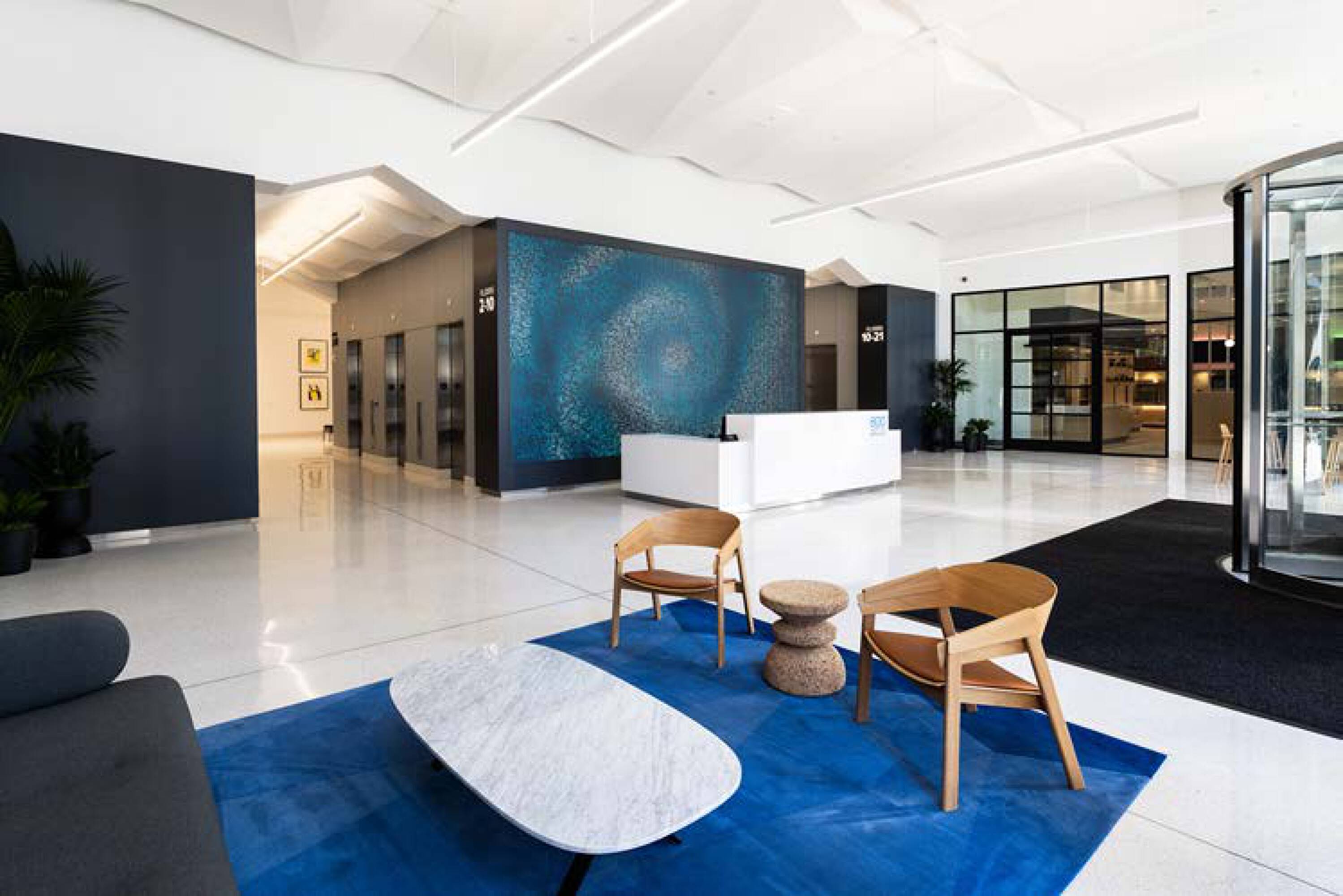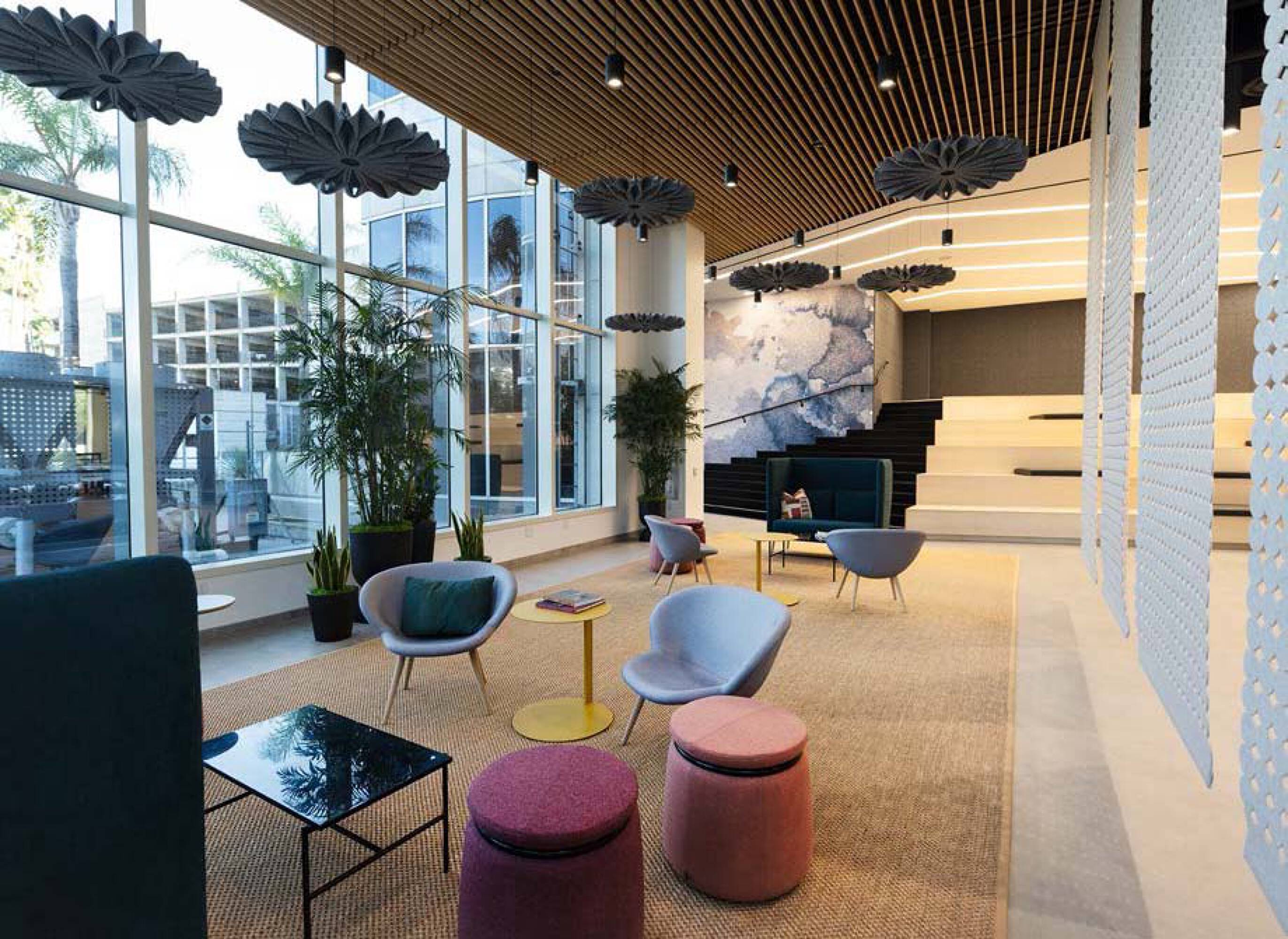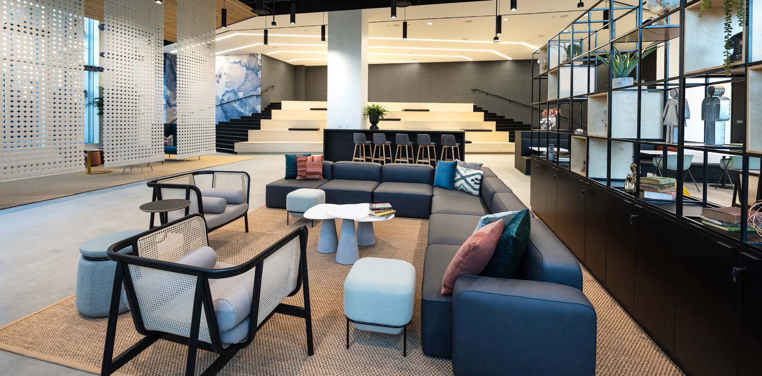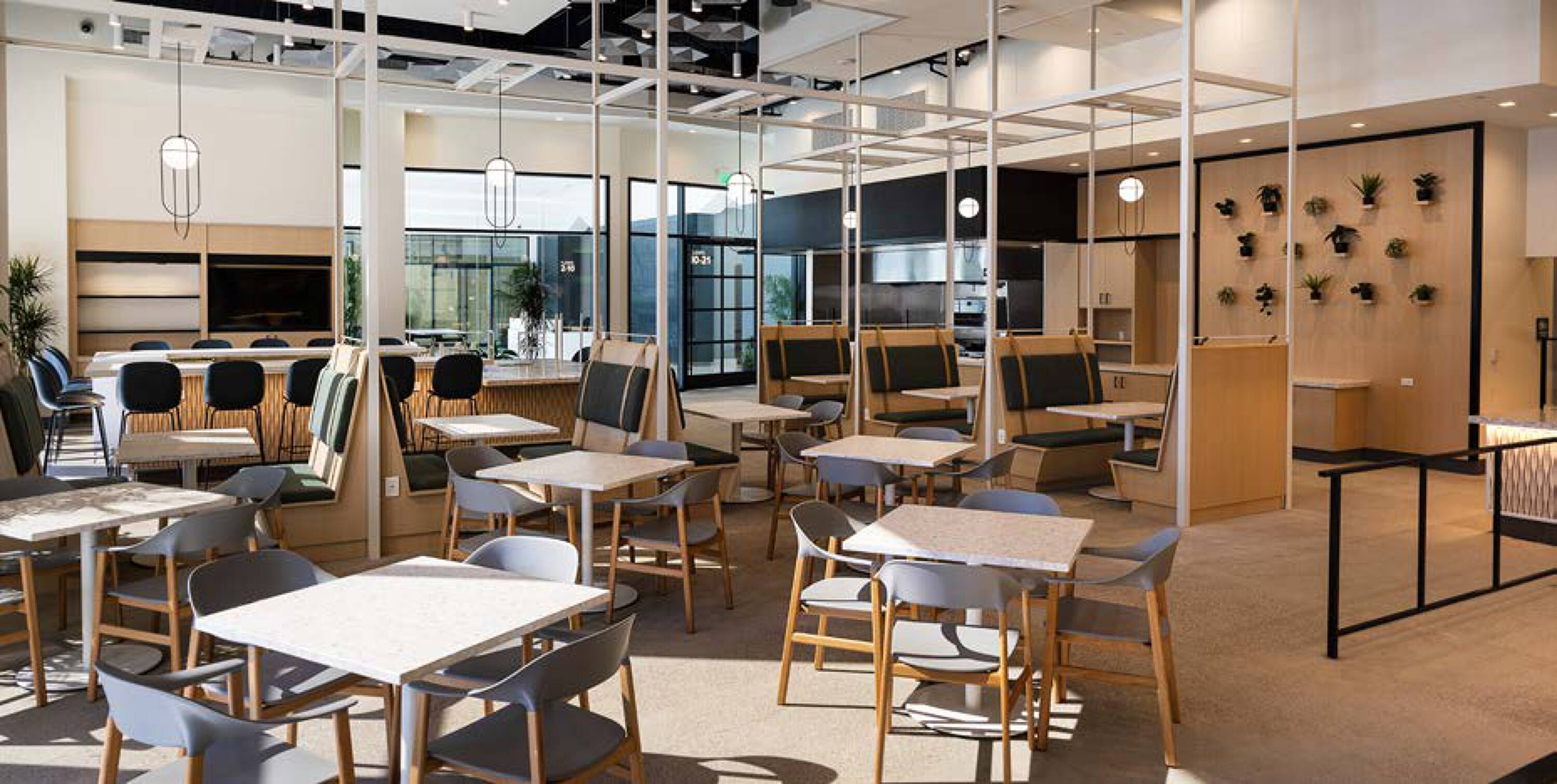 Newly renovated office building with modern amenities and outdoor spaces.
