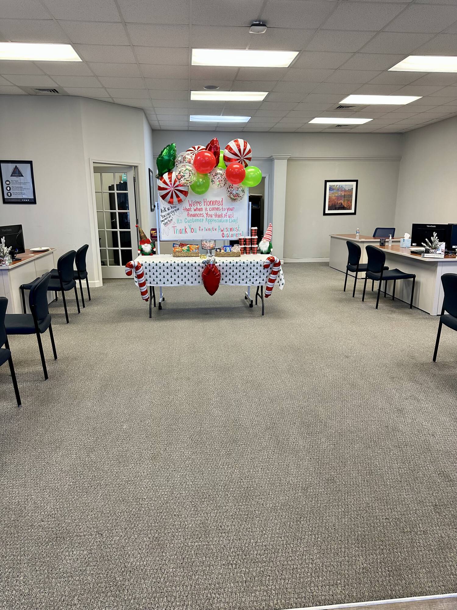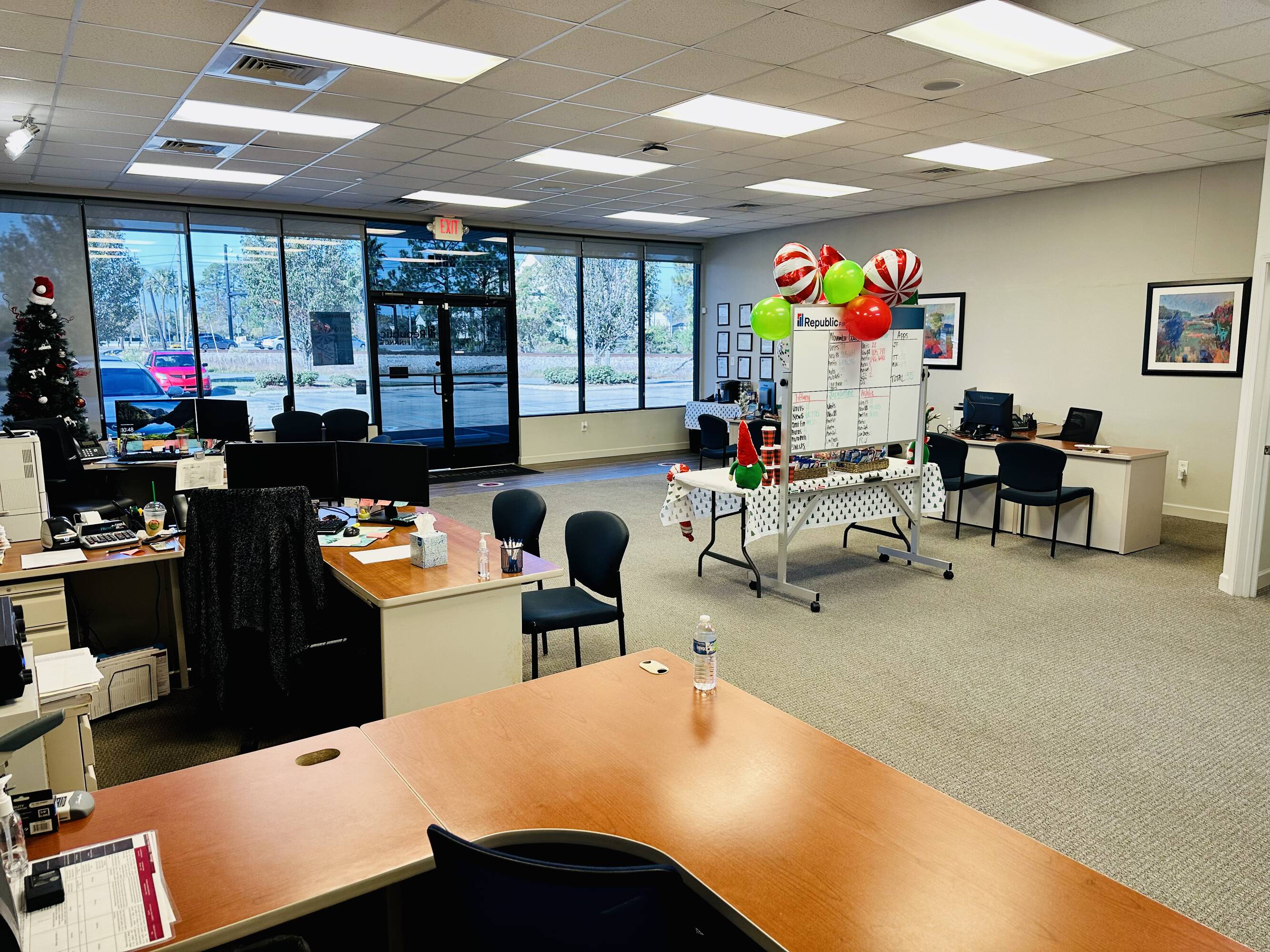 Open office space in a multi-tenant building with great visibility.
