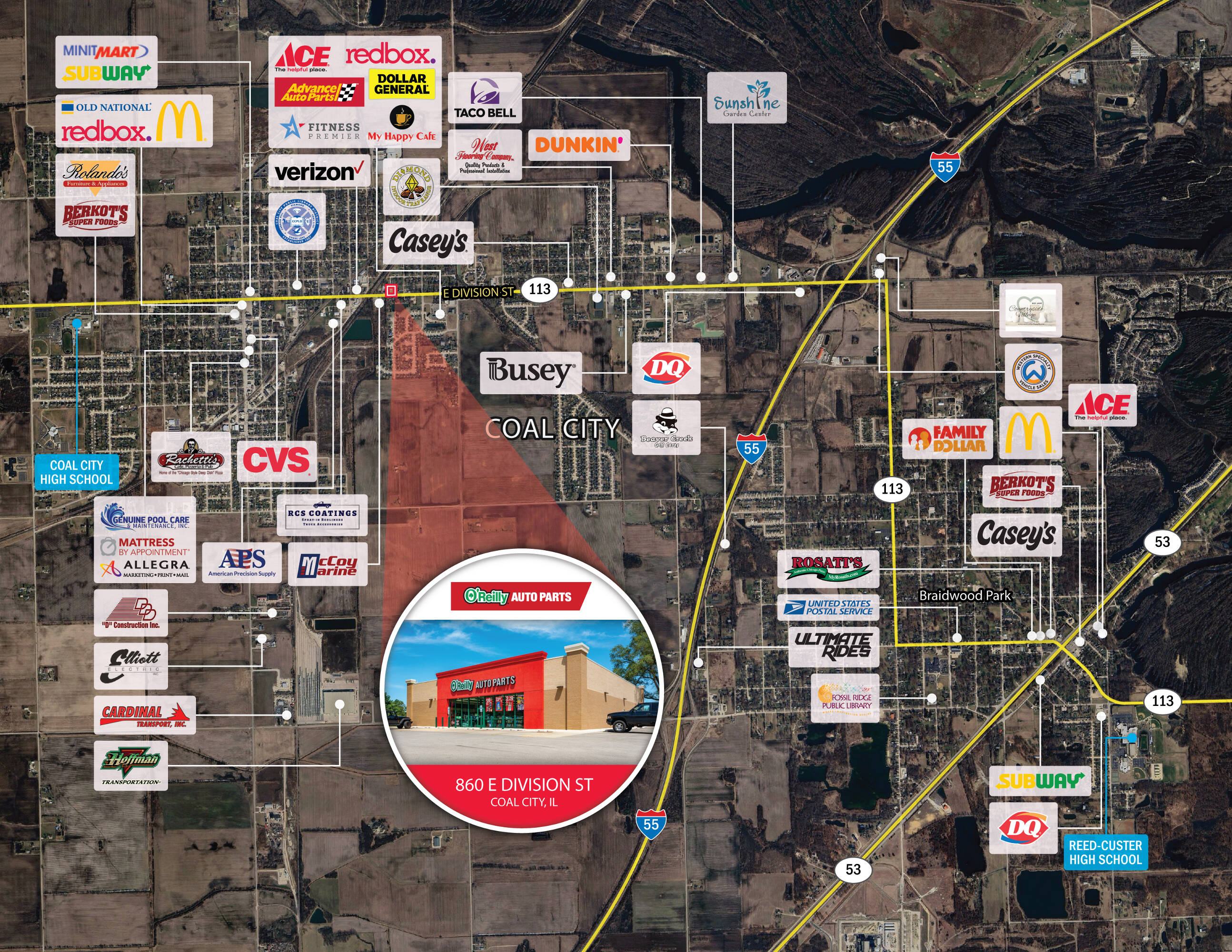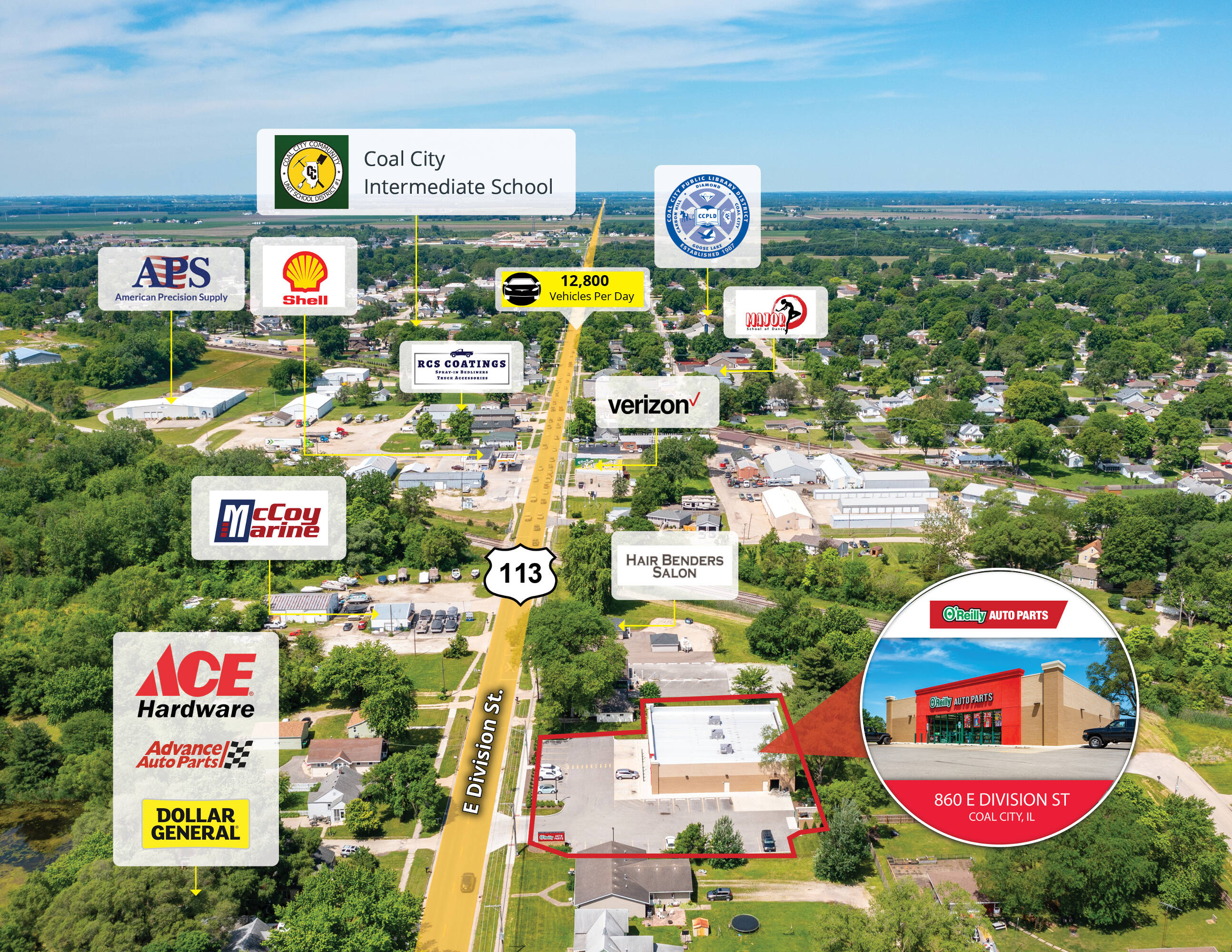 Net leased O'Reilly Auto Parts in Coal City, IL.