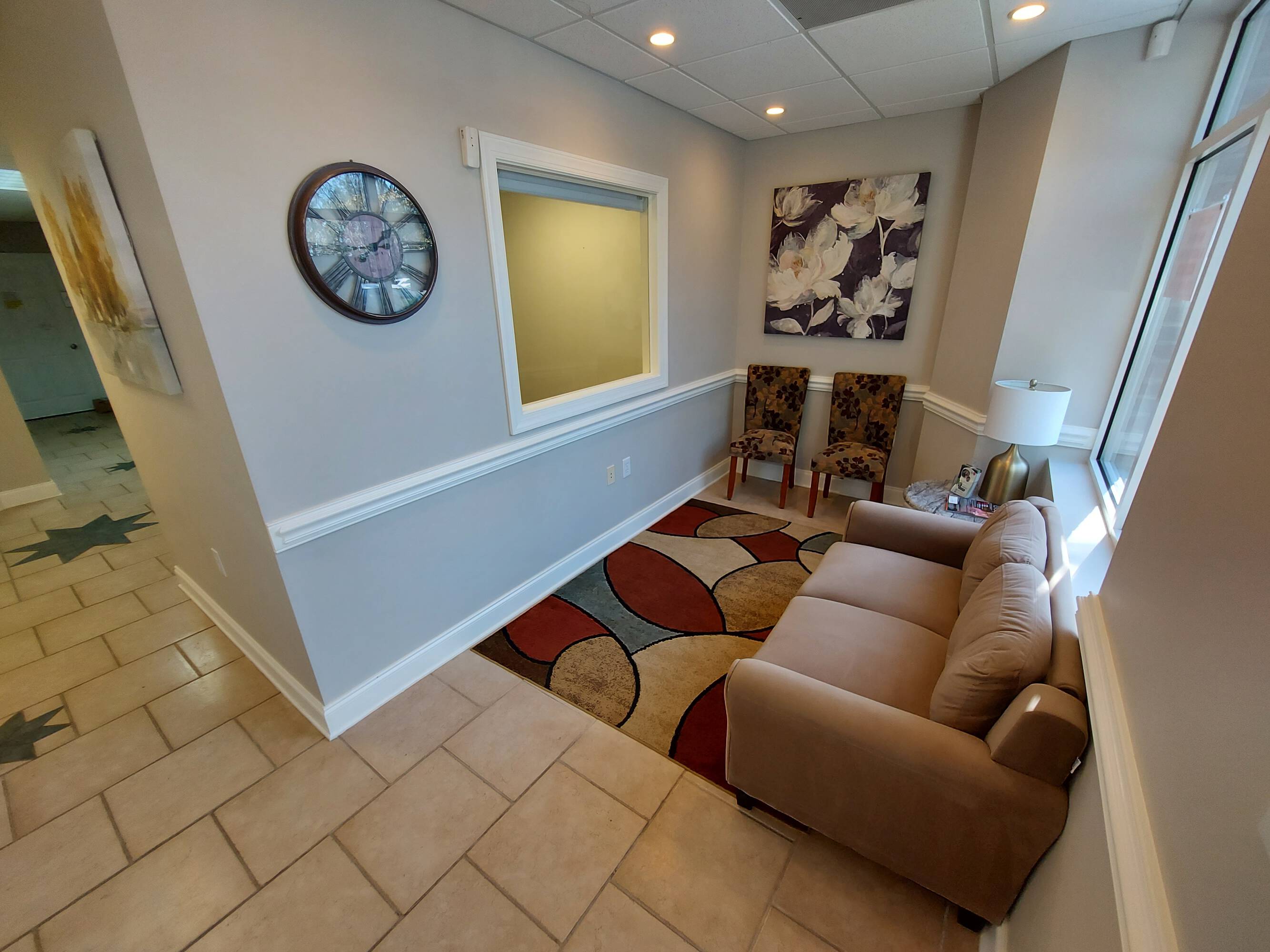 Executive offices in Wake Forest, North Carolina, offer private workspace with electric, water, Wi-Fi, and TICAM included. The location is convenient to Capital Boulevard (US-1) and Falls of Neuse Road, with a variety of nearby restaurants and shopping. The property provides a professional setting and is suitable for short-term leases. One of six offices remains available for lease individually. Office D is available now for $850/month.