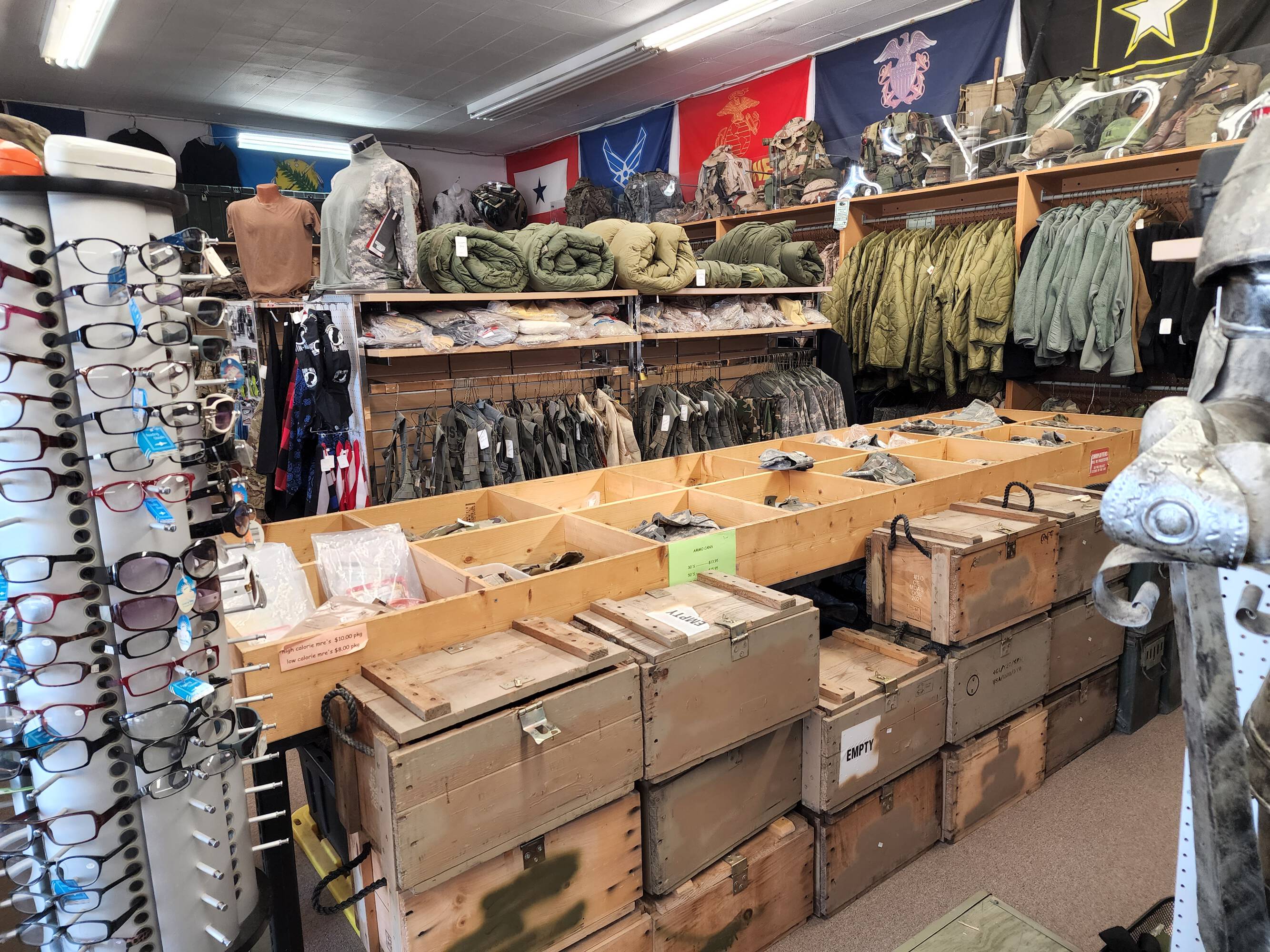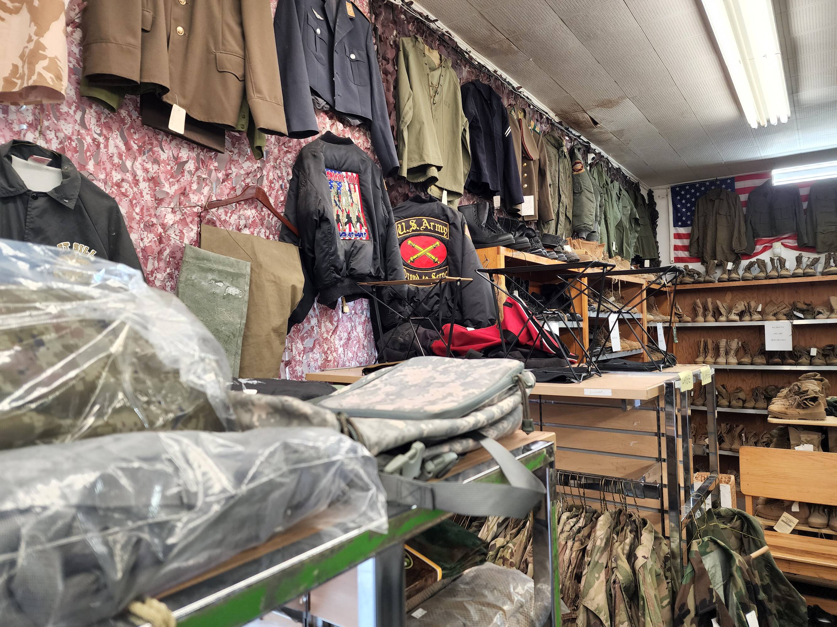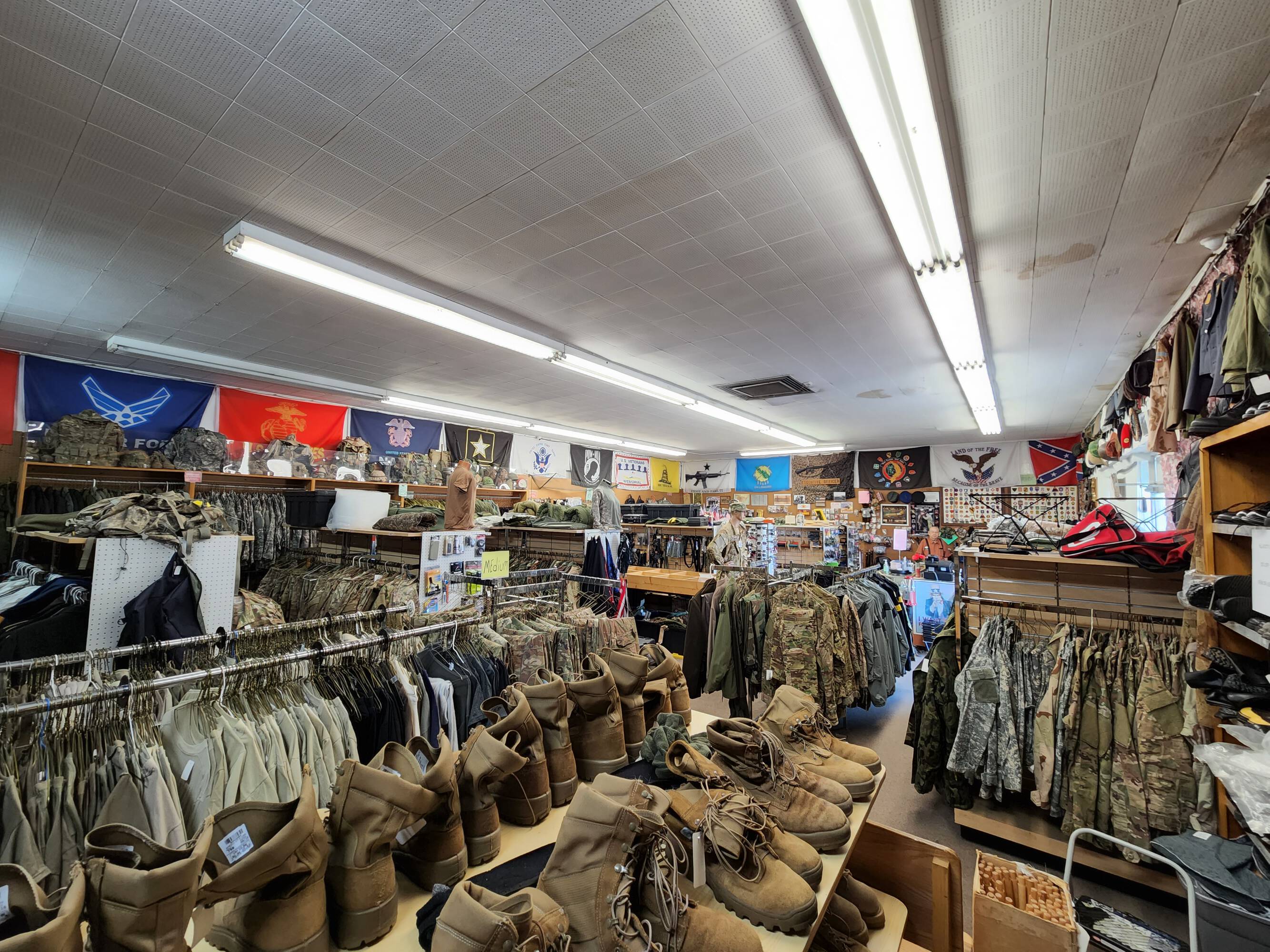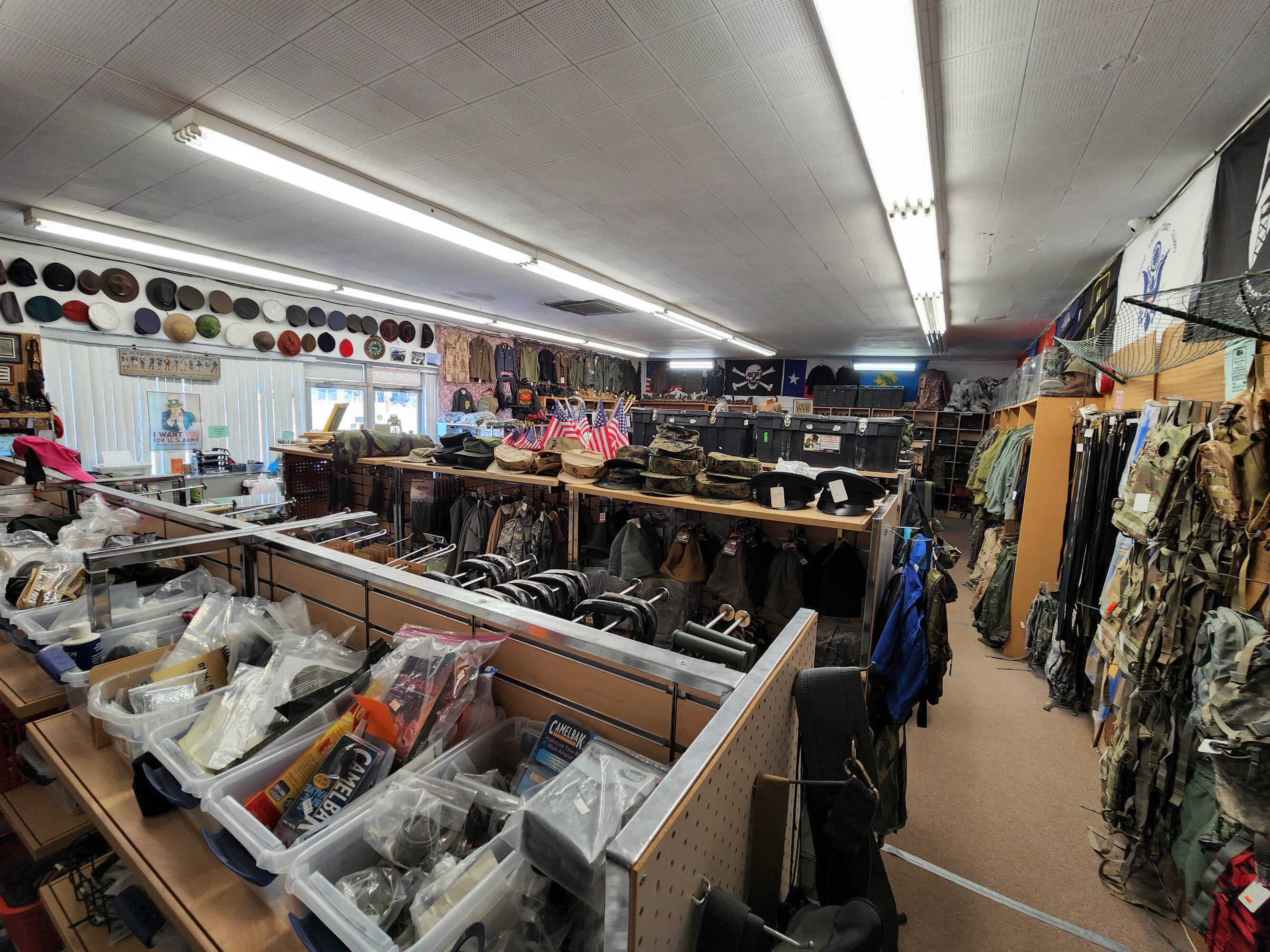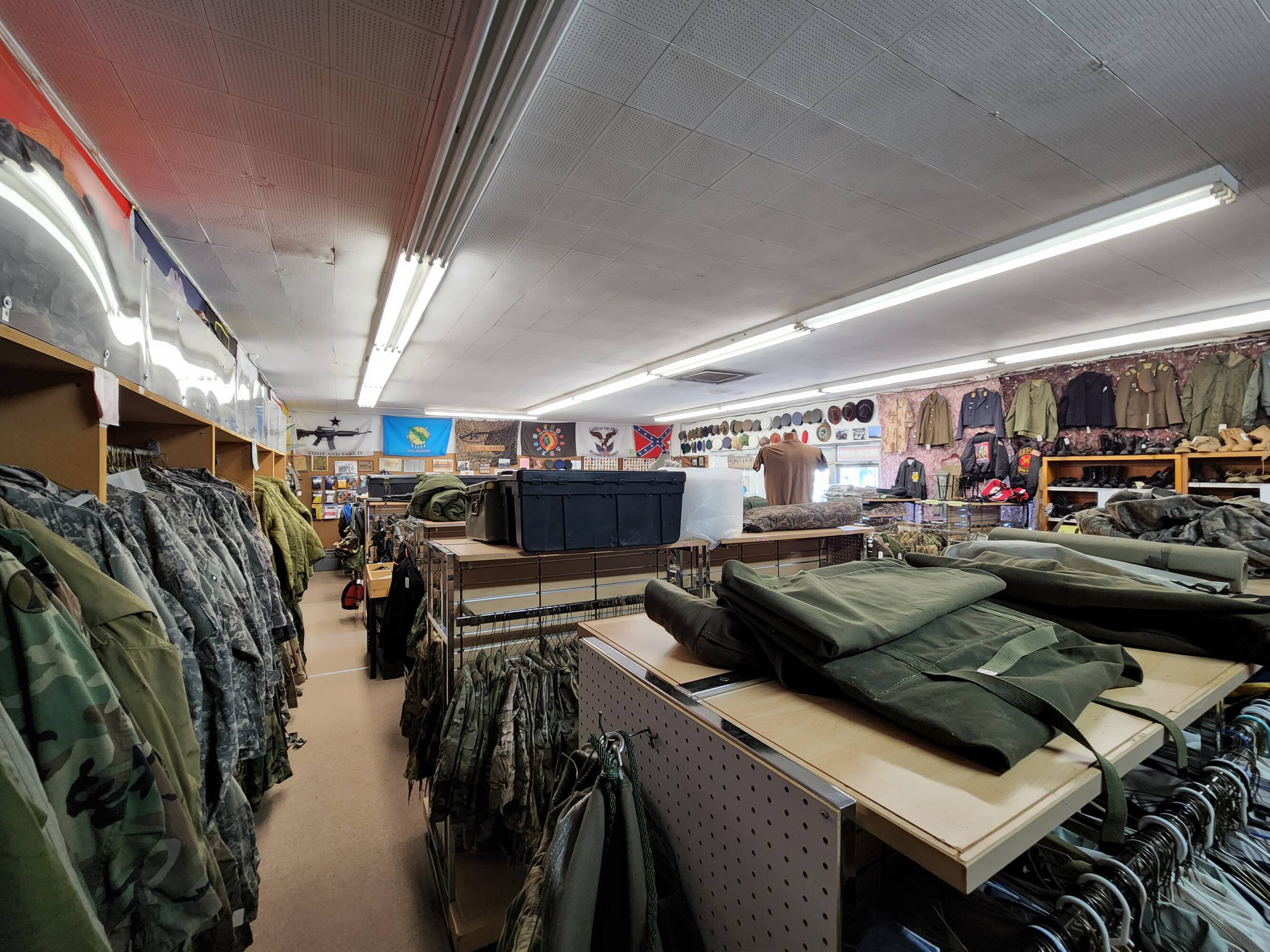 Long-standing retail space offering military surplus and gear.