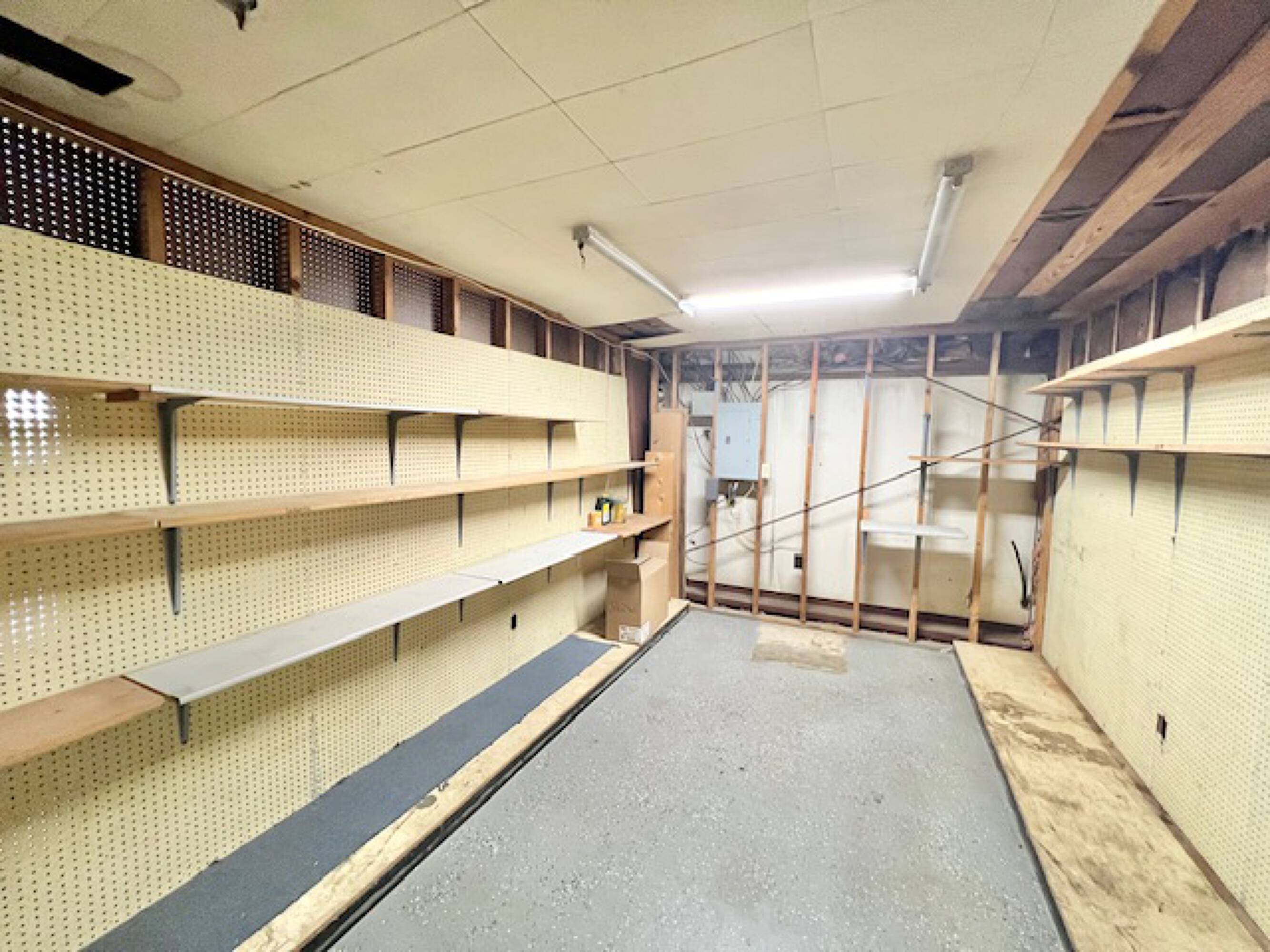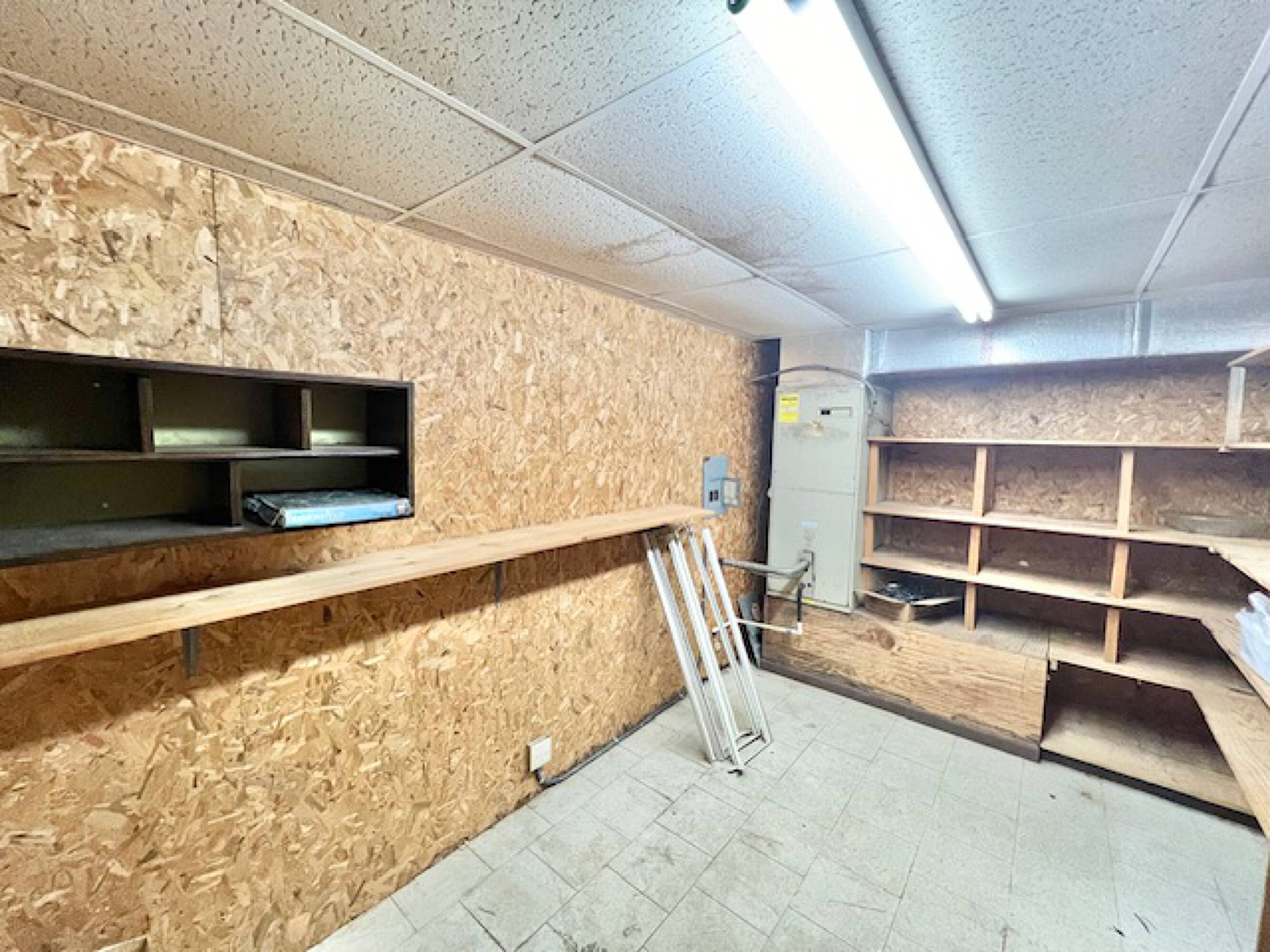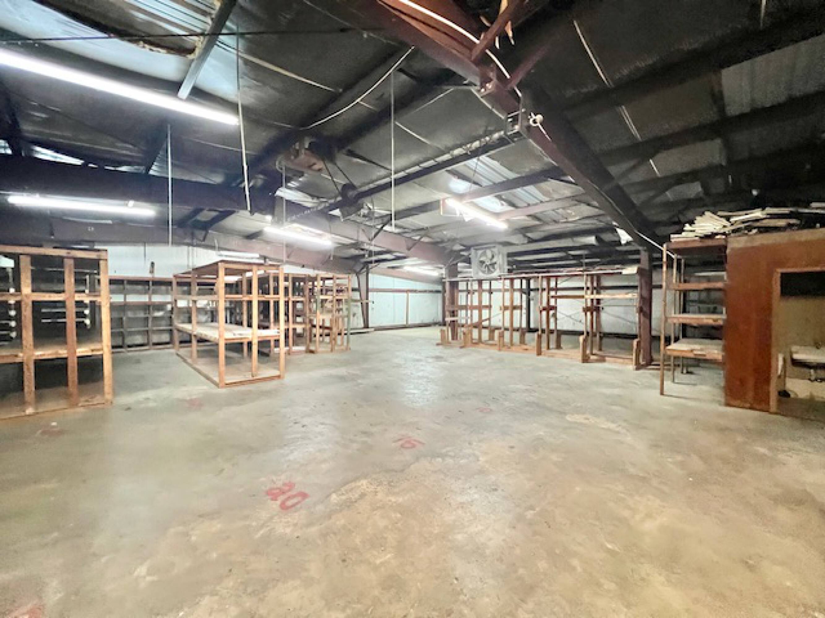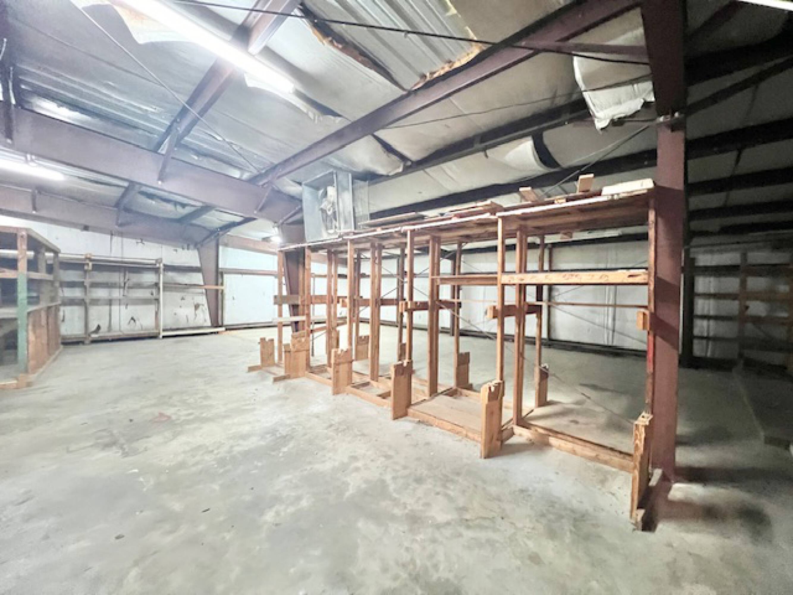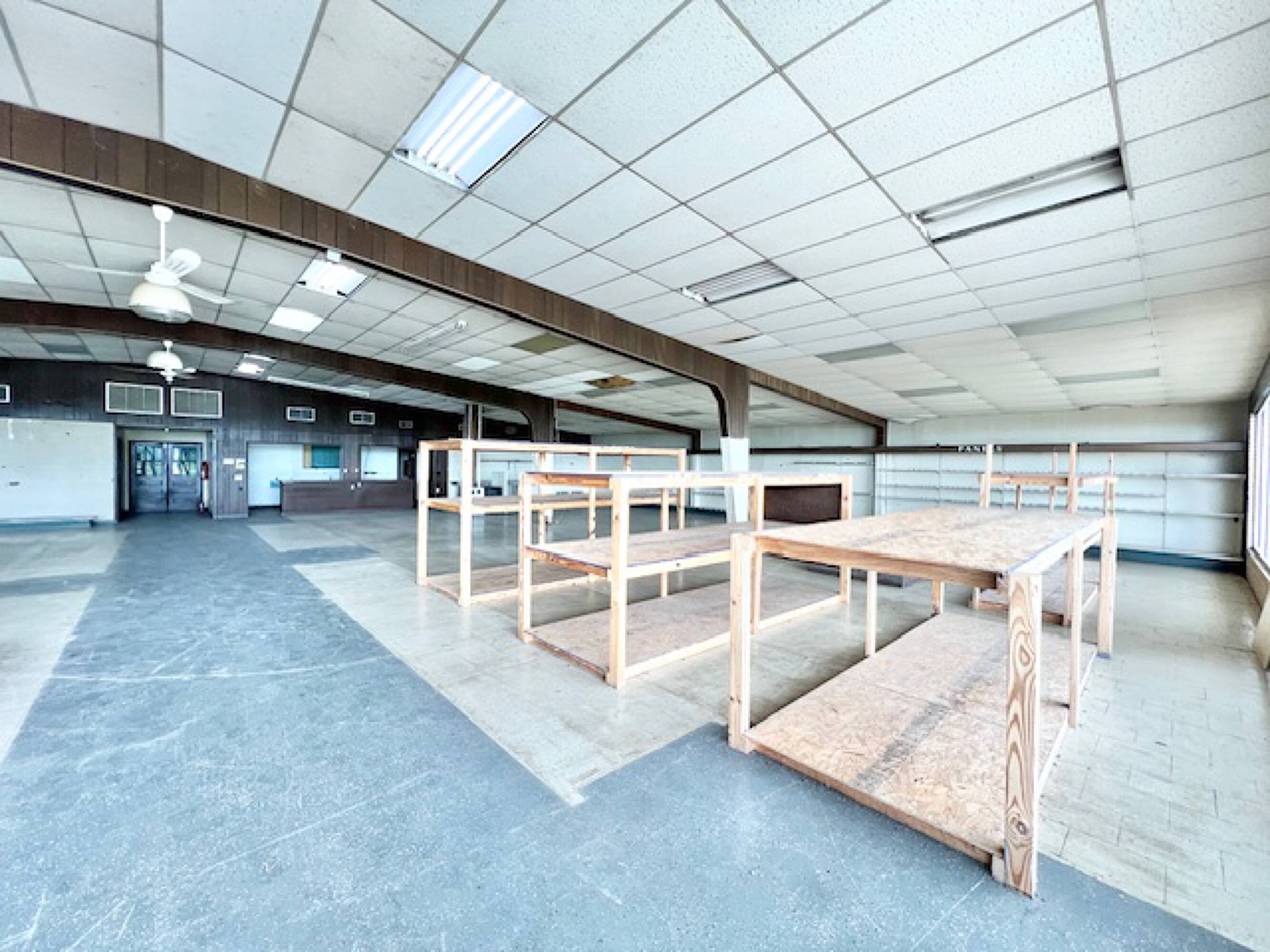Well-established commercial building with high ceilings and ample parking.