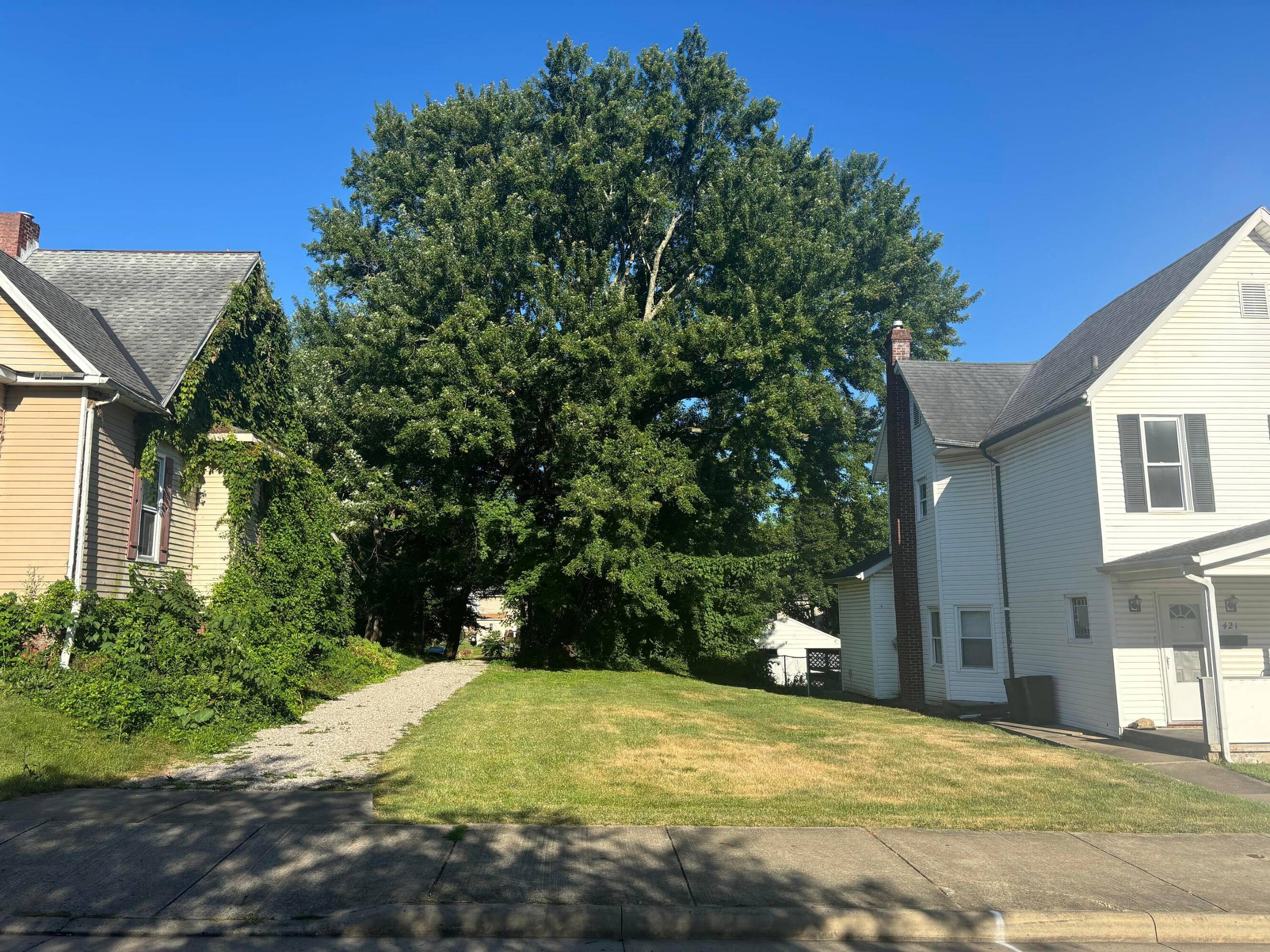 Land available in Cambridge, Ohio with heavy vegetation.