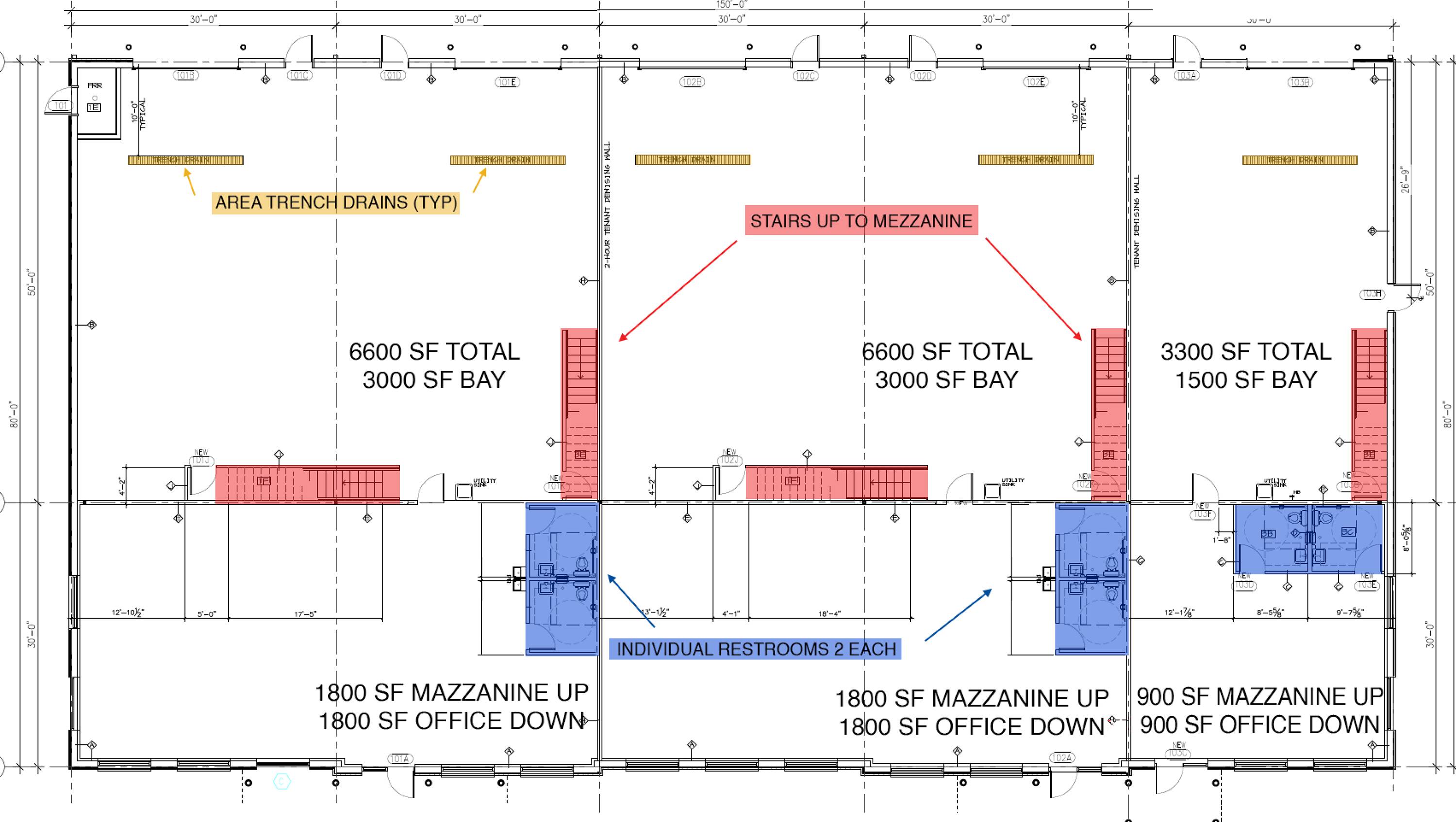 • 6600 SF total with 1800 sf office space, 1800 SF Mezzanine and 3000 SF of Bay...