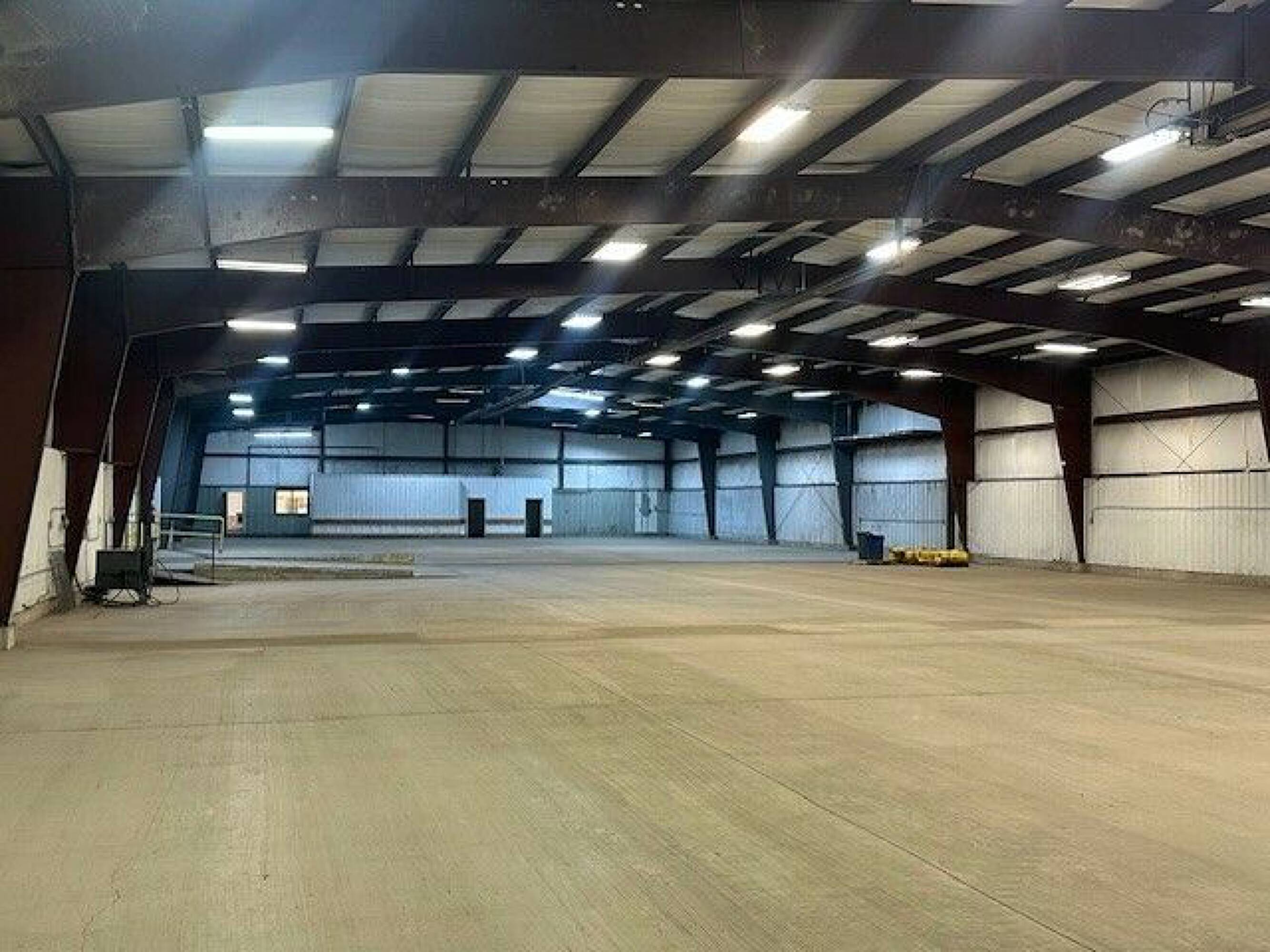 Large warehouse featuring loading docks and convenient highway access.