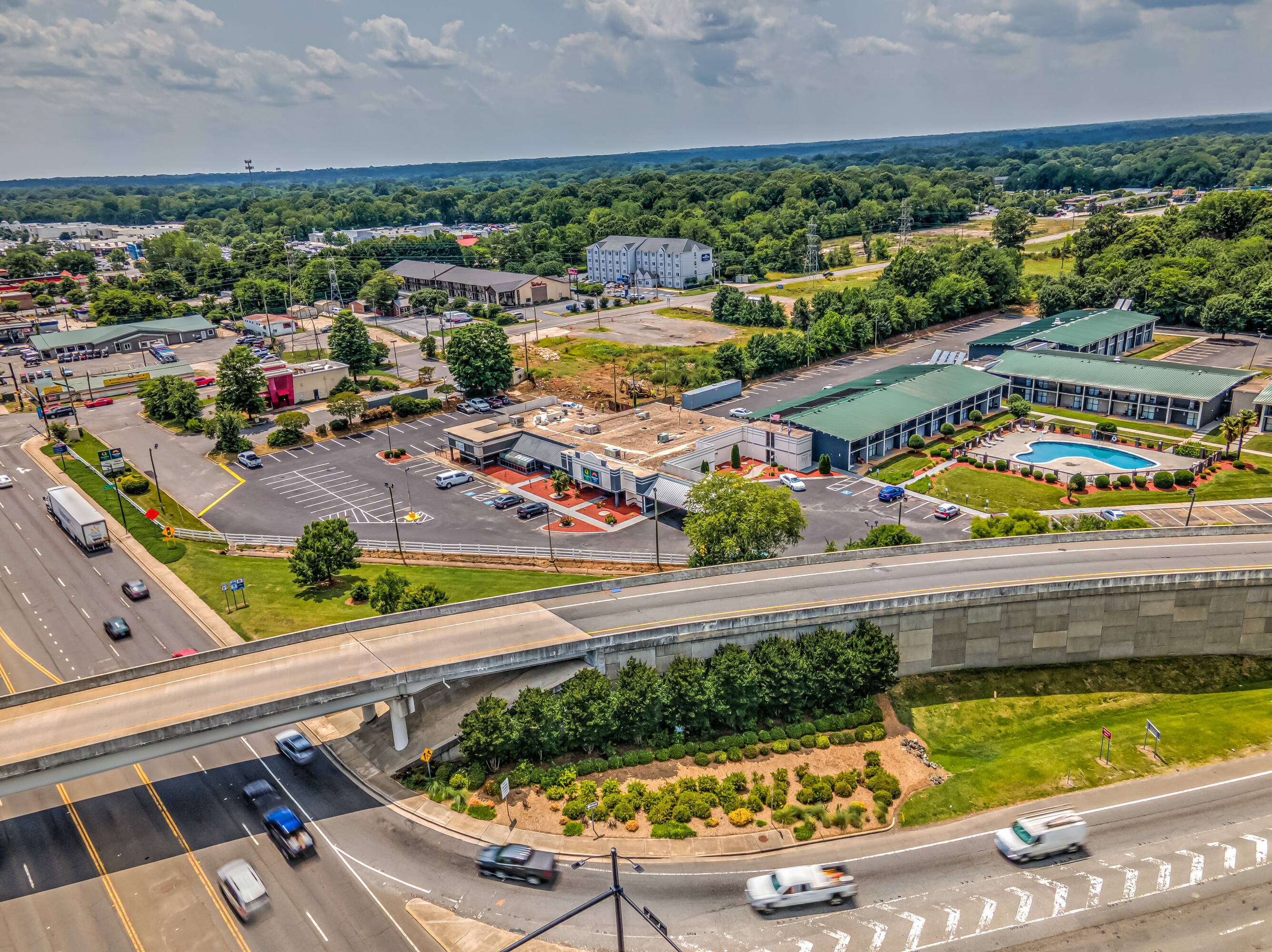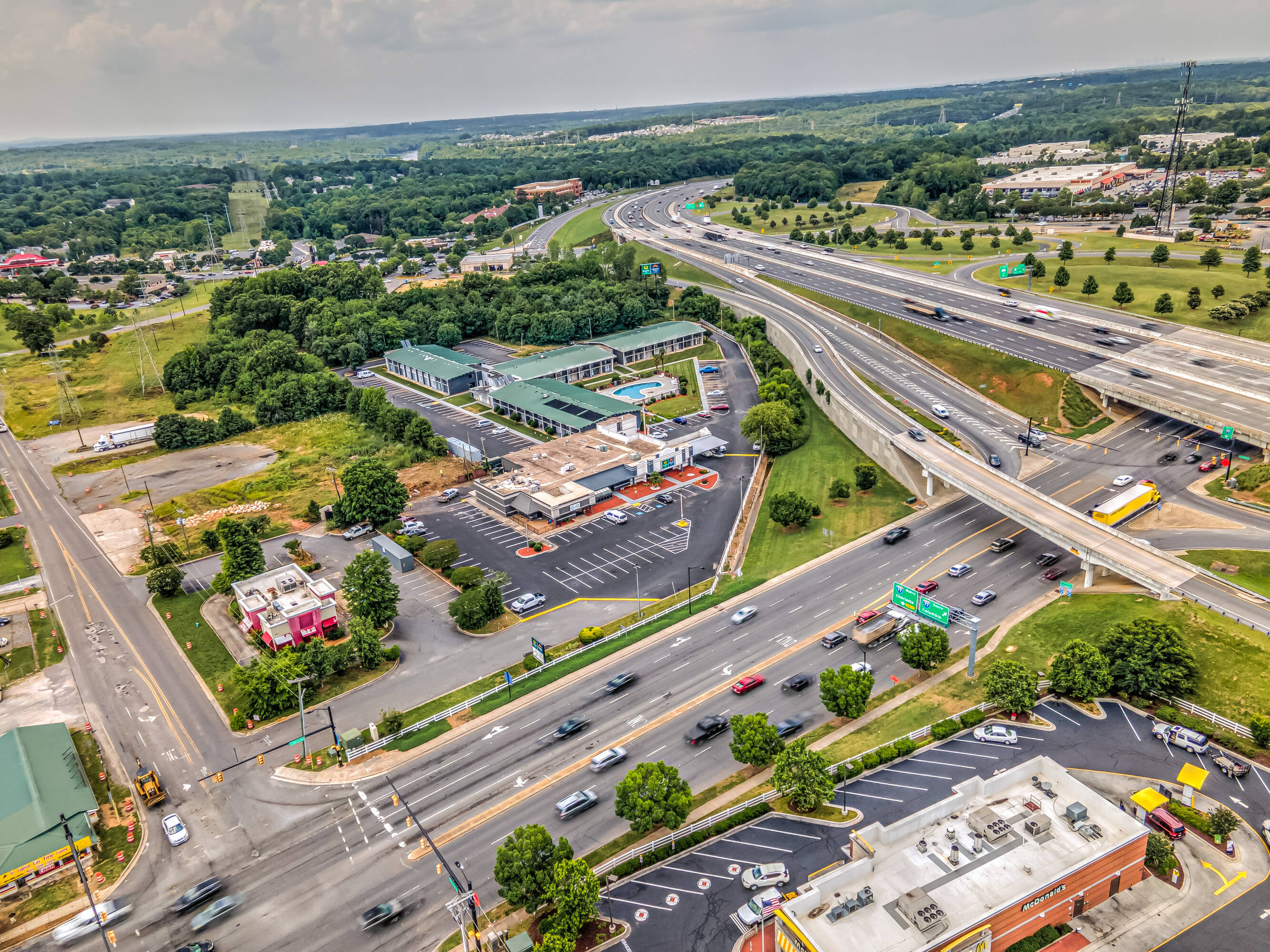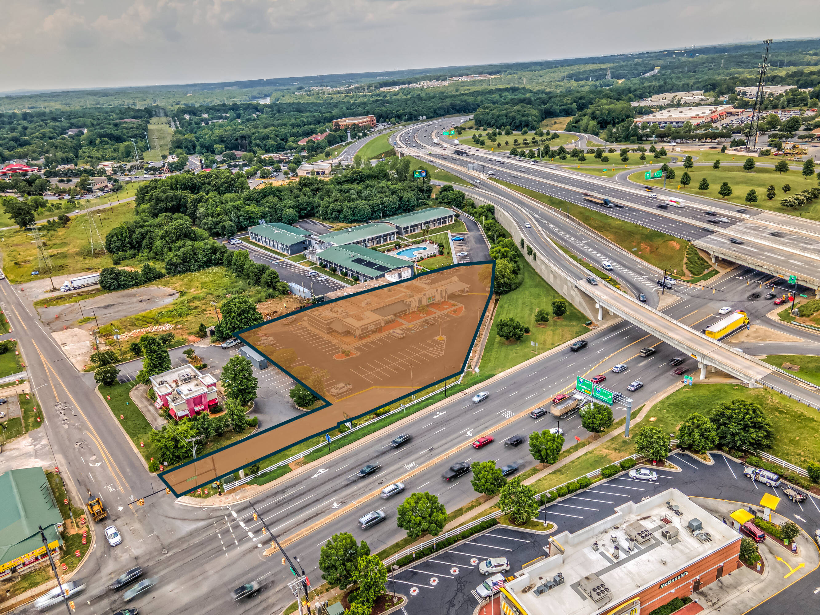 This \u00b11.65-acre development site is available for sale or ground lease in Rock Hill, SC. The property, a portion of the parcel occupied by the Quality Inn & Suites, includes the front part of the hotel, which currently contains a restaurant space. The property is available in whole or in part. The buyer is expected to cover the demolition costs of the restaurant. The seller is willing to work with the buyer to establish boundaries. The site benefits from full signaled access on Cherry Rd and Riverview Rd. Cherry Rd sees over 41,000 vehicles per day (VPD), and Riverview Rd connects to the I-77 exit off Celanese Rd, which also sees over 41,000 VPD. The location is right off I-77, which has over 71,000 VPD. Zoned General Commercial, the city of Rock Hill is phasing out this zoning to be replaced with Community Commercial. This property is located on the southwest corner of Cherry Rd and Riverview Rd of I-77 Exit 82. The location has full motion access to over 41,200 VPD on Cherry Rd and over 71,000 VPD via I-77. Rock Hill, a suburb of Charlotte and part of their MSA, is a 30-minute drive from downtown Charlotte. The site is about 1 mile from the Catawba River, an area with recent apartment and single-family home development. The site is surrounded by retail including Publix, Home Depot, 7-11, Quick Trip, Circle K, Aldi, Lidl, Chick-fil-a, Harbor Freight Tools, Freddy's Burgers, Mcdonalds, Cookout, and Dunkin Donuts. I-77 runs through Charlotte and Columbia, SC, with Rock Hill being about an hour from Columbia.