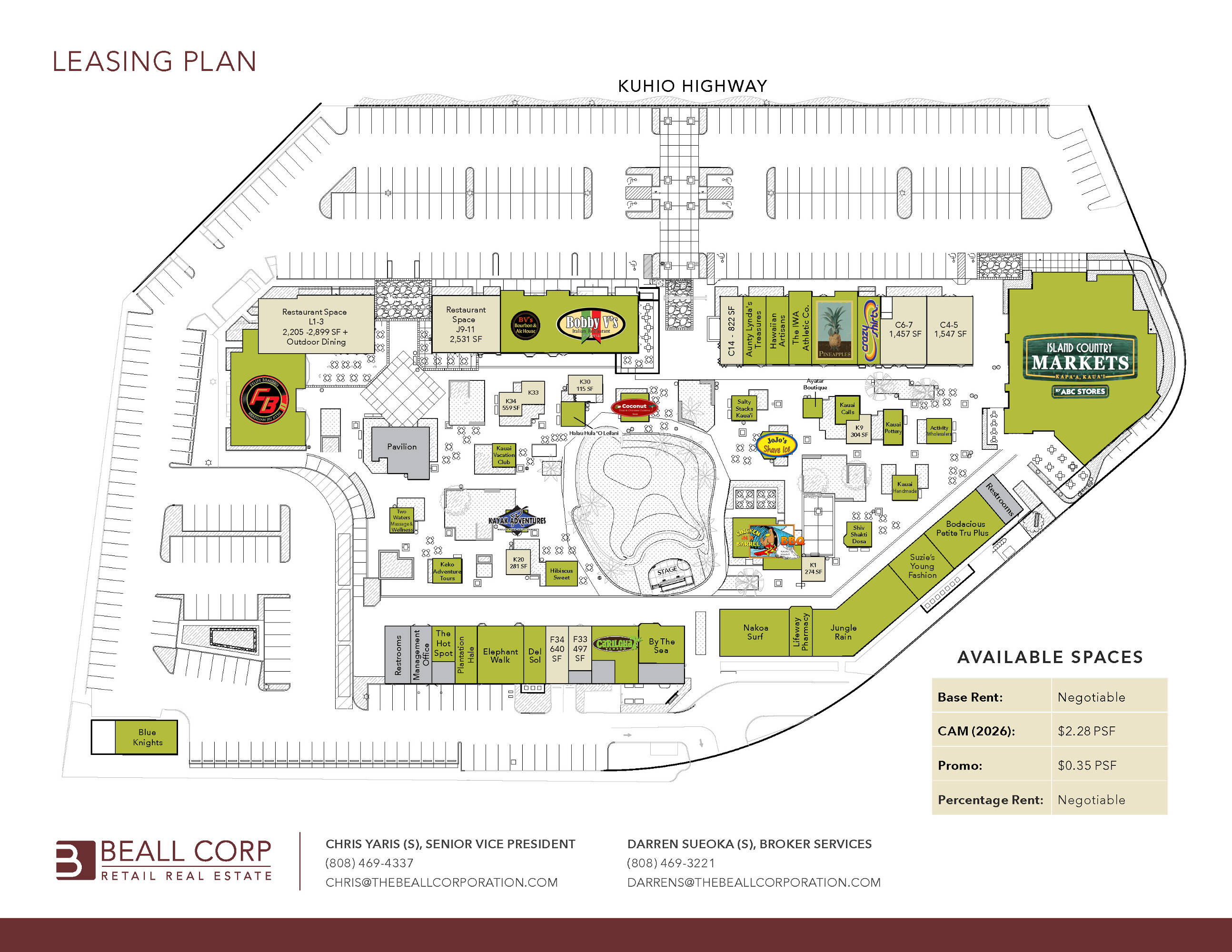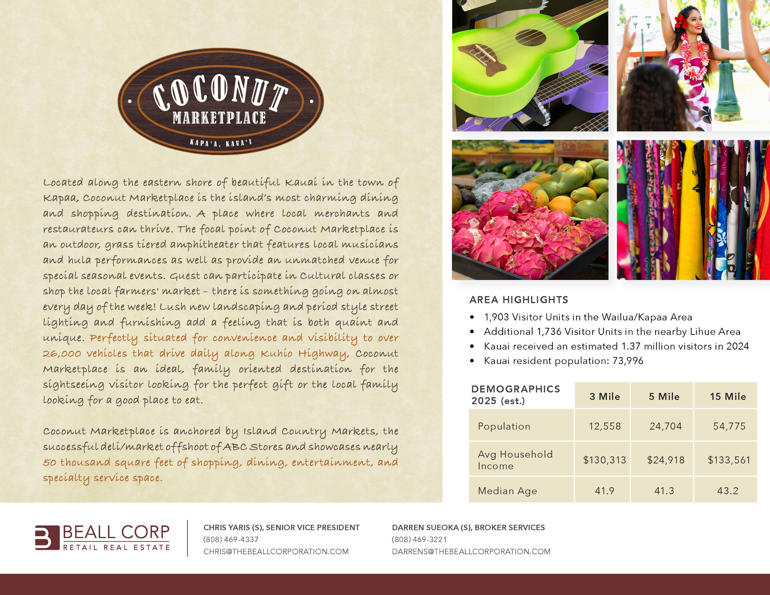 This property features: Prime location on Kaua'i's eastern shore in Kapa'a, a popular tourist destination.; Features an **outdoor amphitheater** for local music, hula performances, and seasonal events.; Offers a mix of shopping, dining, entertainment, and specialty services.