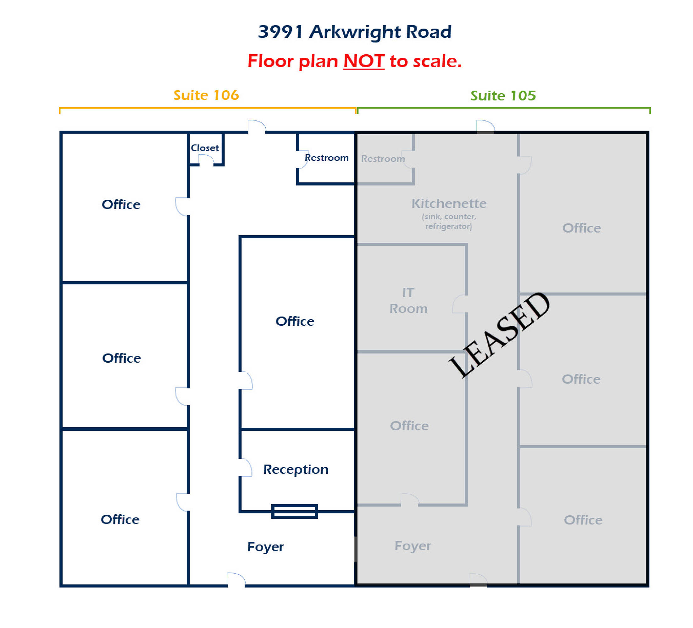 Office suites available for lease with convenient highway access.