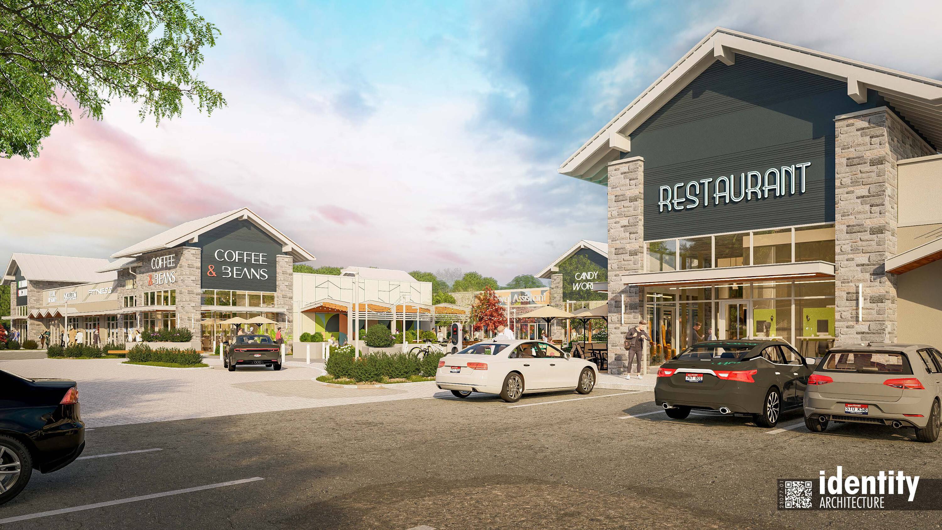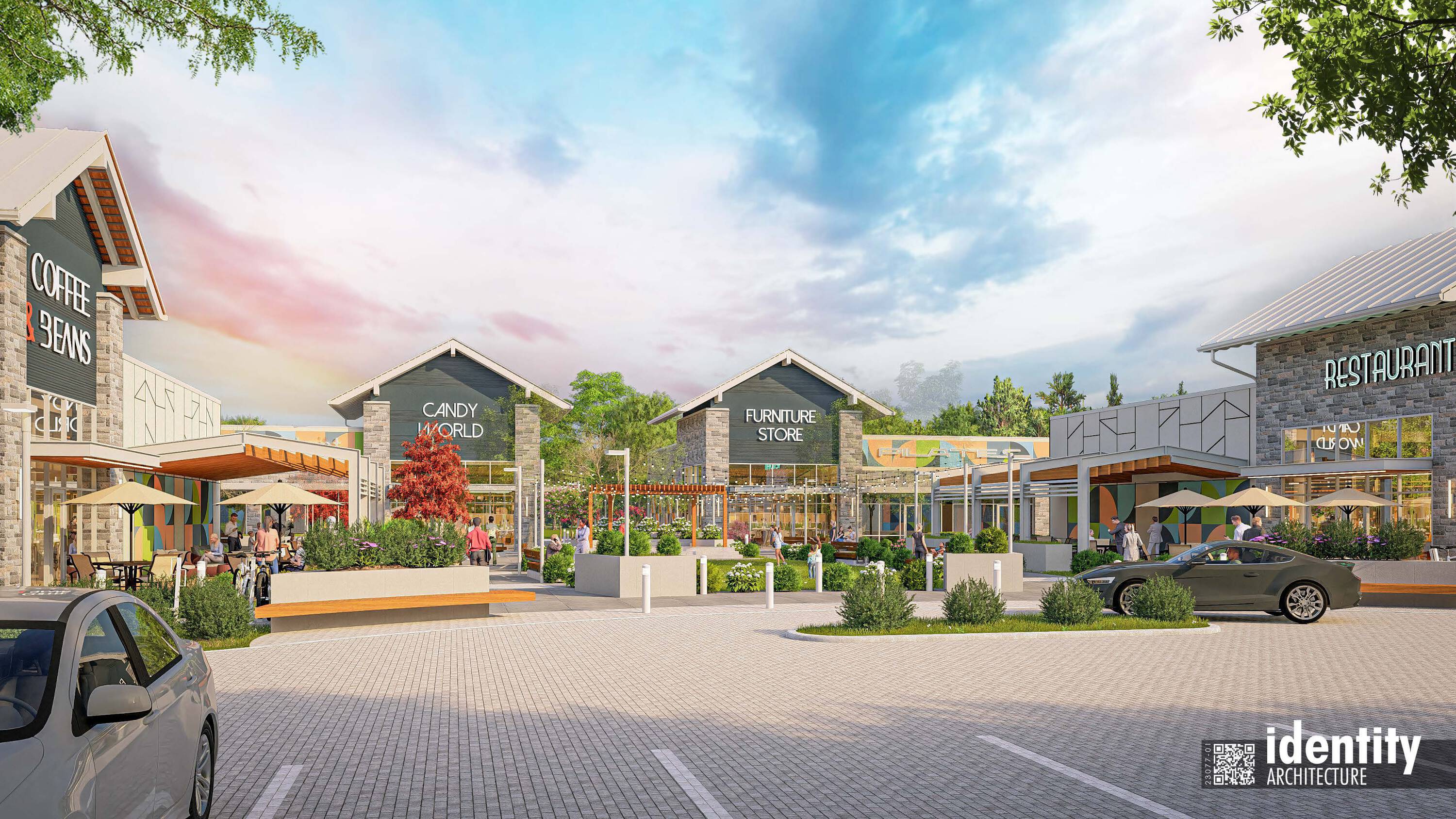 Retail spaces with high-end amenities in growing Fulshear, Texas.