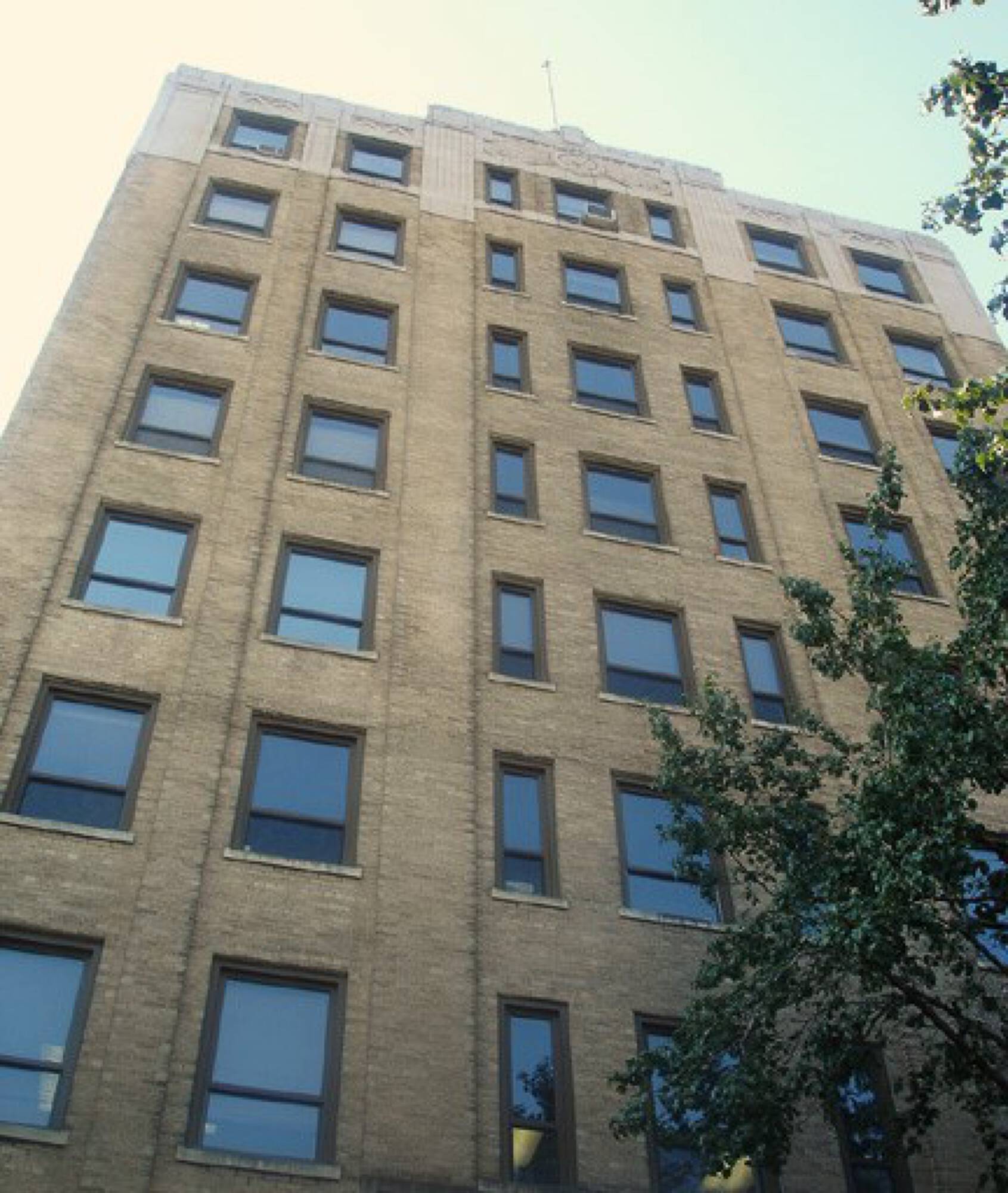 Nine-story office building with utilities included and adjacent parking.
