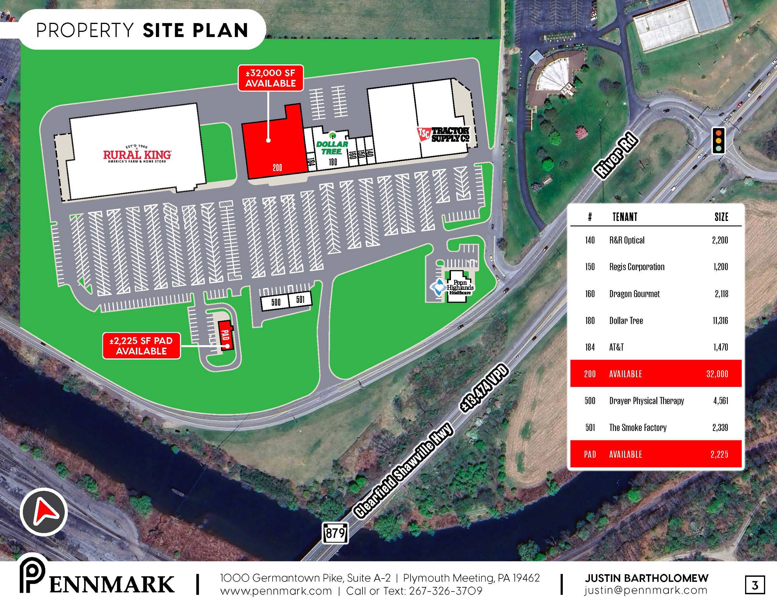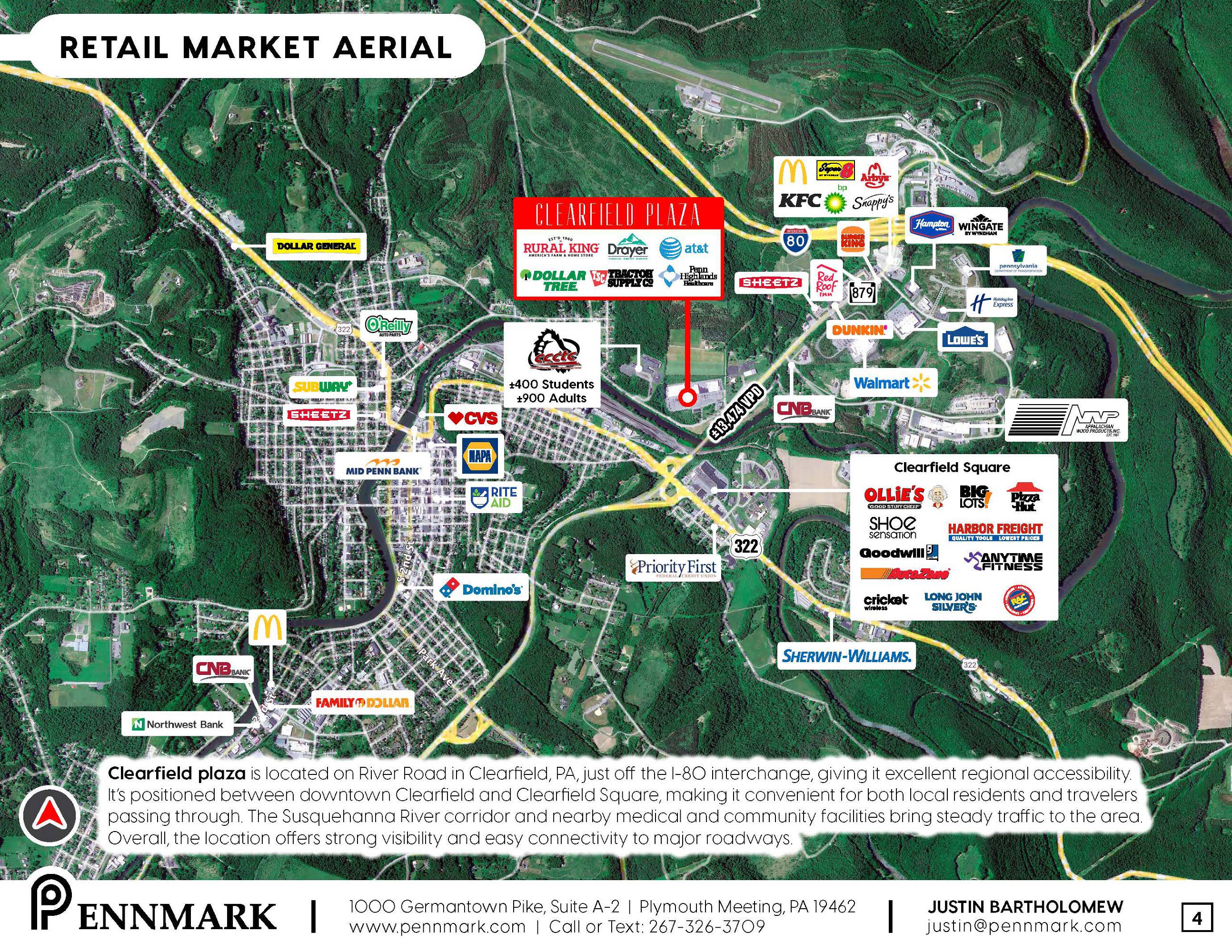This property features: Newly renovated community retail center with over 200,000 square feet of leasable space.; Strategically located on River Road between Clearfield Square and the I‑80 Interchange, offering high visibility and easy access from major highways.; Strong lineup of national and regional anchor tenants including Rural King, Dollar Tree, Big Lots, and Save‑A‑Lot.