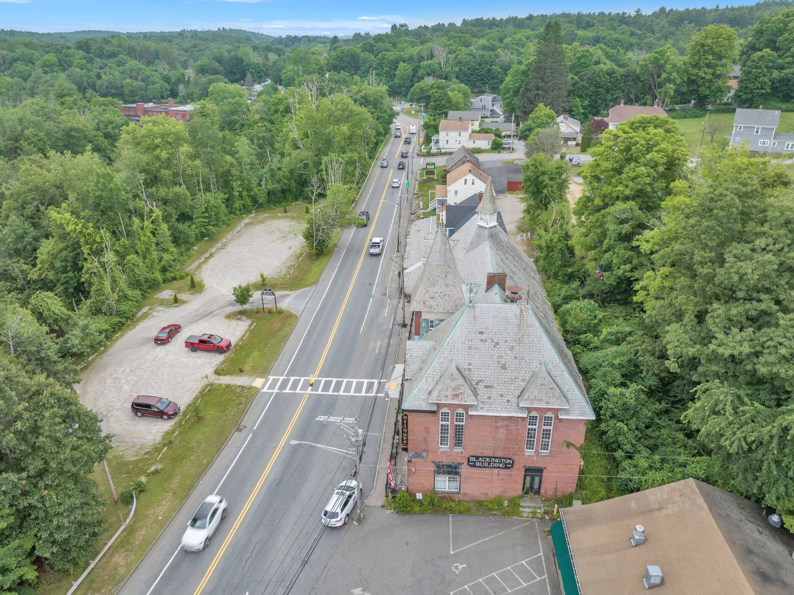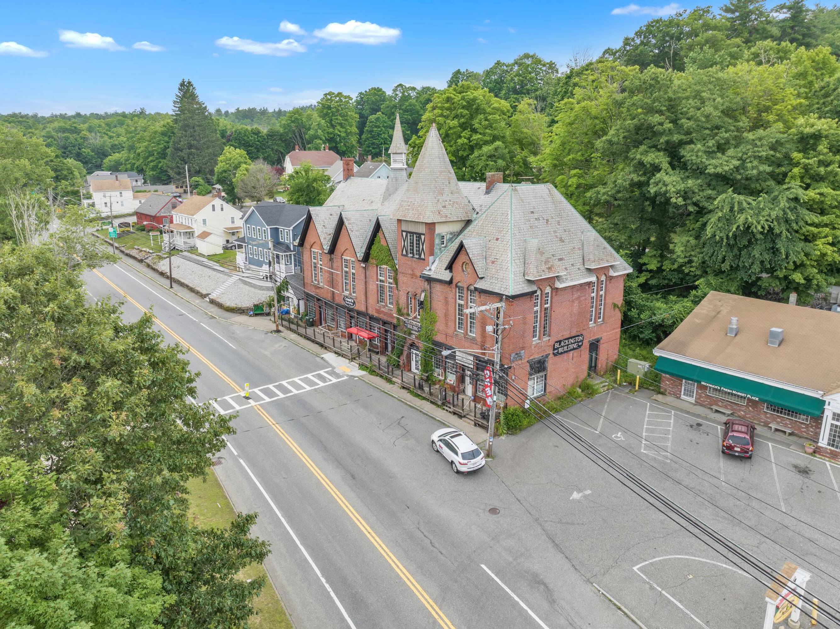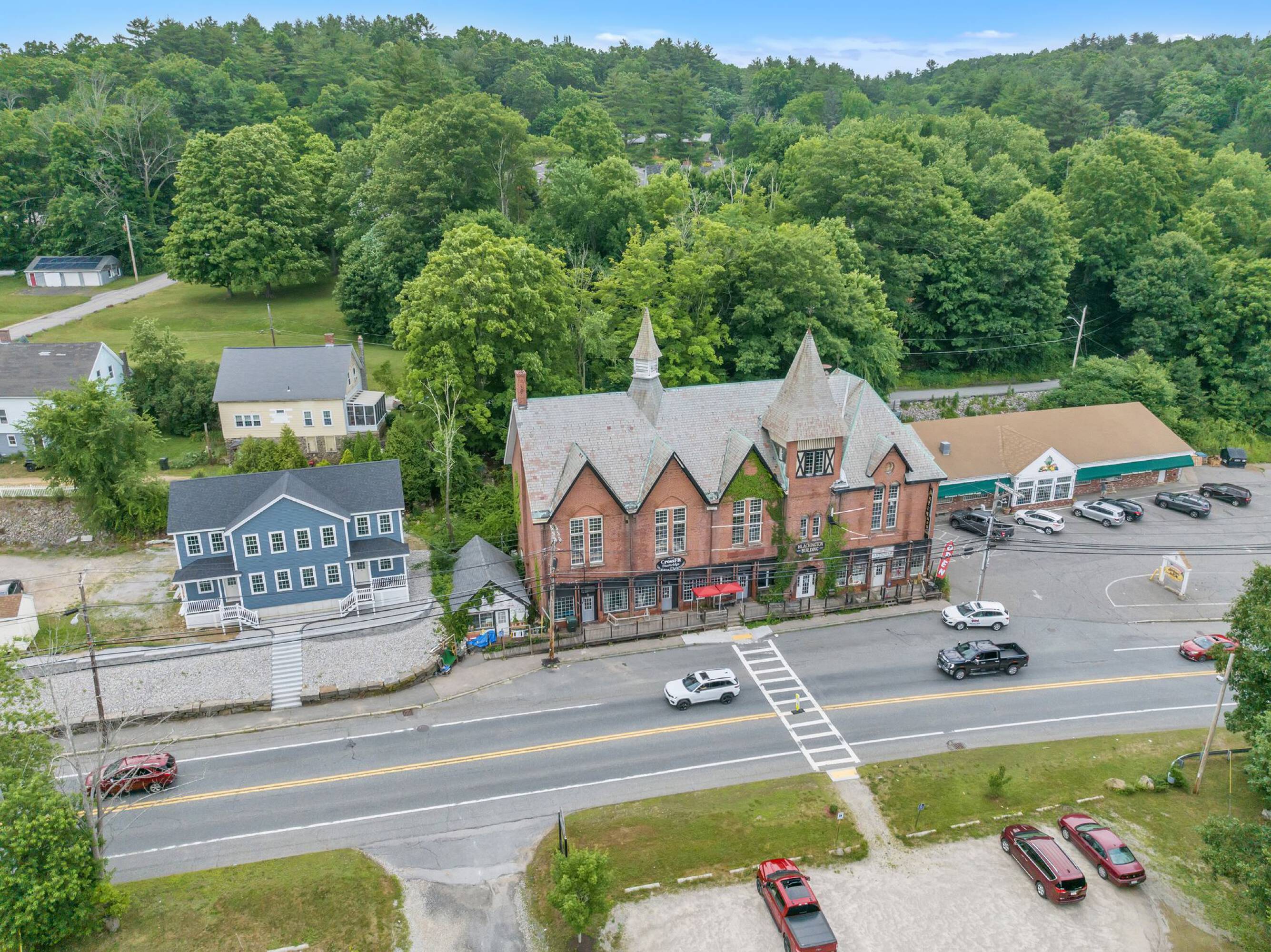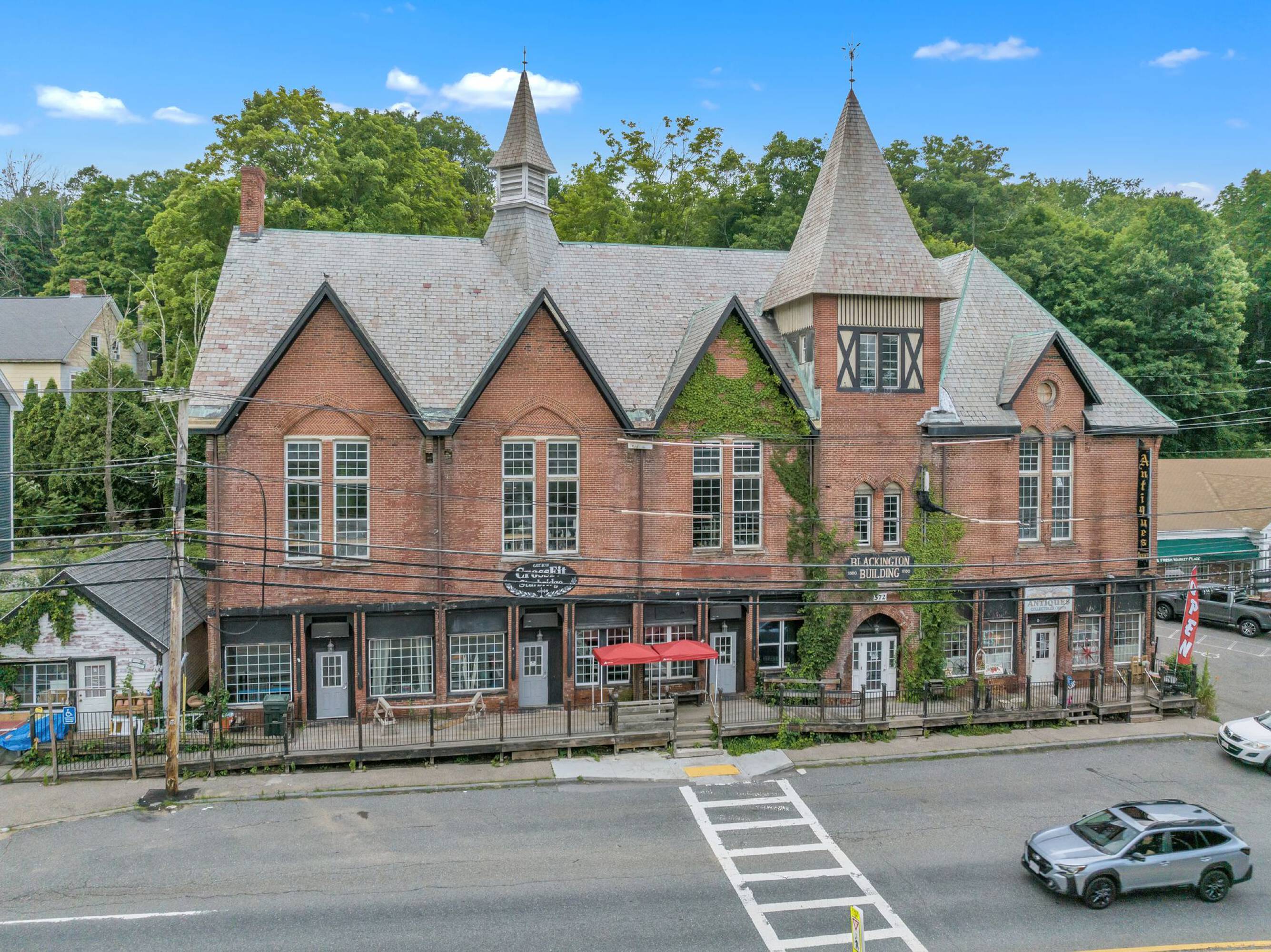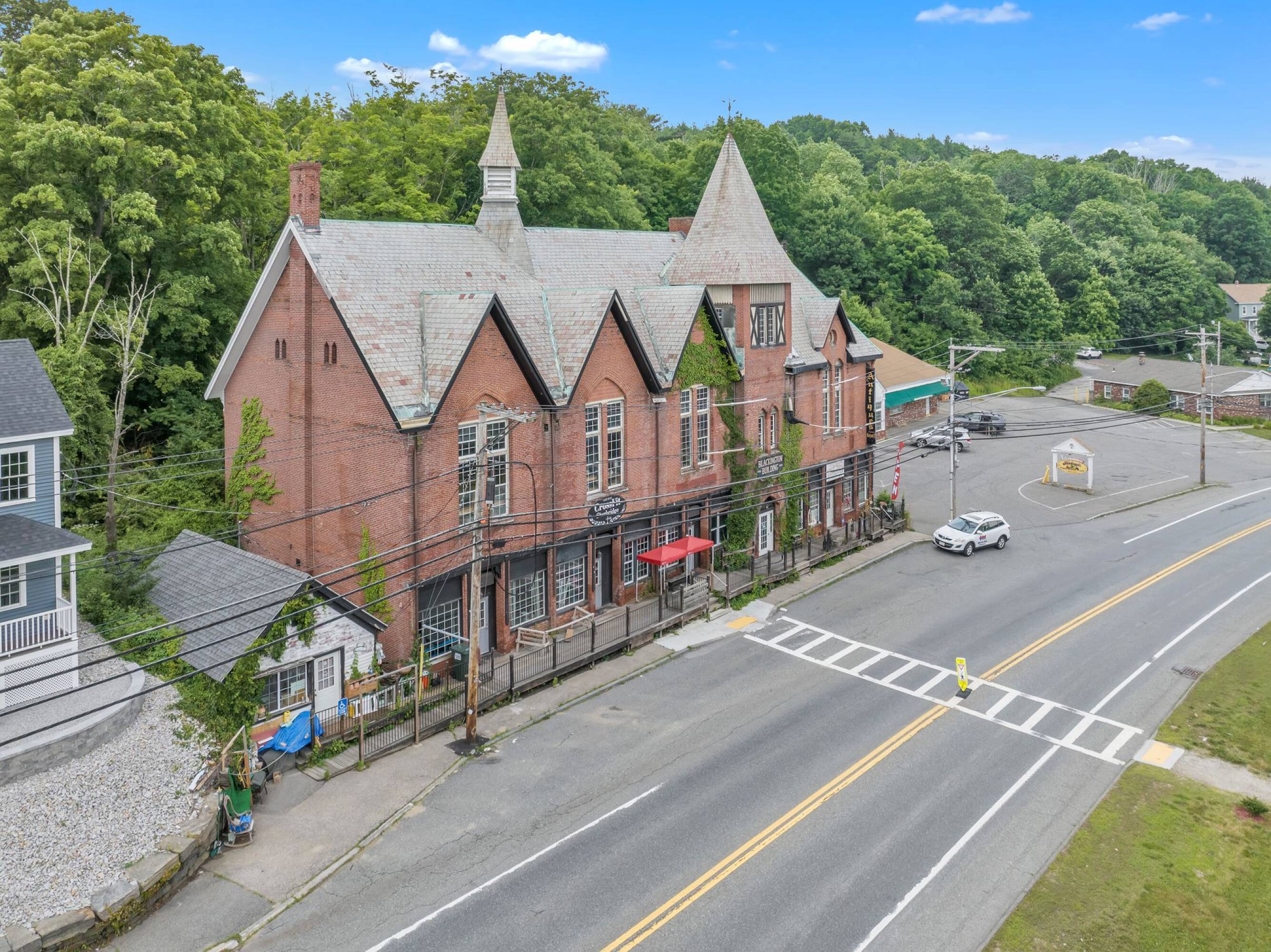 The offering includes the Blackington Building and the Blackington Block. The mixed-use property at 572 Main St encompasses 8618 square feet. Additionally, the sale includes a 2.5-acre land parcel at 595 Main St, currently utilized as a parking lot with approximately 50 spaces. The land site features over an acre of flat, cleared land suitable for retail, office, or multifamily development. Redevelopment possibilities exist for the existing 8618 square foot building, potentially transforming it into a mixed-use structure with retail on the first floor and multifamily units above. Prior approval has been secured from the town for the construction of 6 loft-style apartments on the building's second level. Currently, the building is occupied by two tenants: CrossFit Sturbridge and Past to Present Antiques.