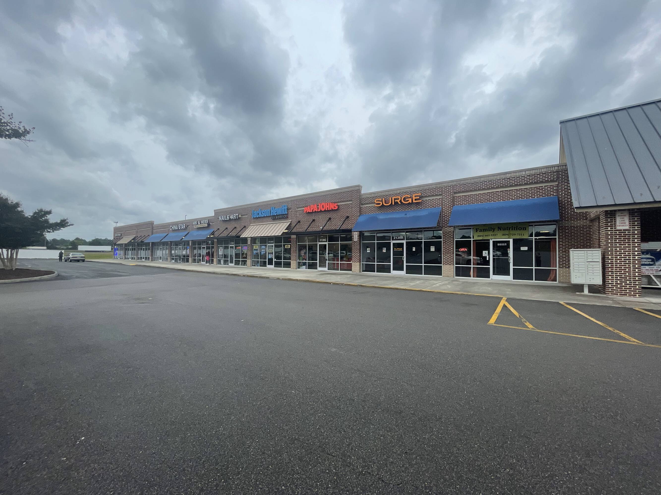 Retail space available in well-located Petersburg shopping center.