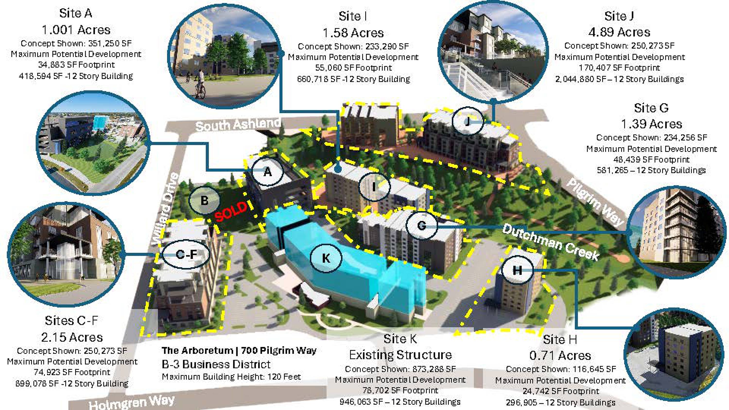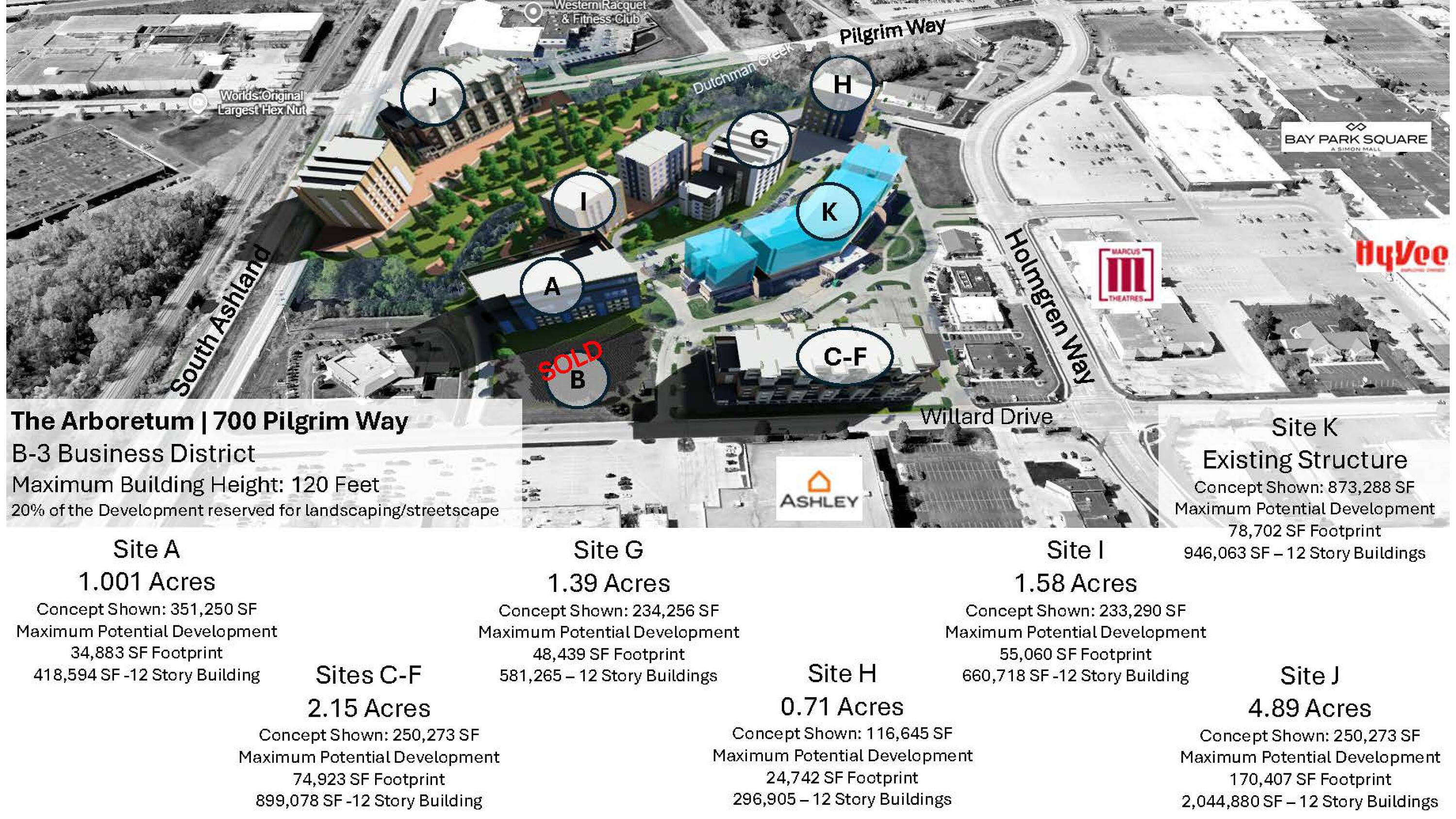 Available outlots in a major shopping district.