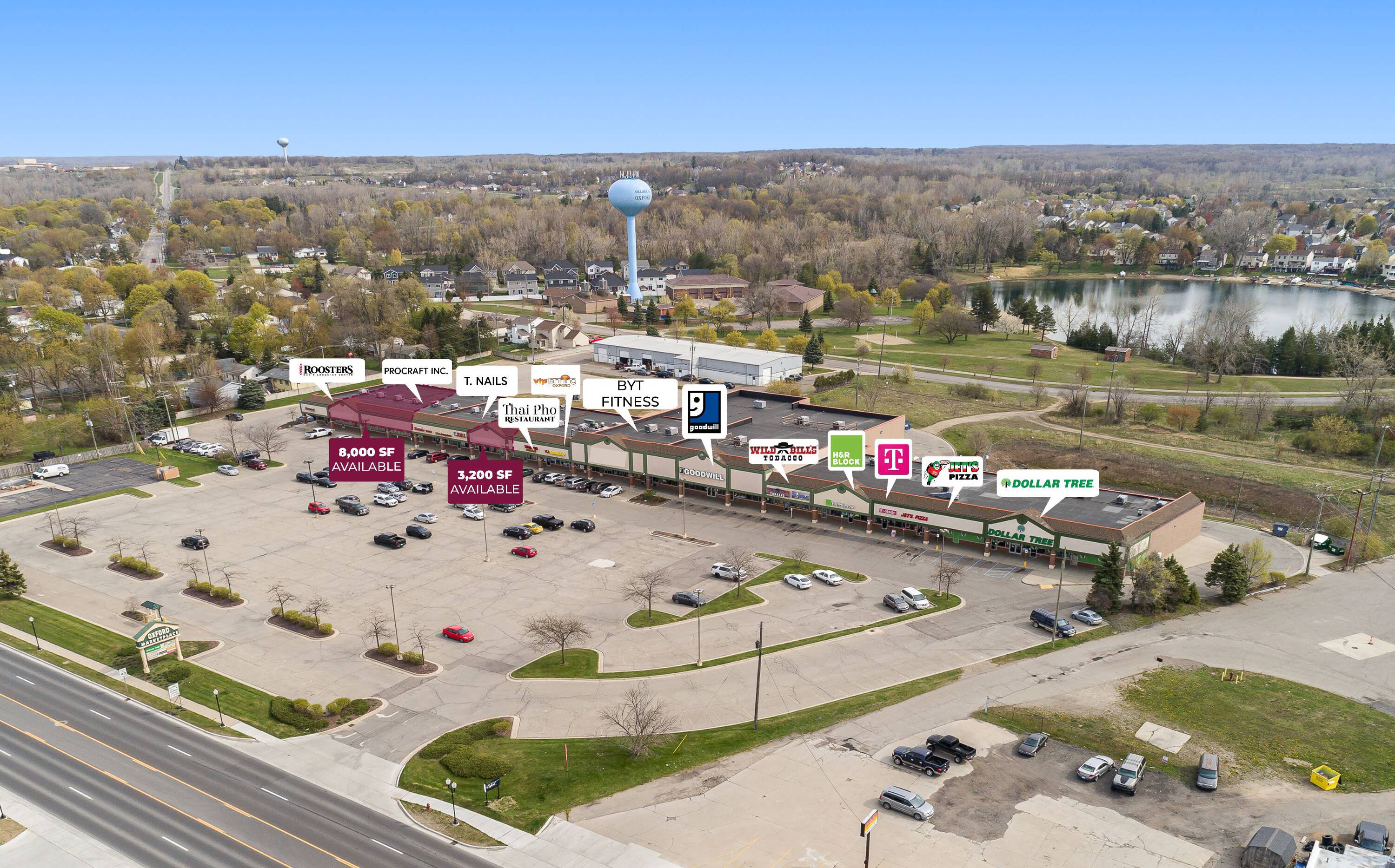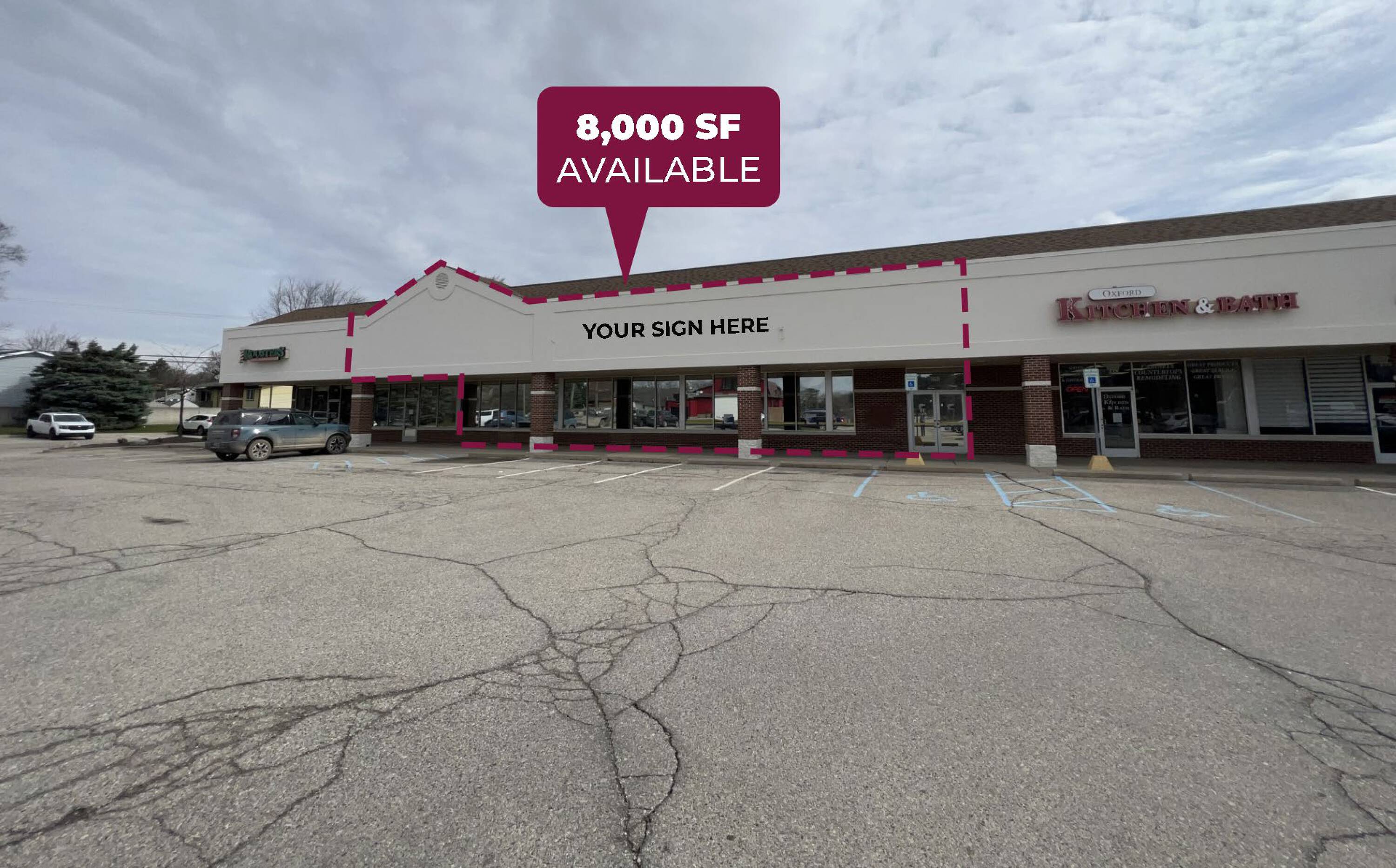Retail space available for lease in Oxford, Michigan.