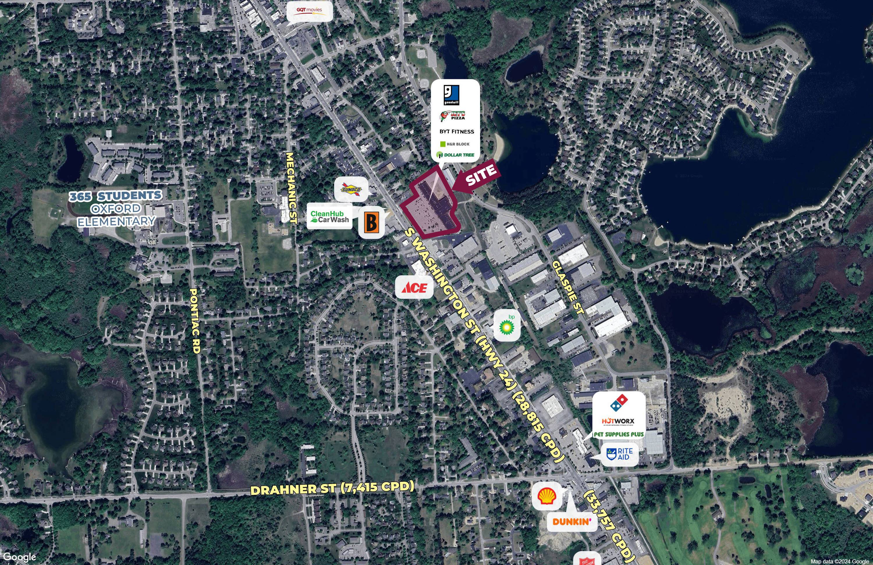 The property is located at 158-182 S Washington St Oxford, MI.