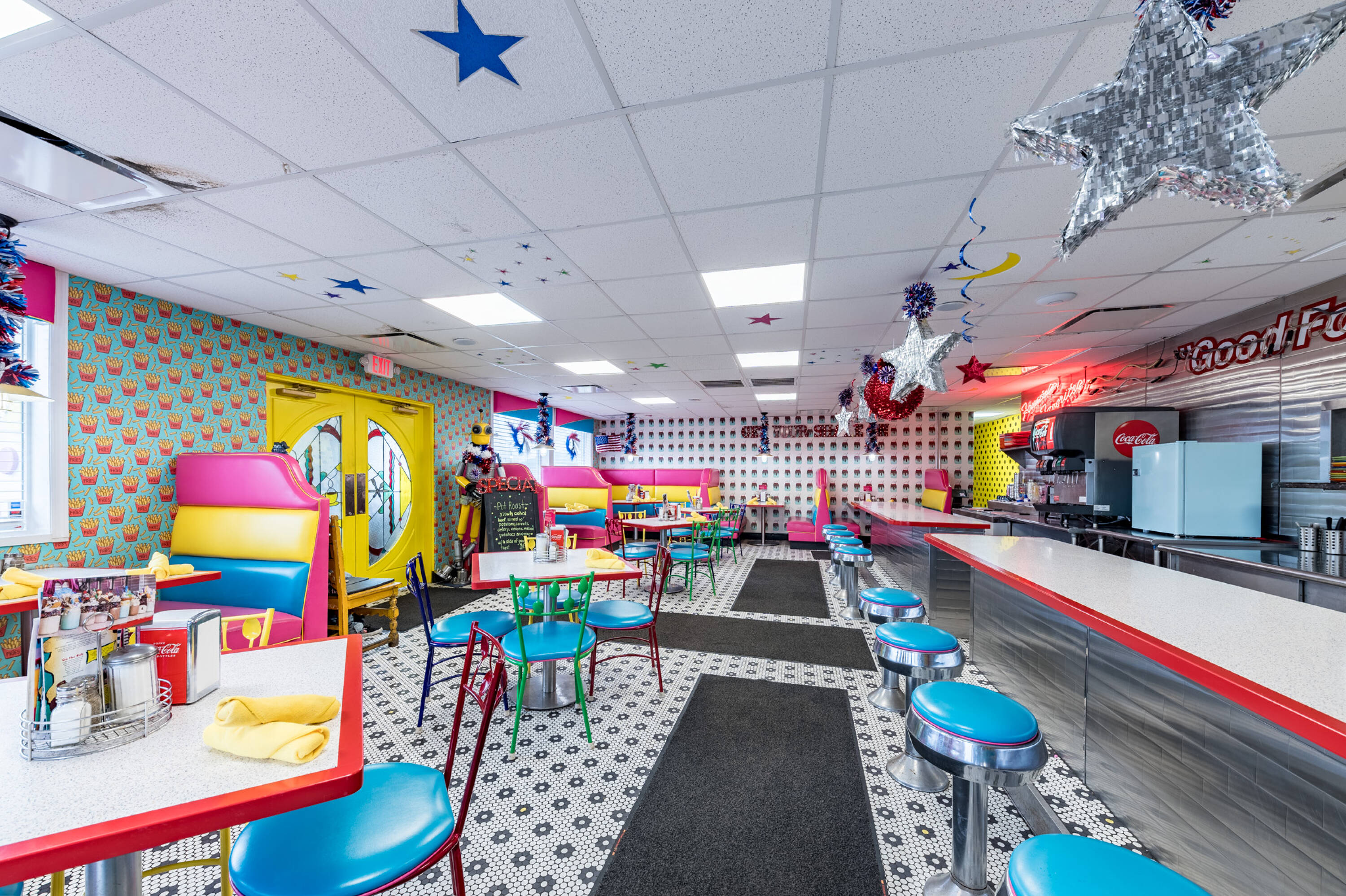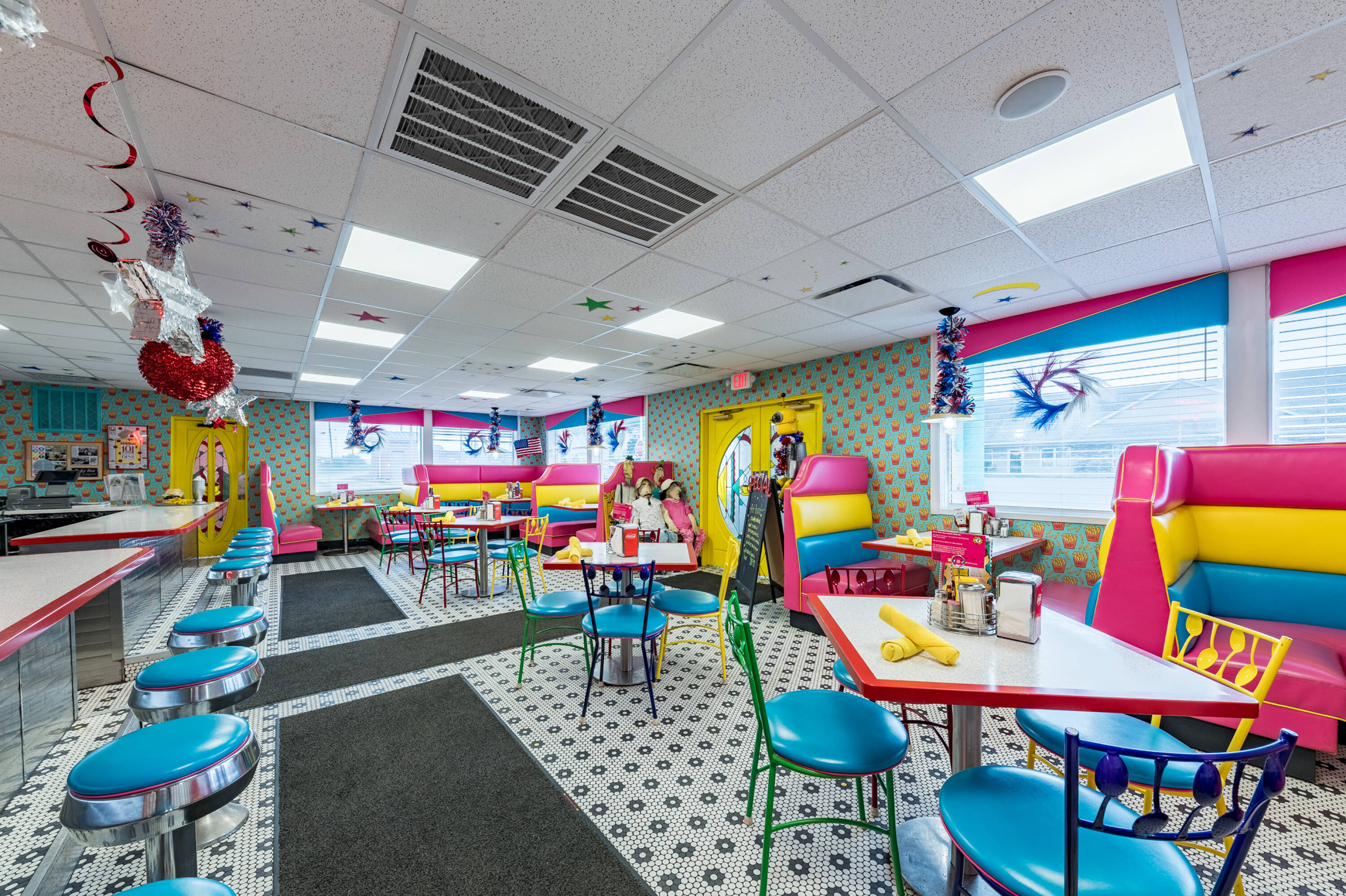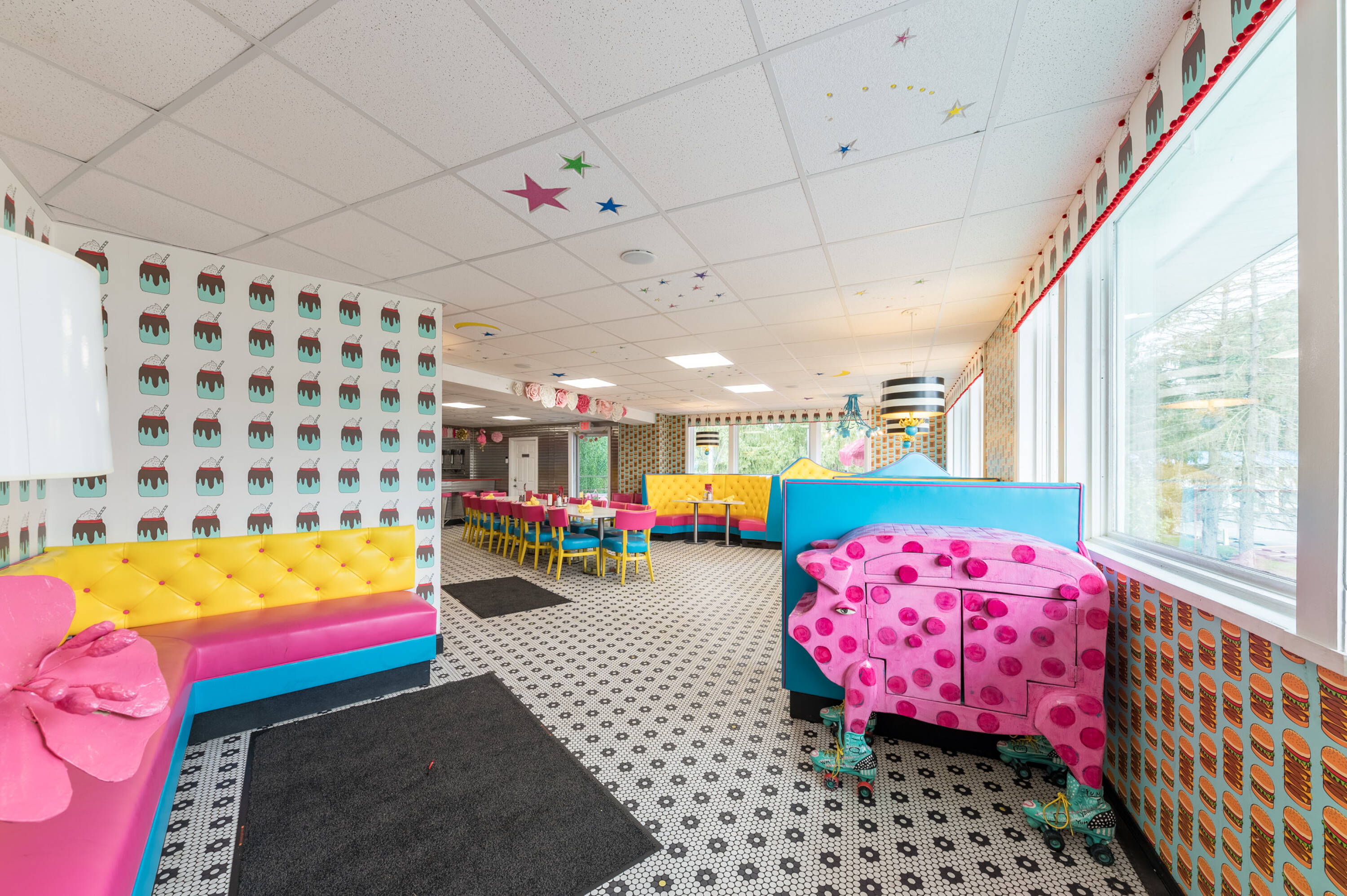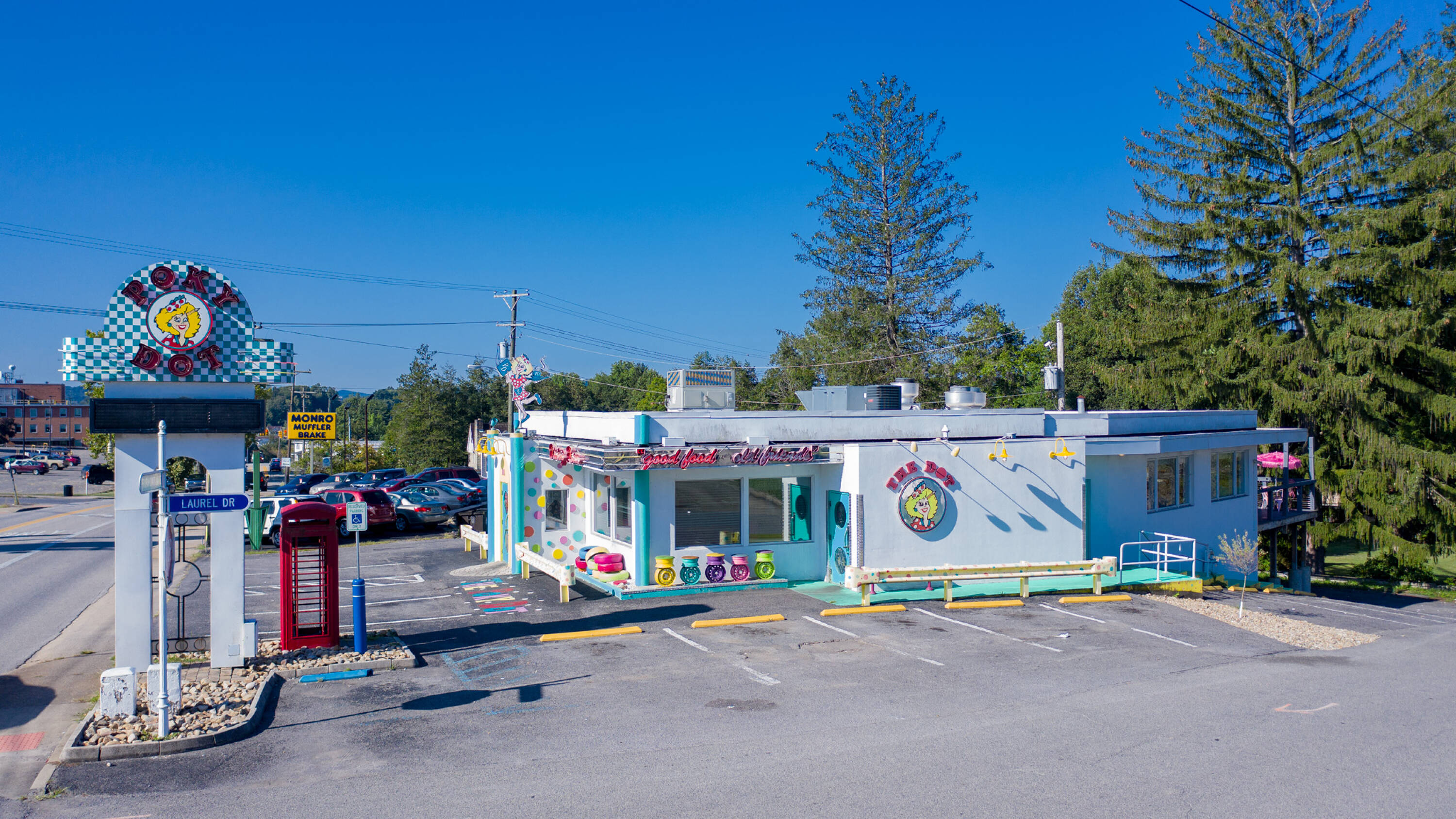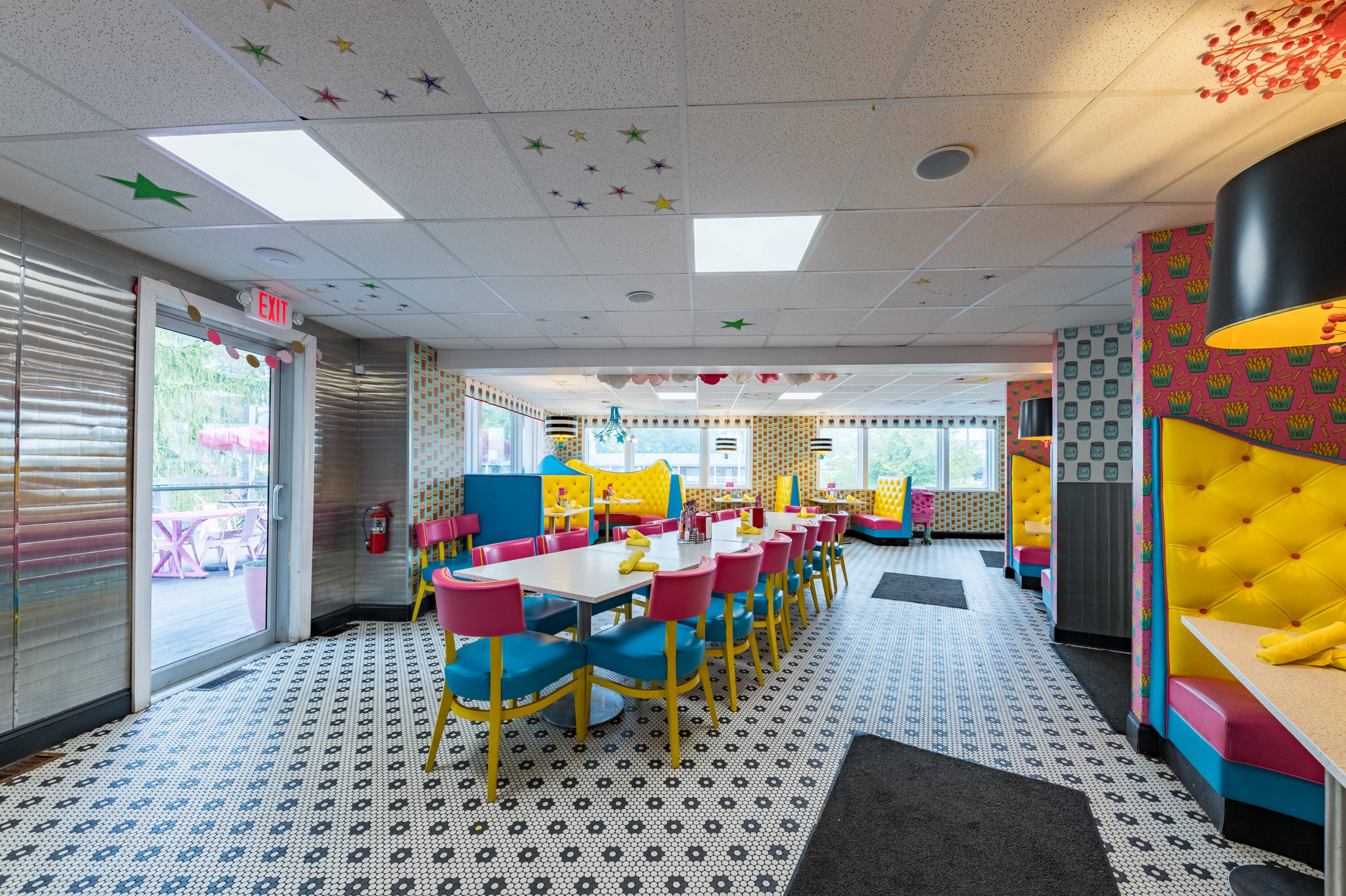 Restaurant space with high visibility and outdoor seating area.