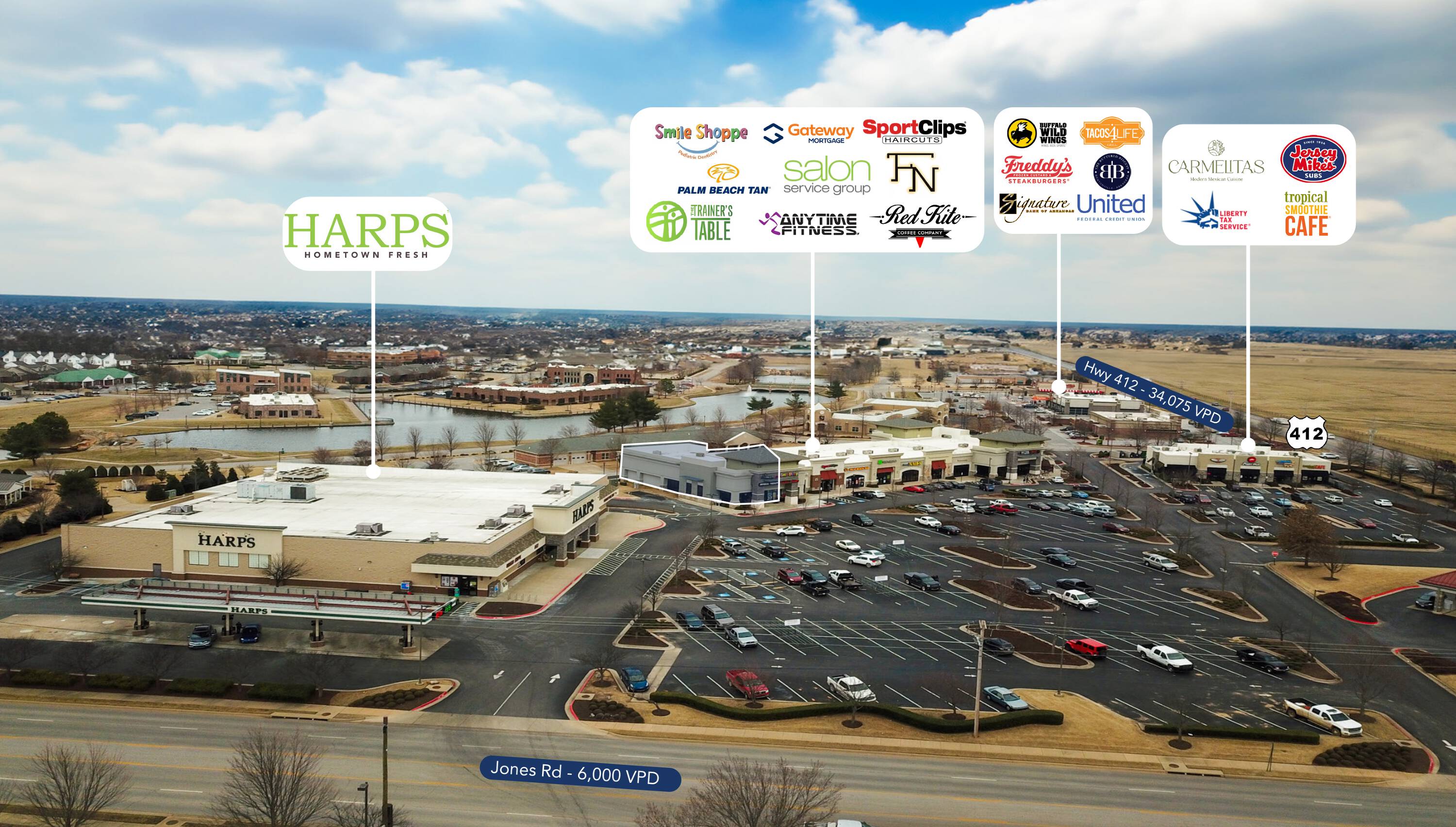 This property features: 2,668 SF Retail Space Available; Located at The Shoppes at Har‑Ber Lakes; Address: 7058 W. Sunset, Springdale, Arkansas