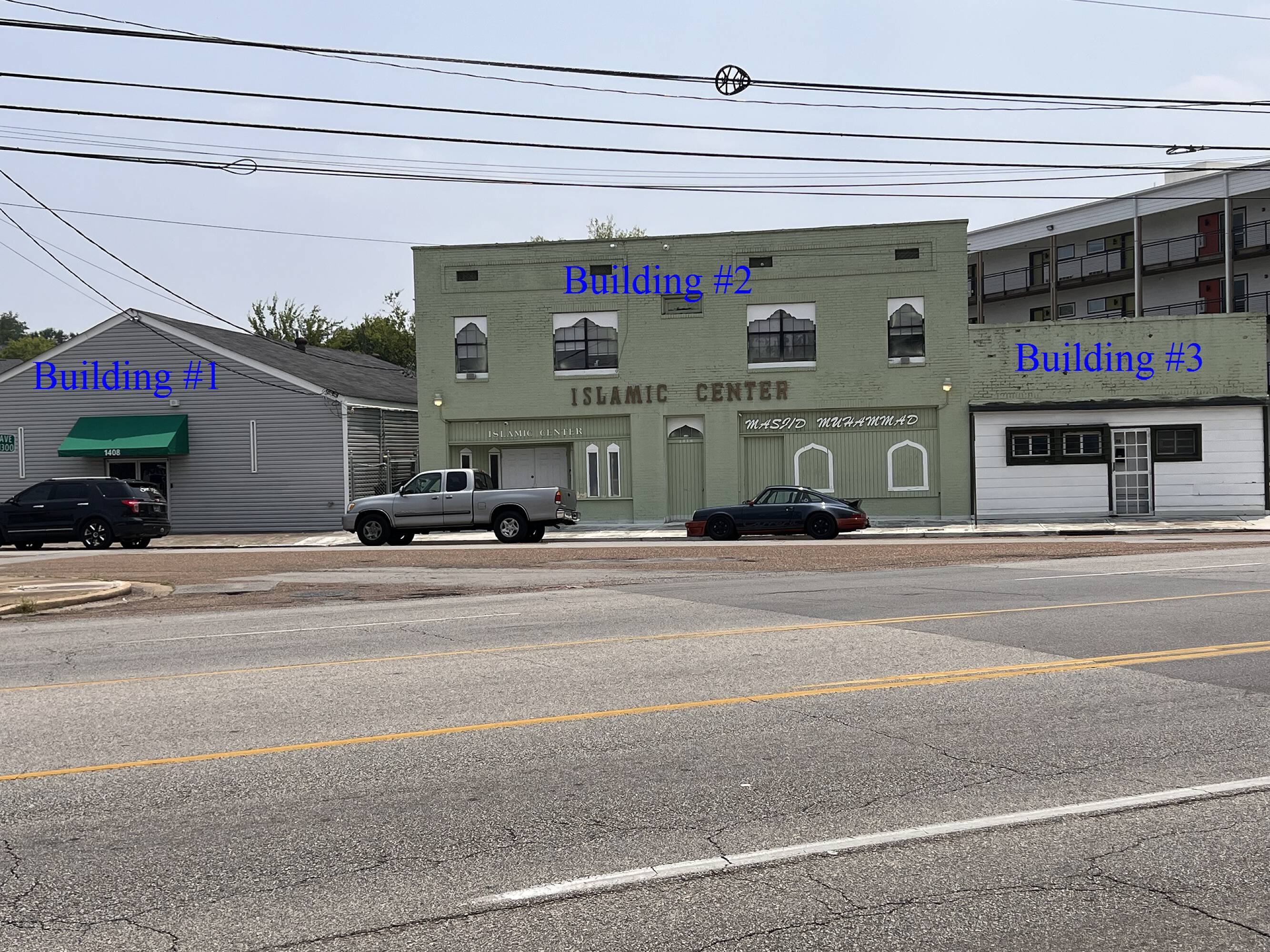 Three buildings for sale, prime corner location, development potential.