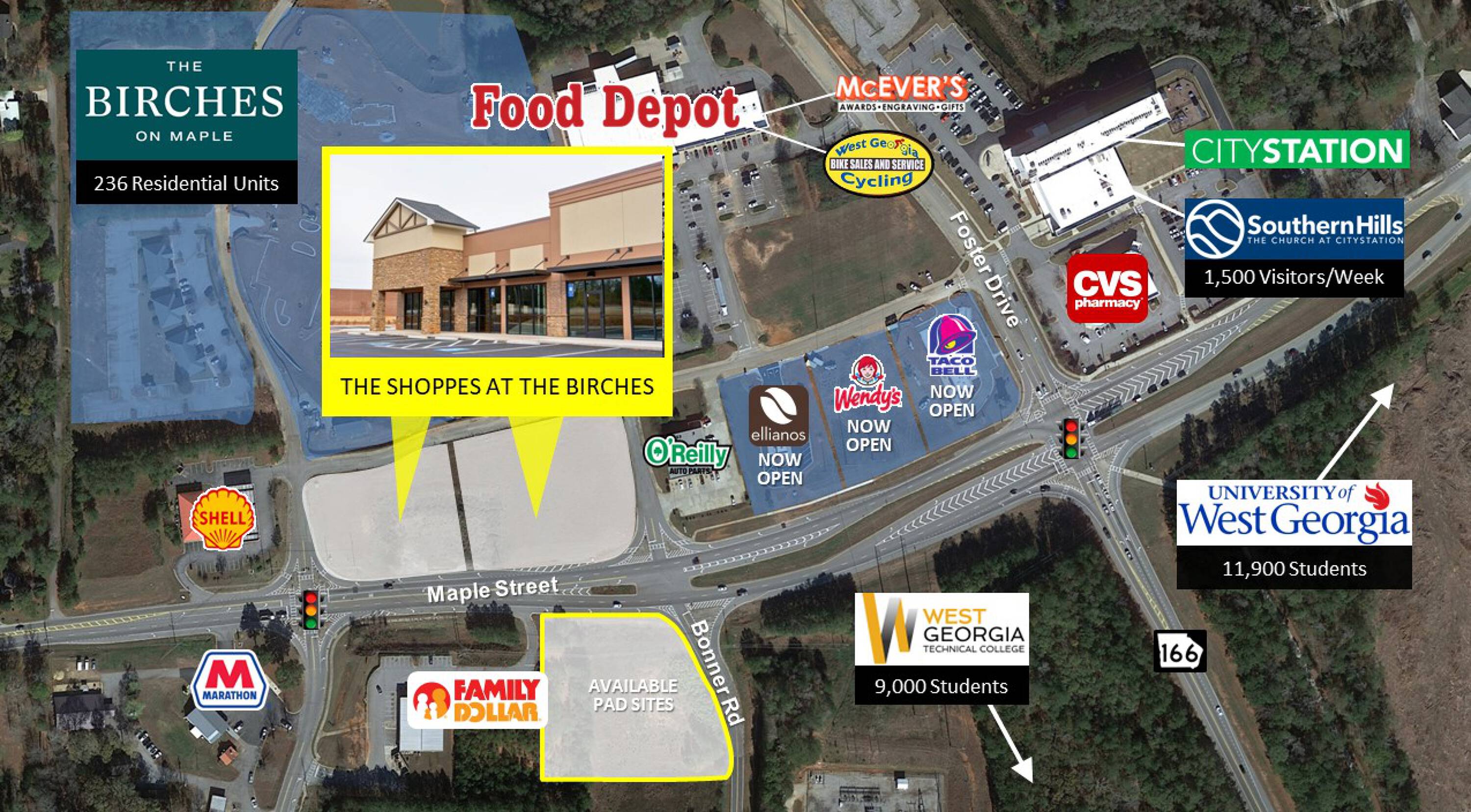 New retail development near University of West Georgia and West Georgia Tech.