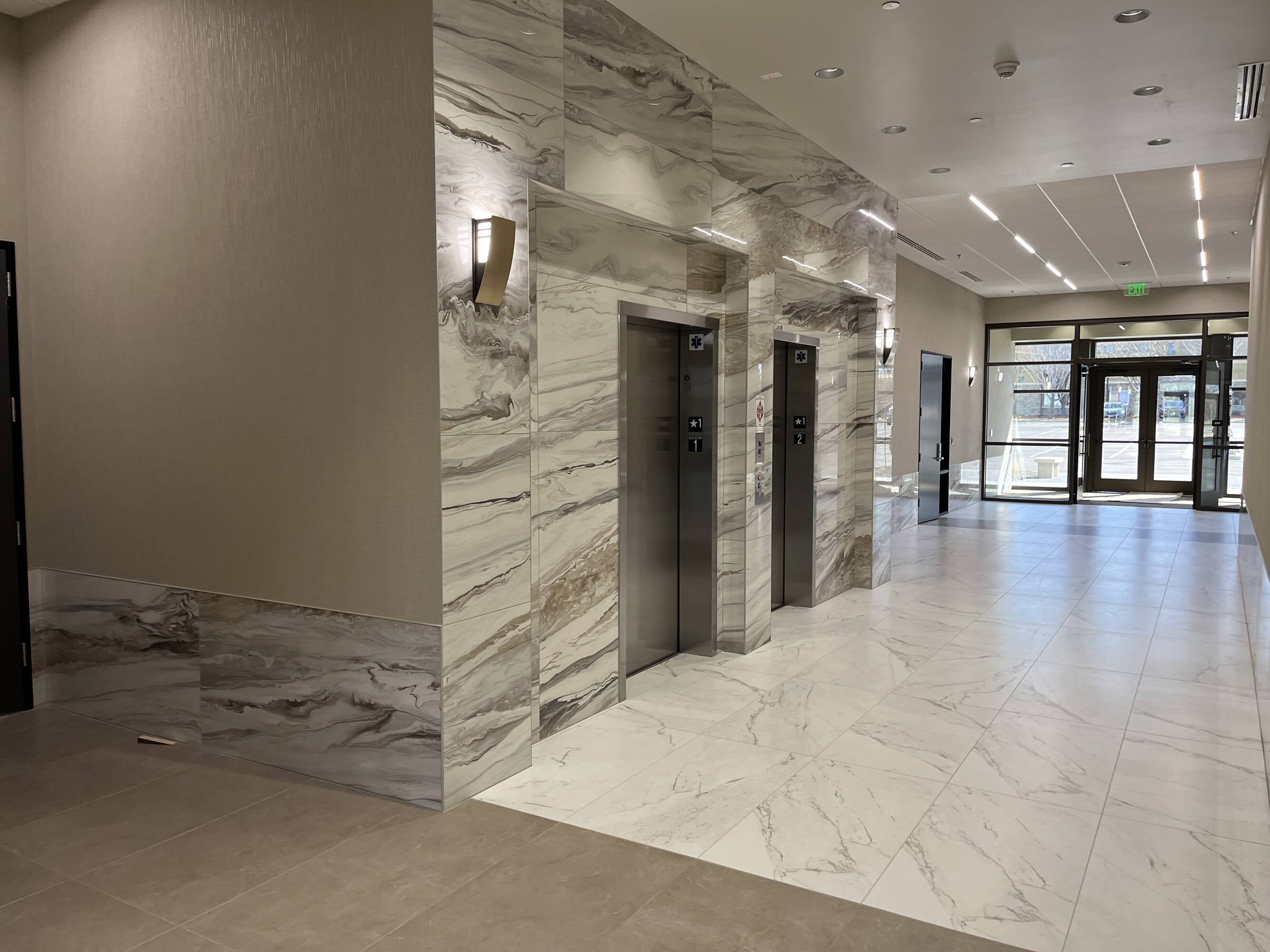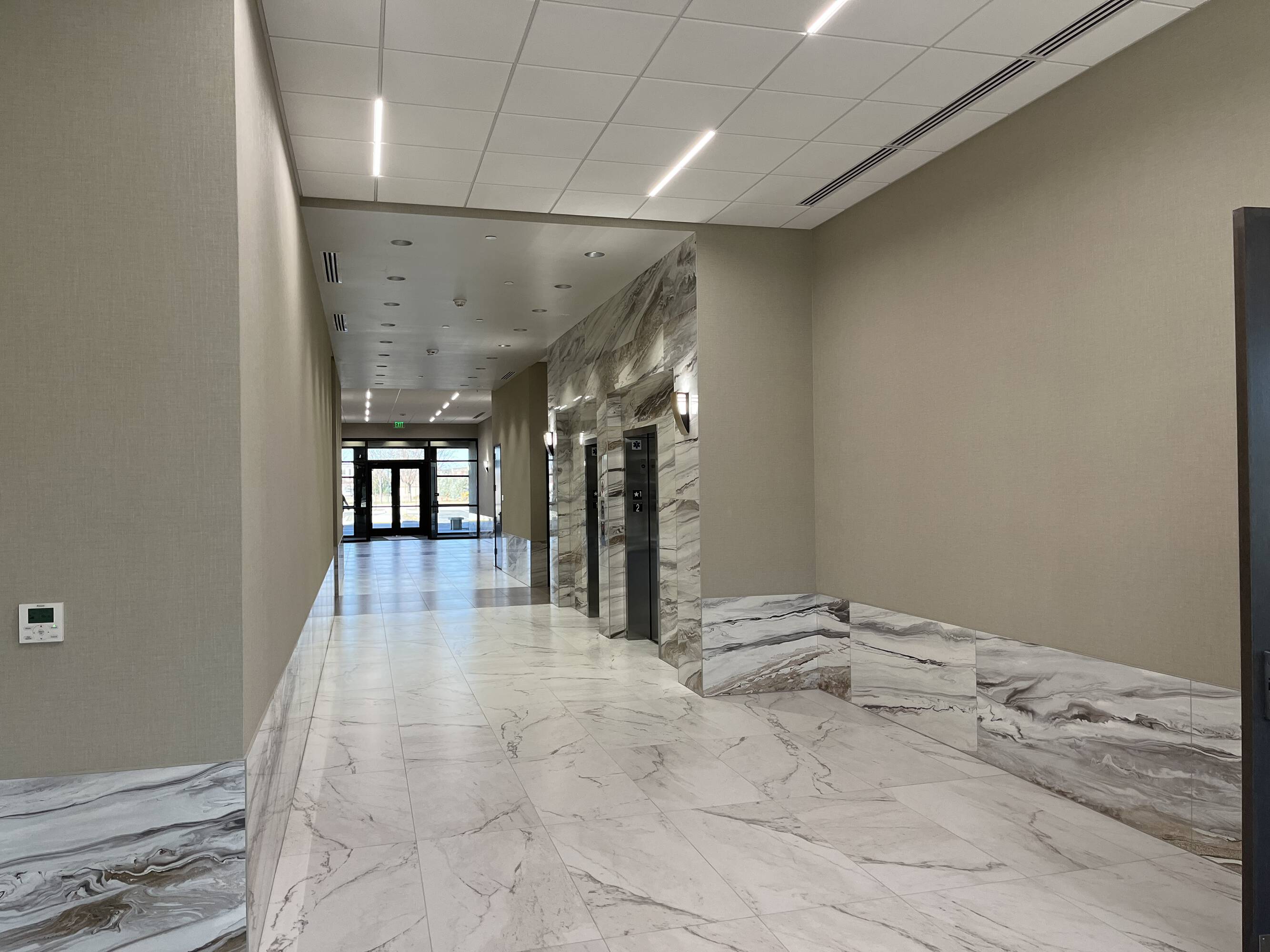New office project with high-end finishes and building signage.