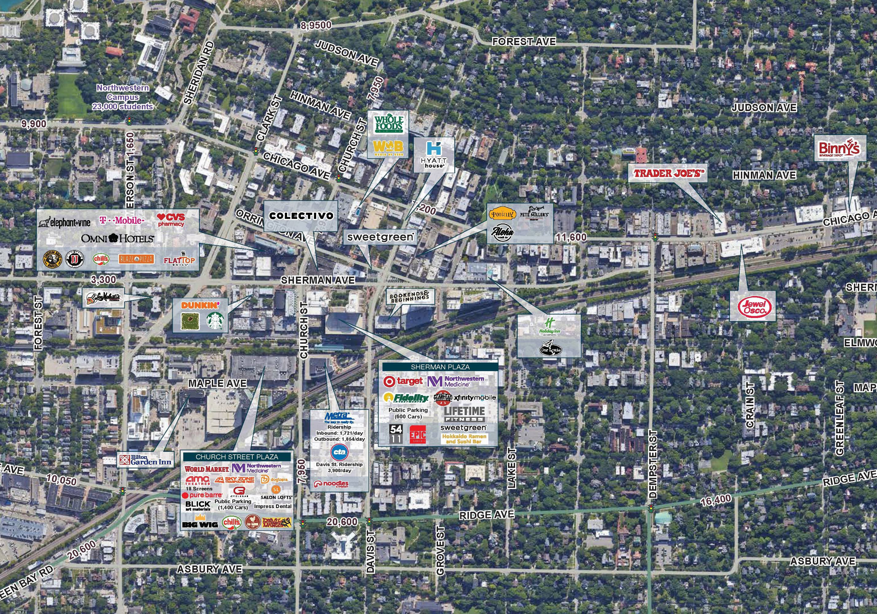 This property features: Located at Evanston's most desirable retail intersection; Adjacent to the CTA Purple Line with over 1.2 million passengers per year; 4 blocks away from Northwestern University