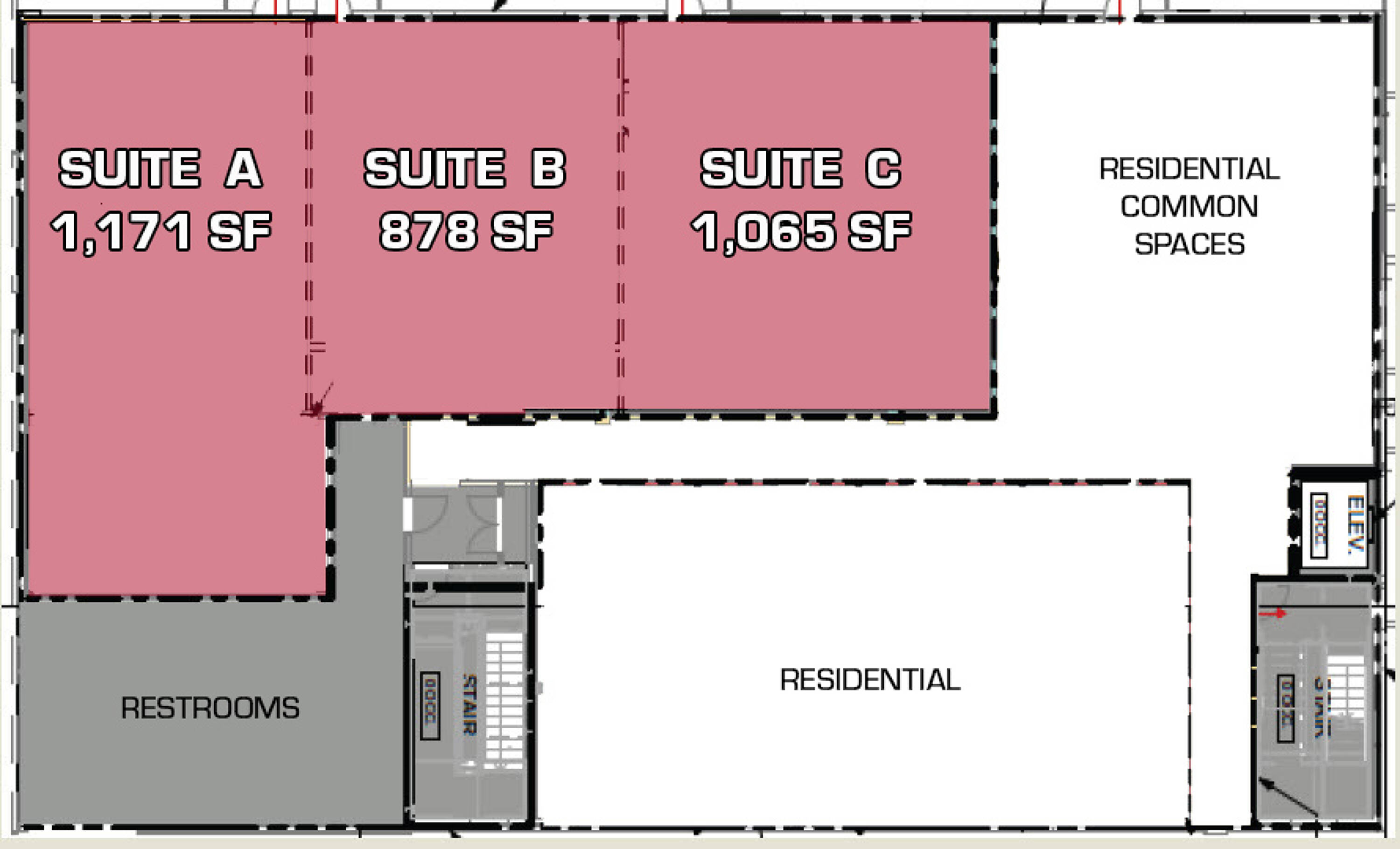 Street level retail or office space. Can be combined with Suites A & C to total...