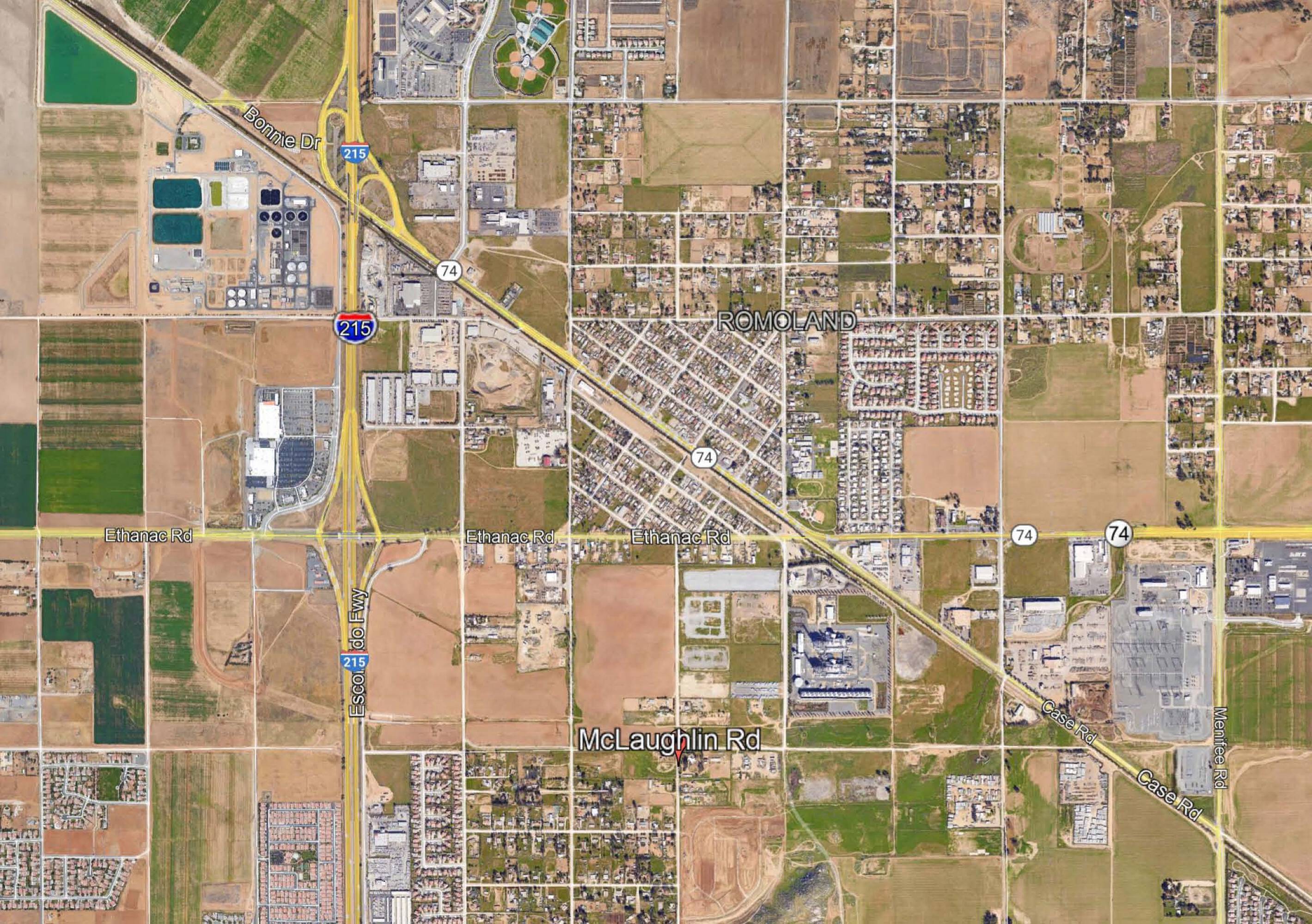 This land parcel offers a great location with direct access to the I-215 freeway via Route 74. It is situated near a new development in Menifee, California.