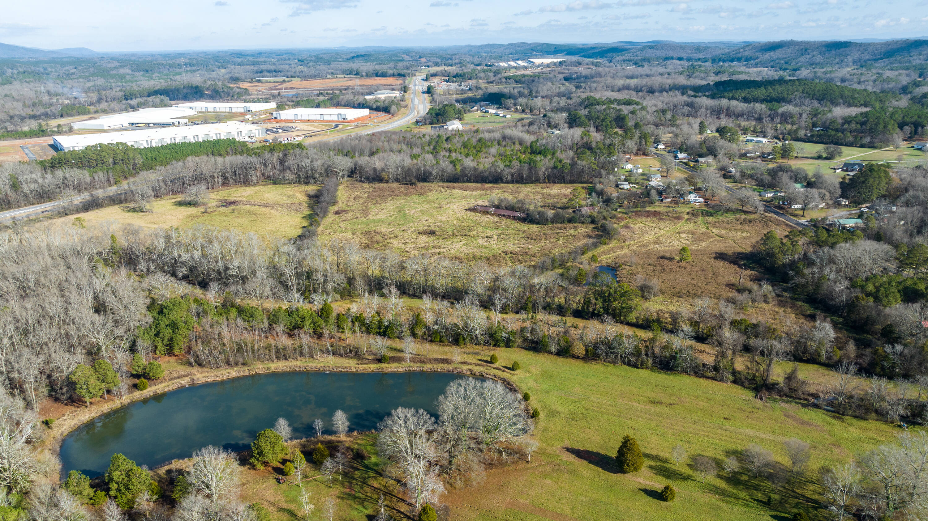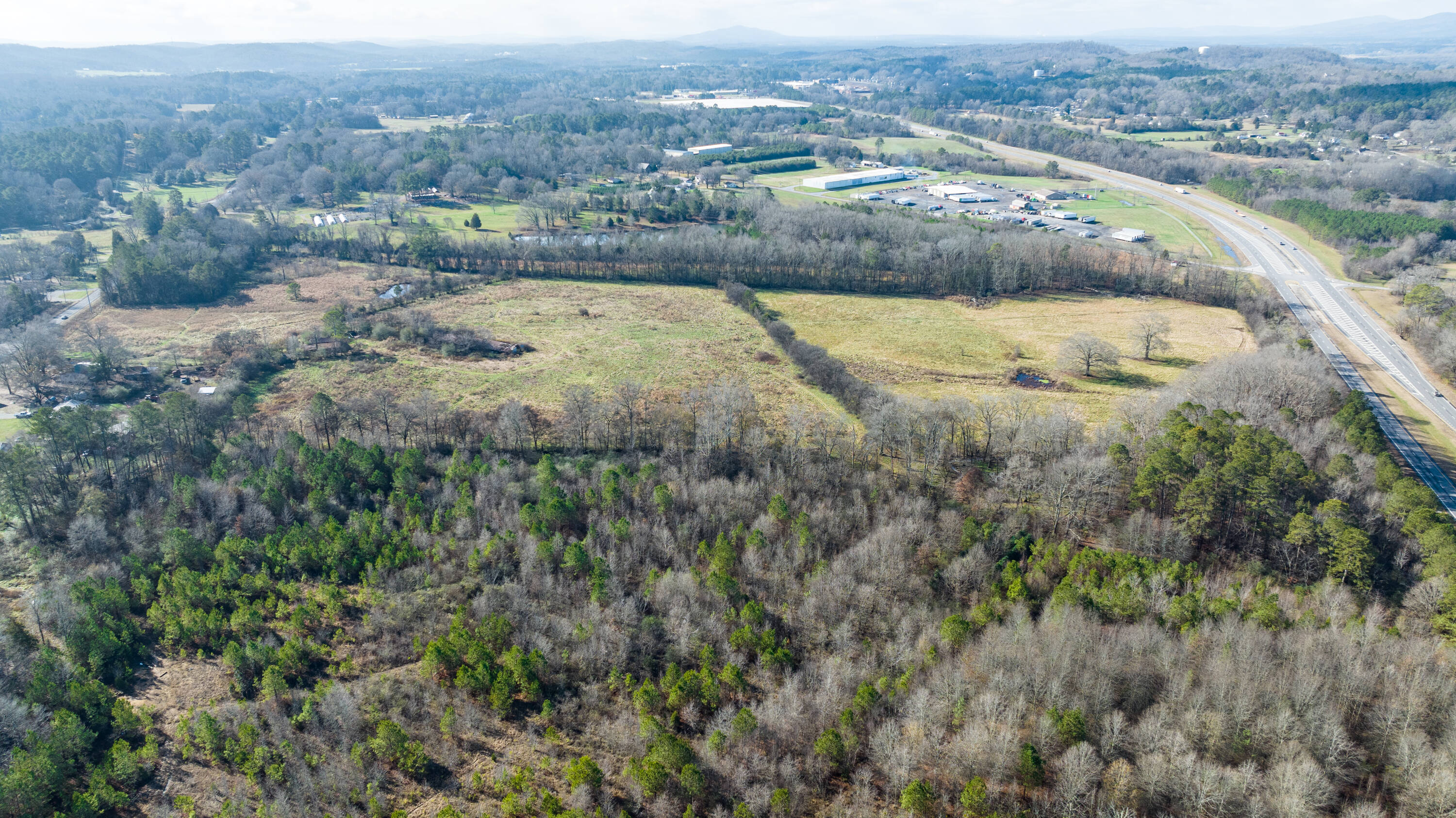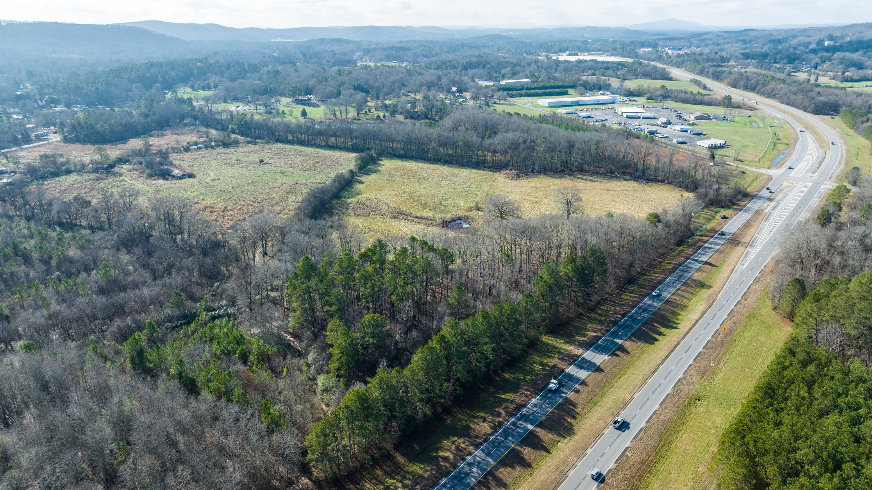 This 41-acre site is zoned for heavy industrial use and features double road frontage, with approximately 1000 feet on Calhoun Highway (53) and 350 feet on Calhoun Road. The property is mostly flat and ready for construction, making it suitable for a warehouse or large industrial building. Its location on Highway 53 offers convenient access, with a 15-minute drive to both Calhoun, GA, and Rome, GA, and a 10-minute drive to I-75.
