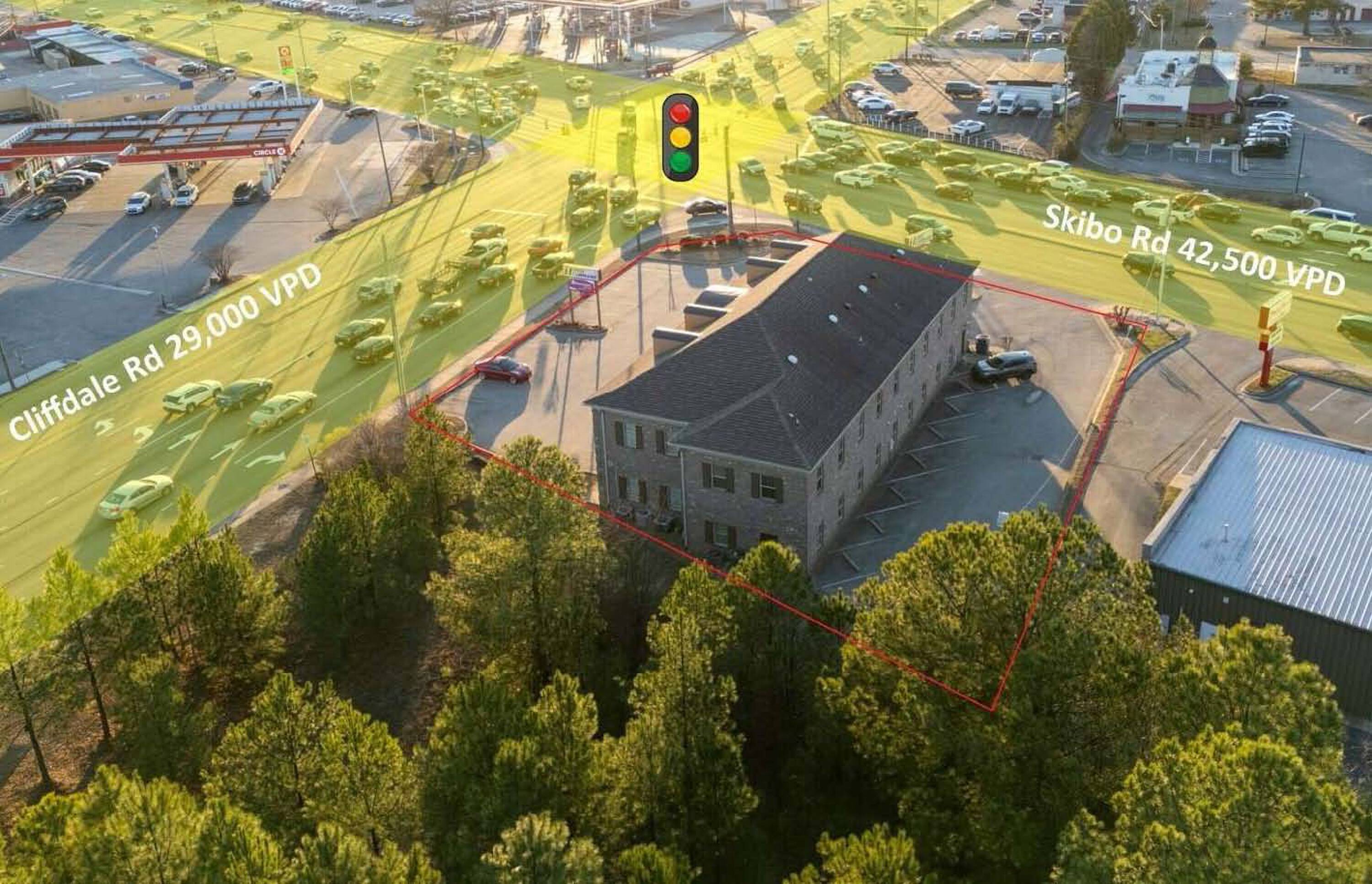 This property features: Located in a high‑traffic commercial corridor at the signalized intersection of Skibo Road and Cliffdale Road, with a combined daily traffic count exceeding 71,500 vehicles.; **9,800+ square foot, two‑story office building on 0.55 acres** in Fayetteville's dominant retail corridor.; First floor is leased through 02/2026 at $99,614 annually (+NNN), providing in‑place income.